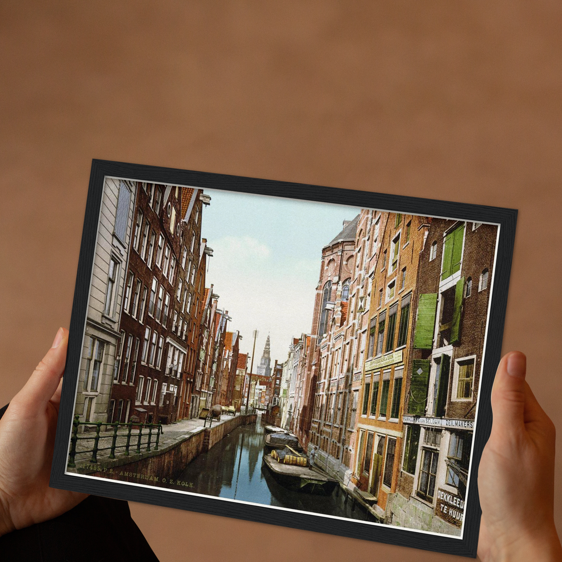 Tauche ein in das historische Ambiente von Amsterdam um 1895 mit dieser kunstvollen Ansicht, die Geschichte und Kunst in Dein Zuhause bringt.