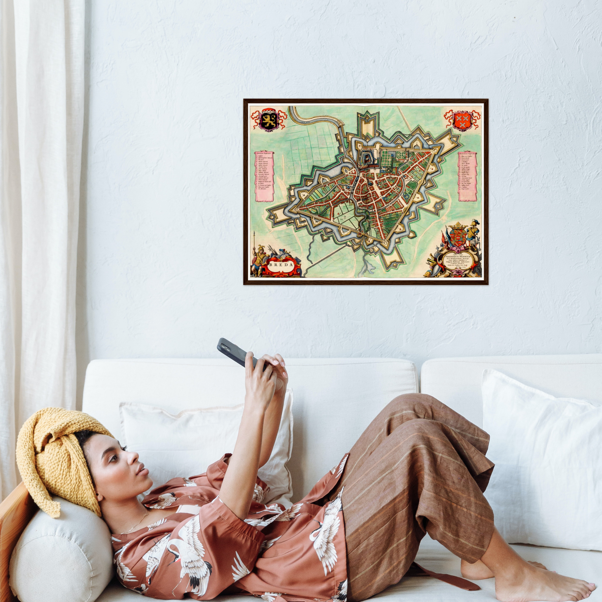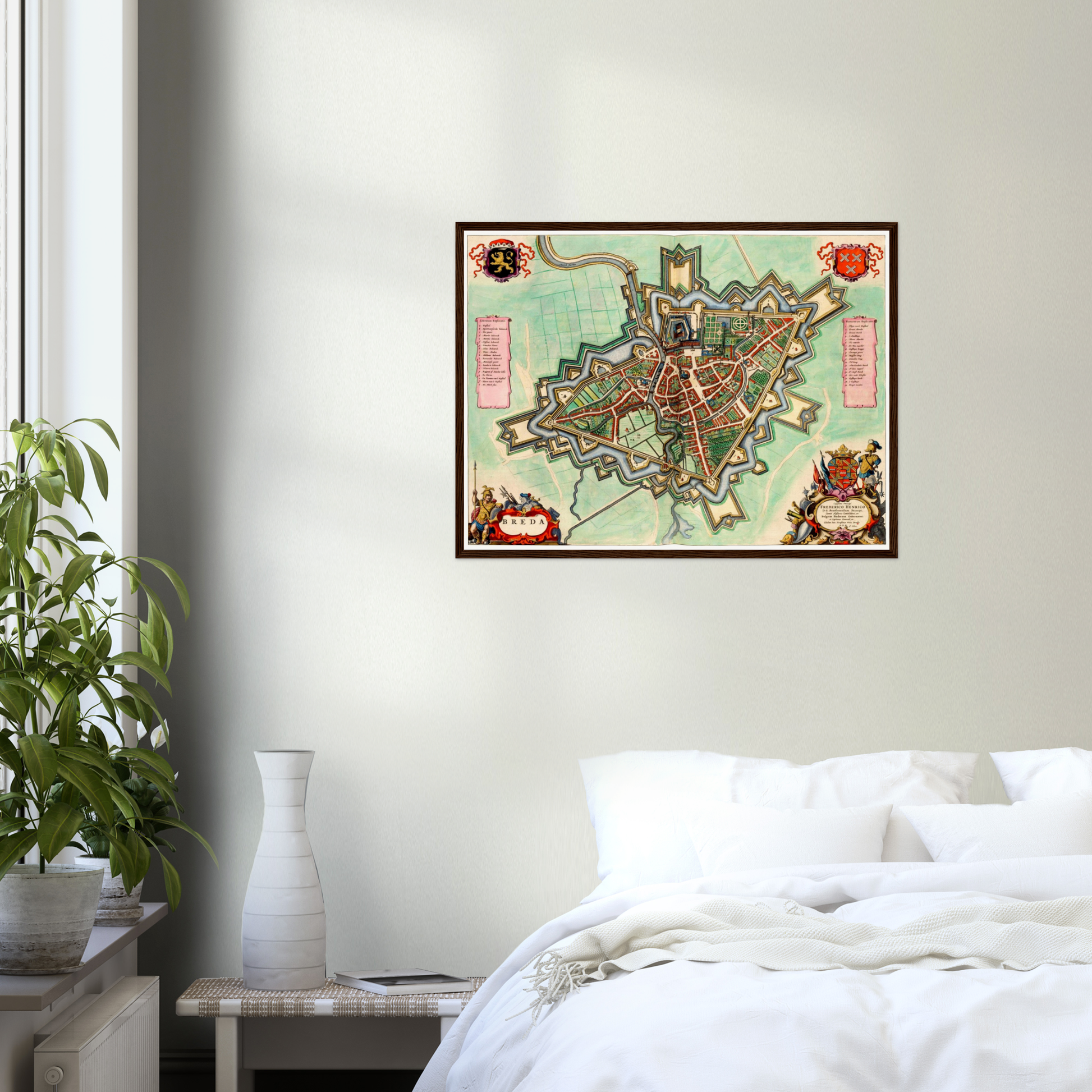 Für Menschen mit einer Verbindung zu Breda oder einer Leidenschaft für niederländische Geschichte bietet diese Karte einen besonderen Wert. Sie zeigt die Stadt in einem Moment der Blütezeit und lässt die Verbindung zwischen Vergangenheit und Gegenwart lebendig werden. Als Geschenk ist sie ideal für Historienliebhaber, Kartensammler und all jene, die ein Stück niederländischer Identität in ihren Räumen präsentieren möchten.