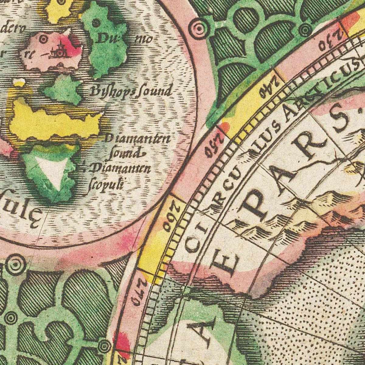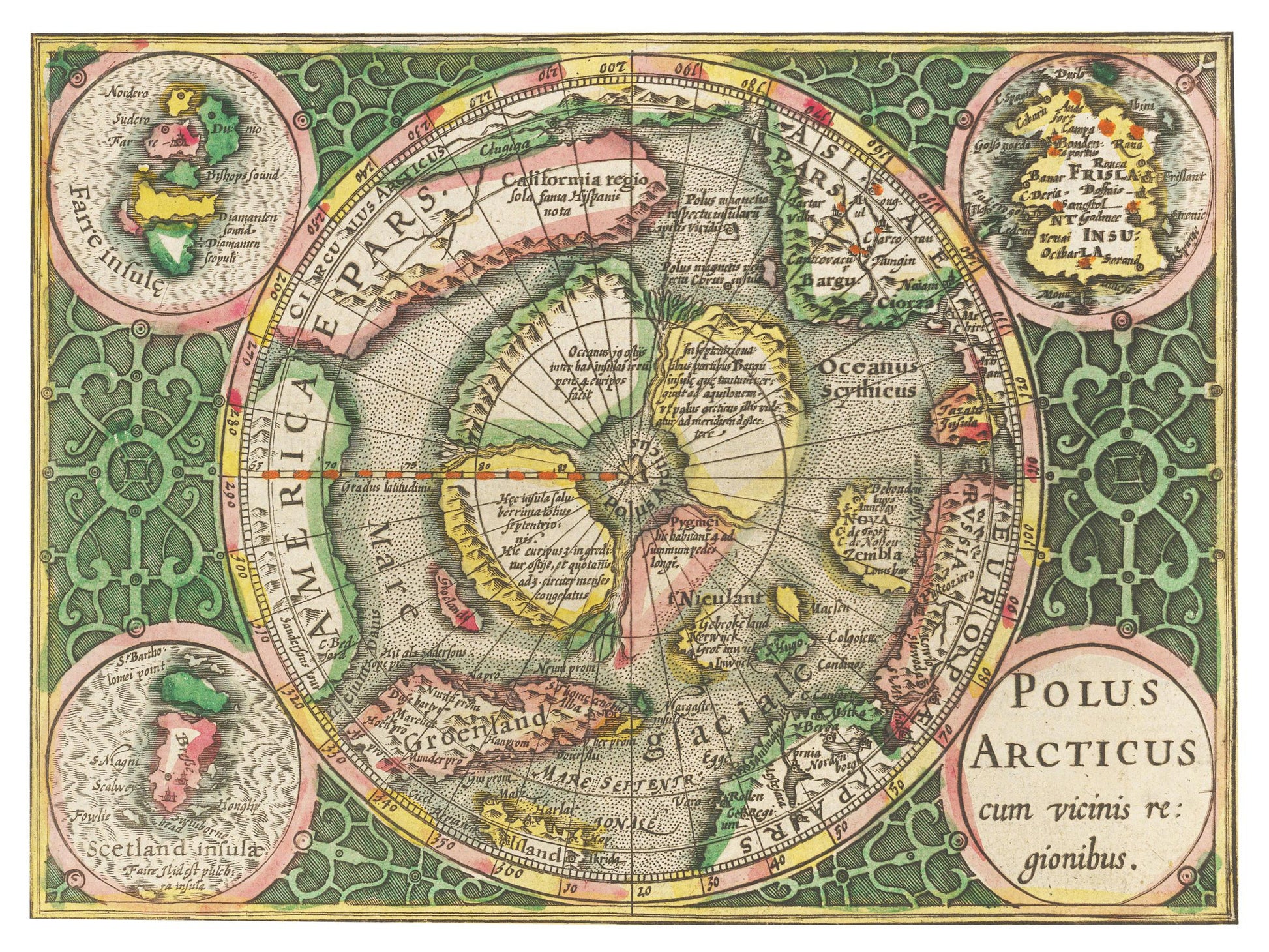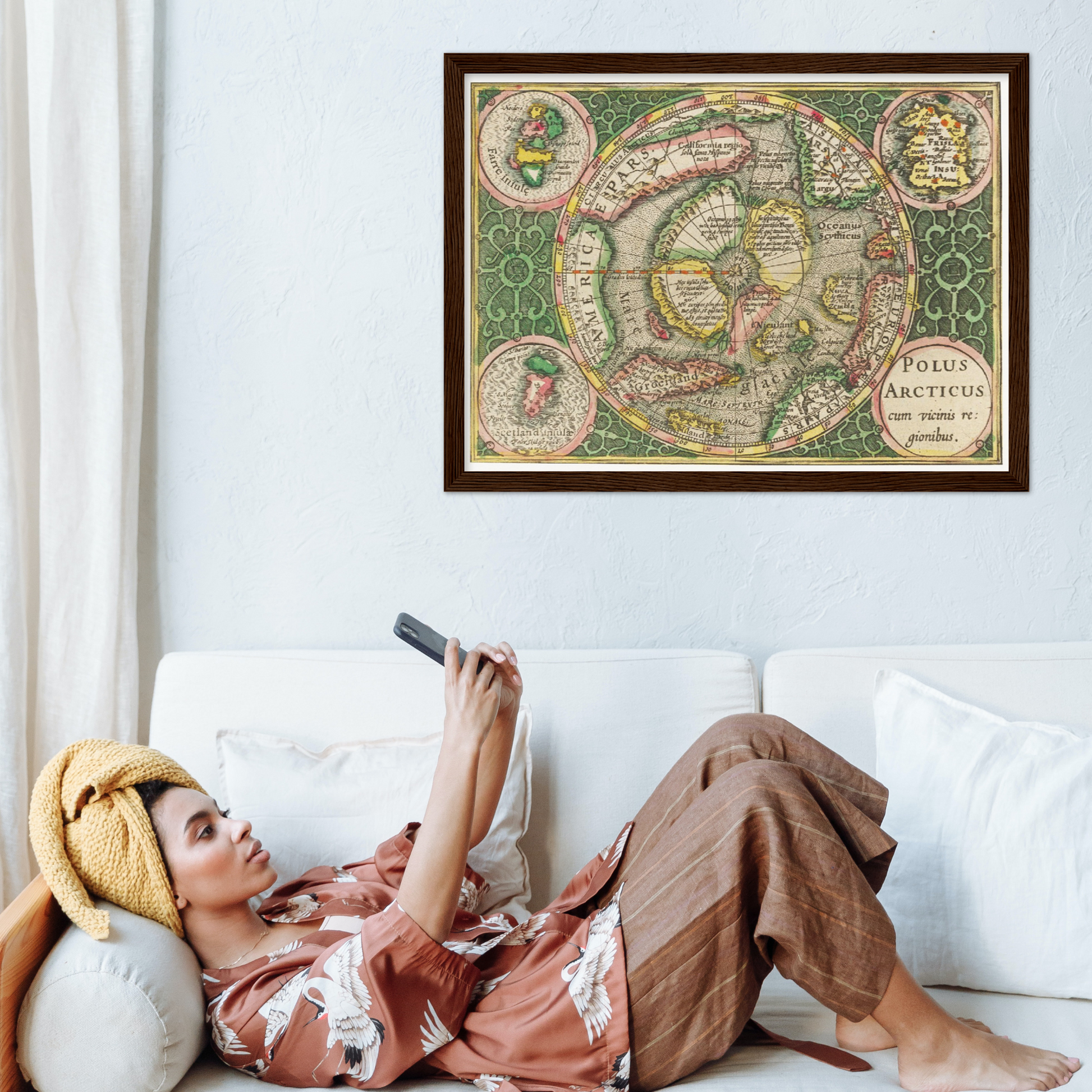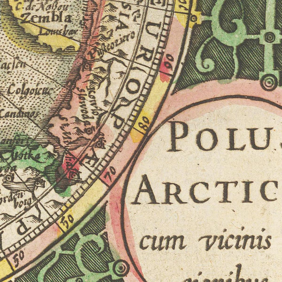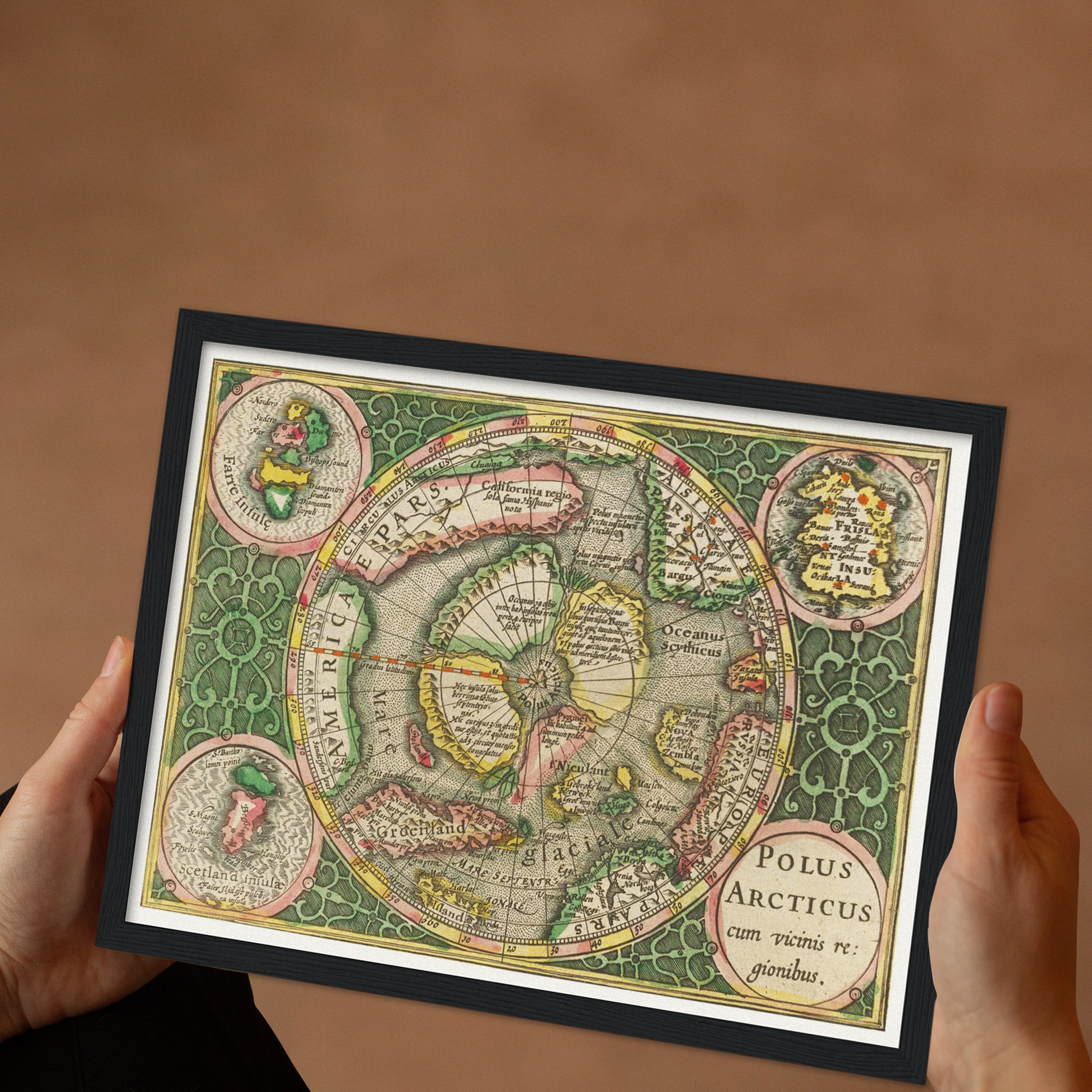 Diese Historische Landkarte der Arktis von 1609 bringt die geheimnisvolle Schönheit der unberührten Polarregionen in Dein Zuhause.