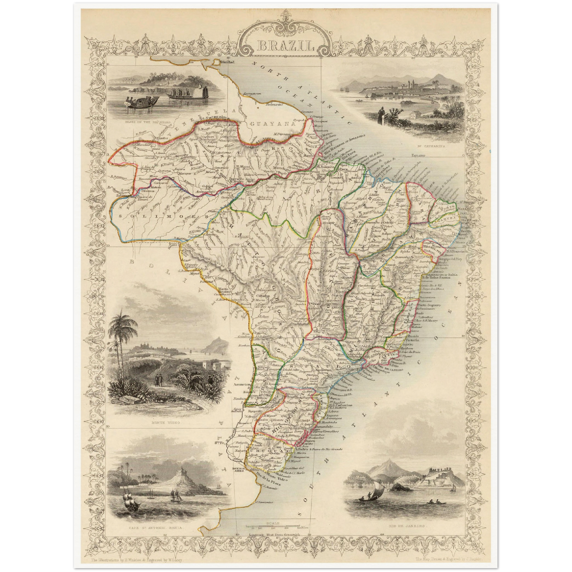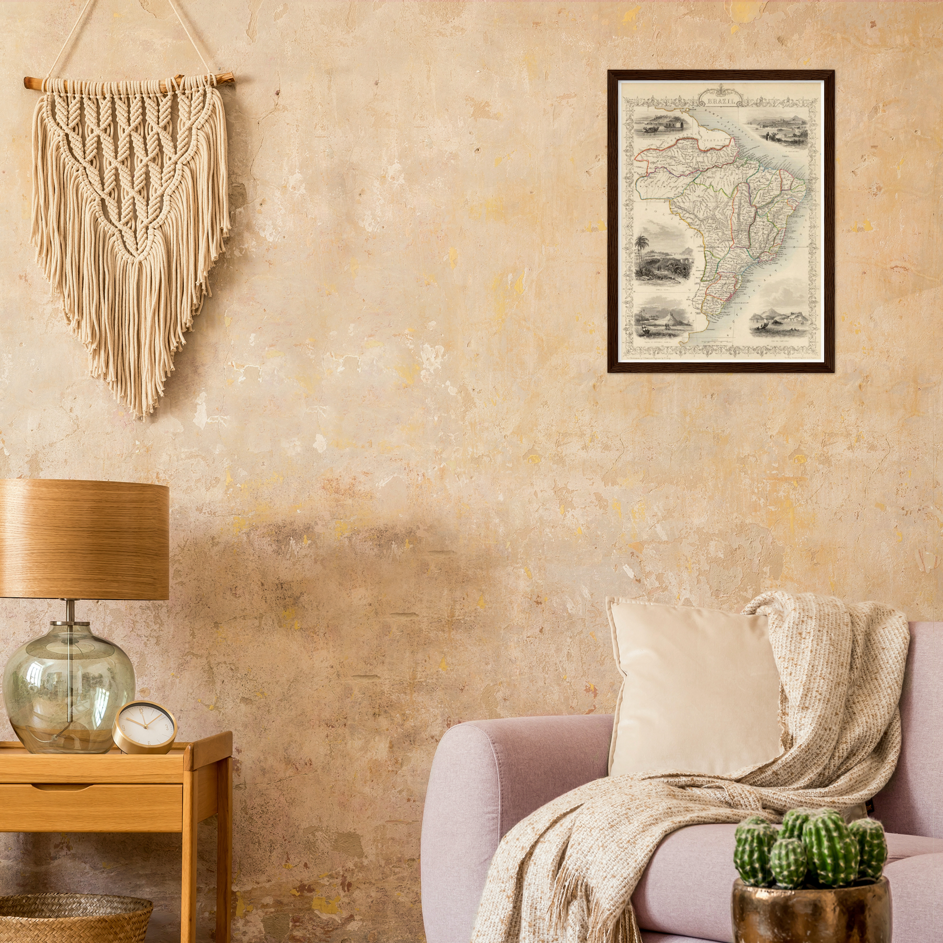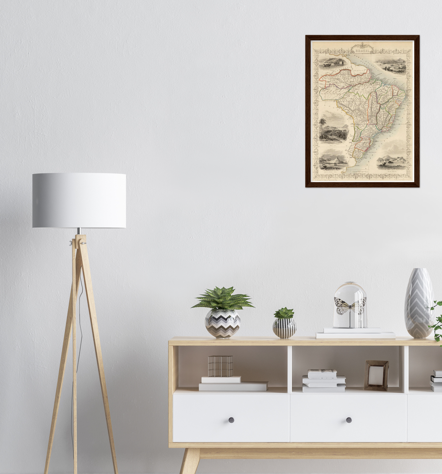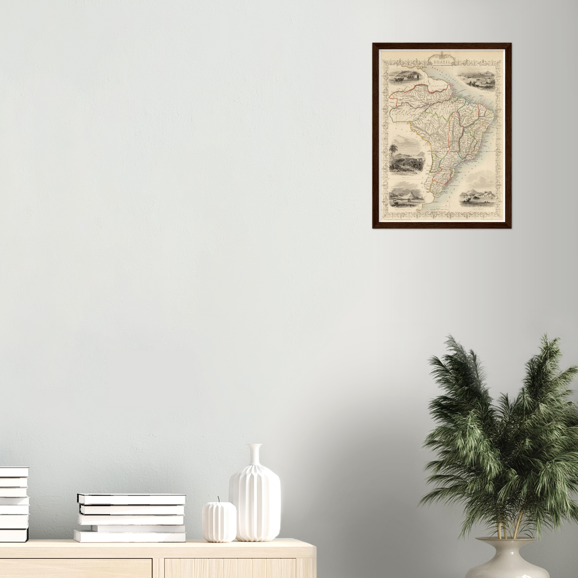 Erleben Sie den Charme und die Geschichte des 19. Jahrhunderts mit dieser Historischen Landkarte Brasilien um 1850, gedruckt auf hochwertigem Archivpapier, die sich perfekt als dekorativer Blickfang in Ihrem Zuhause eignet.