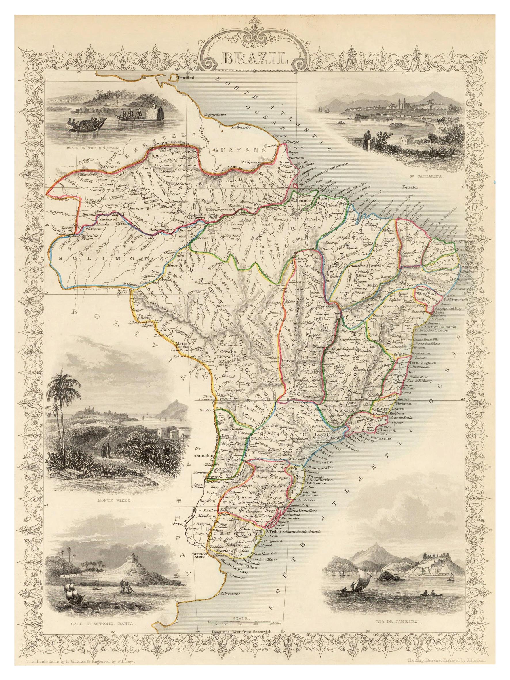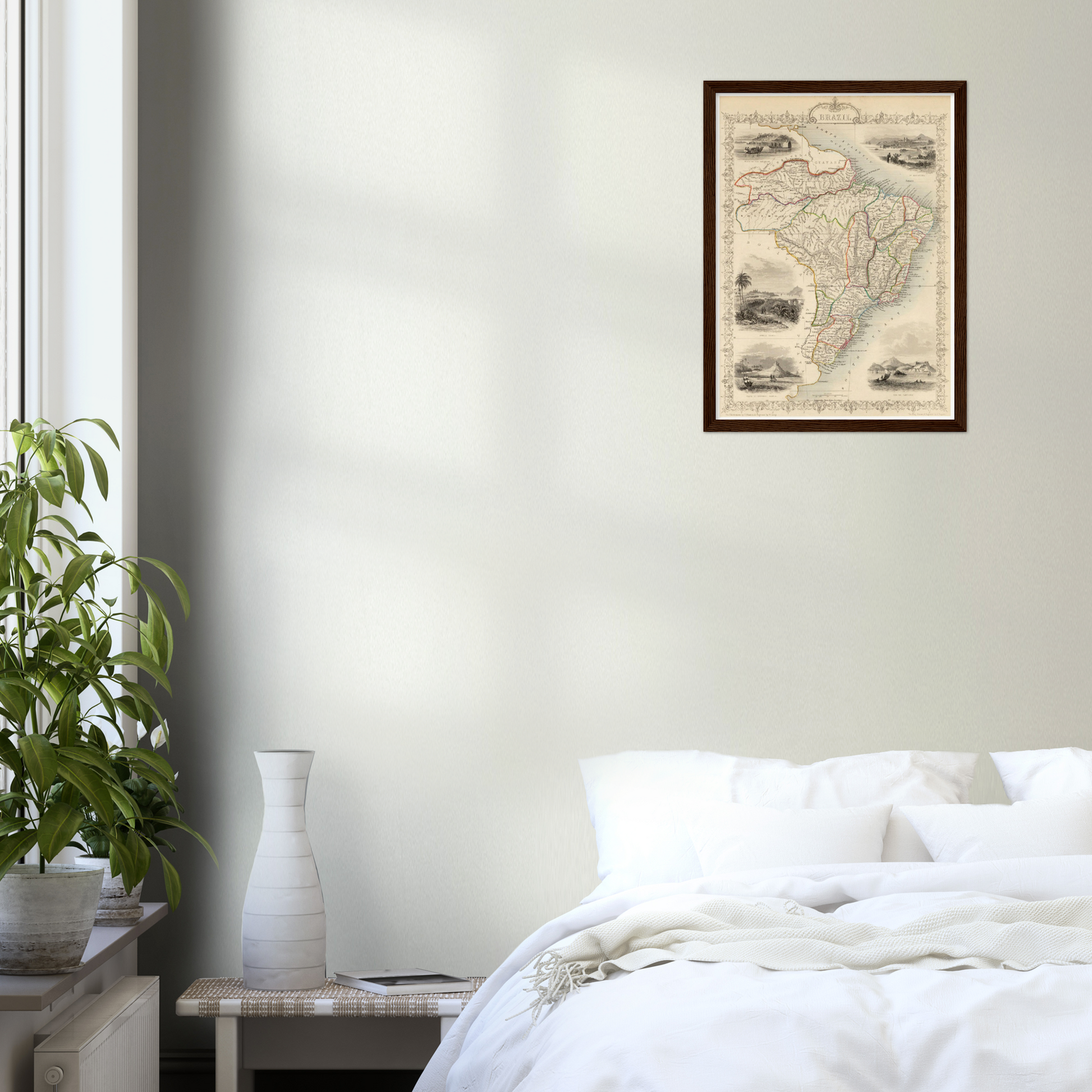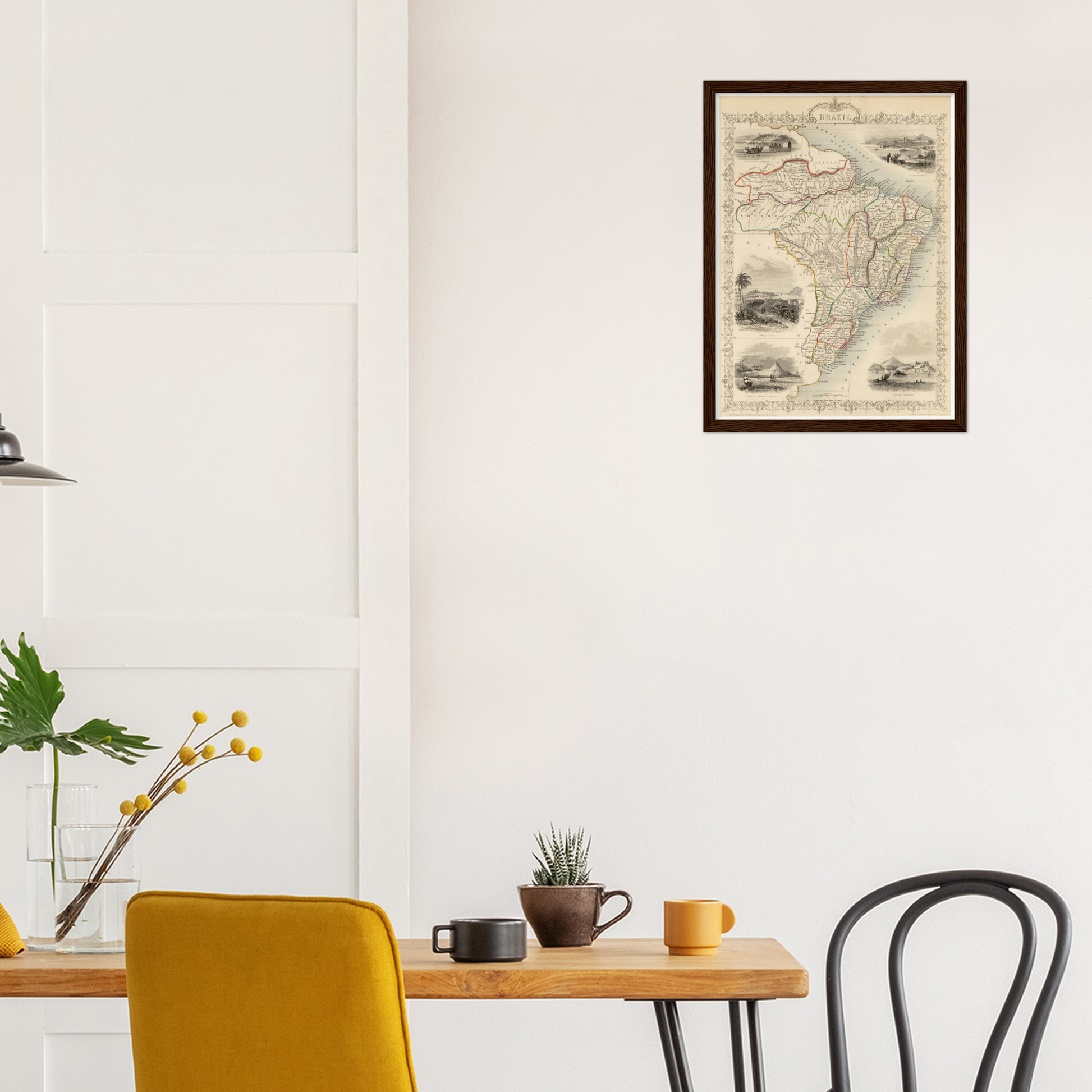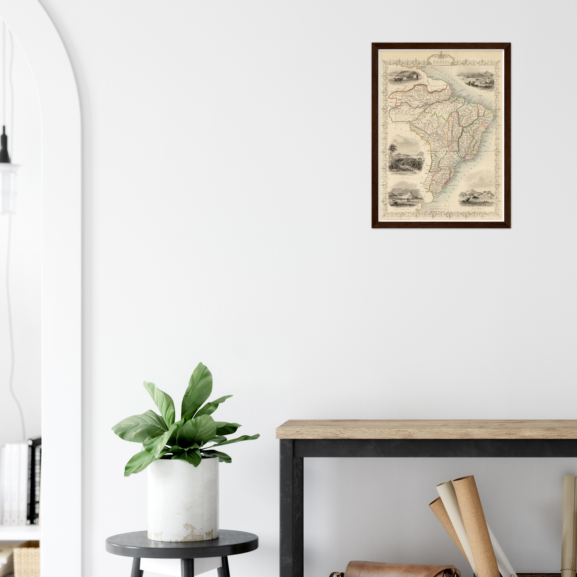 Erleben Sie den Charme und die Geschichte des 19. Jahrhunderts mit dieser Historischen Landkarte Brasilien um 1850, gedruckt auf hochwertigem Archivpapier, die sich perfekt als dekorativer Blickfang in Ihrem Zuhause eignet.