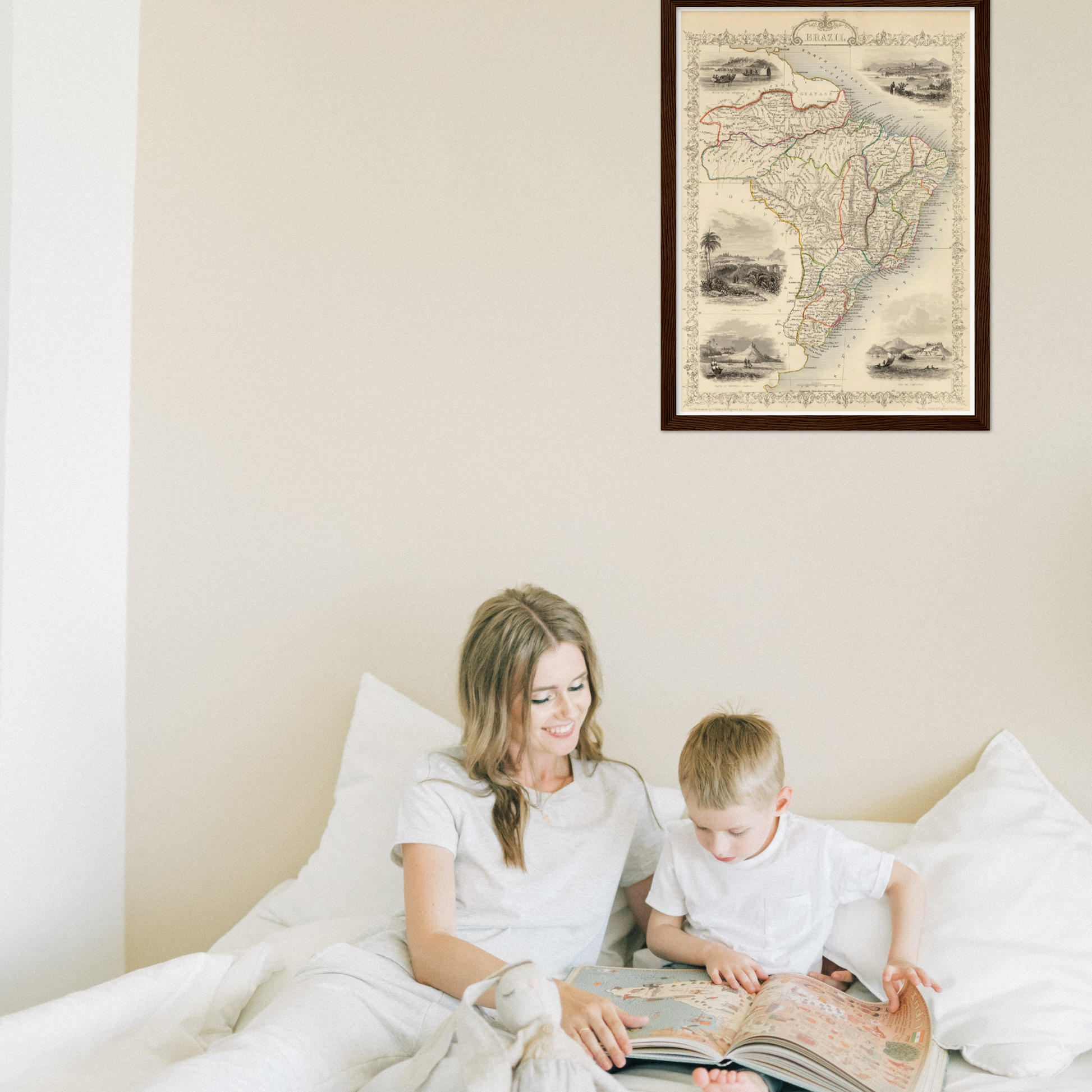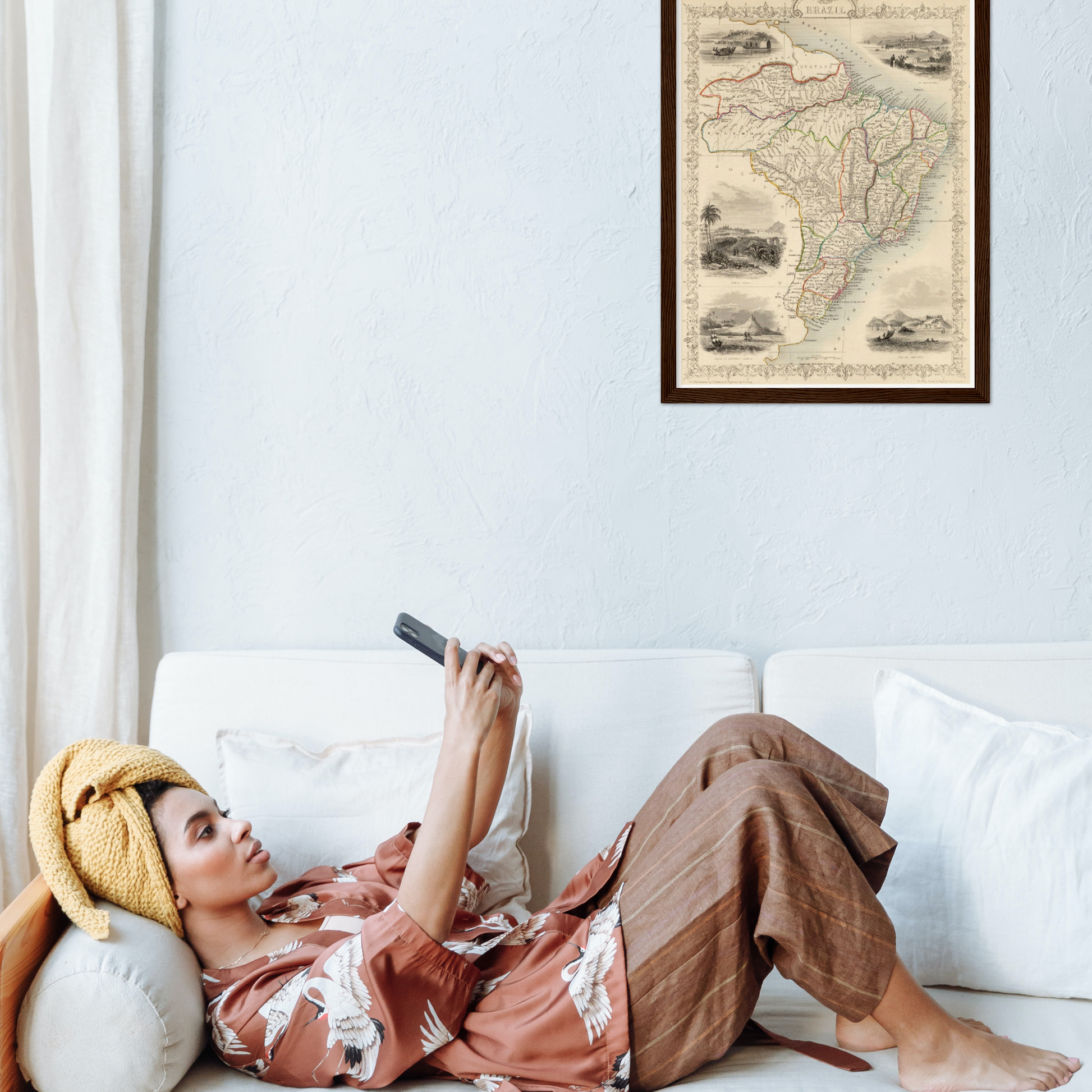 Für viele Menschen hat die Brasilienkarte eine persönliche und emotionale Bedeutung. Viele Kunden wählen diese Karte als Geschenk für diejenigen, die in Brasilien ihre Wurzeln haben oder eine tiefe Verbindung zu diesem Land spüren. Sie ist mehr als nur ein dekoratives Element – sie ist ein Stück Heimat, das Erinnerungen weckt und Geschichten erzählt. Ob als persönliches Erinnerungsstück oder als eindrucksvolles Statement in einem modernen Wohnzimmer, diese historische Landkarte bietet eine Verbindung zwischen Vergangenheit und Gegenwart und schafft eine emotionale Brücke zu einem Ort von unschätzbarem kulturellen Wert.