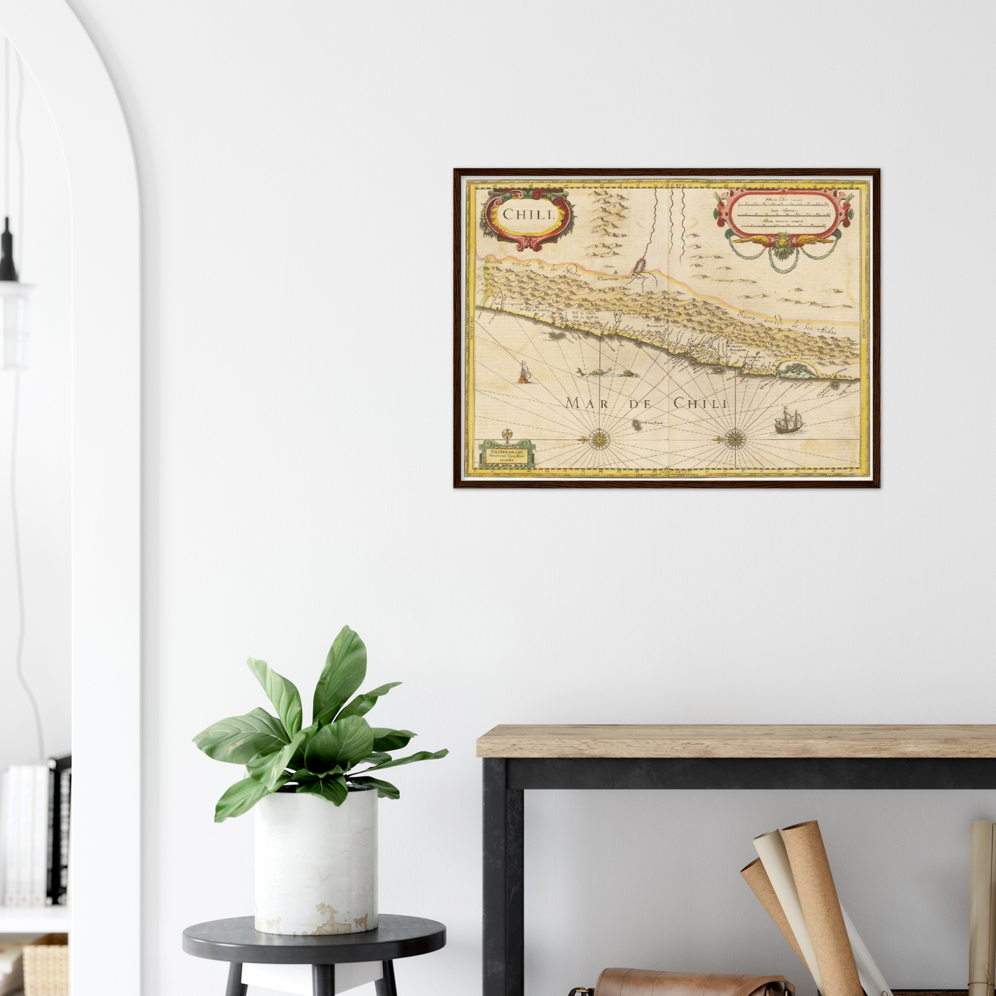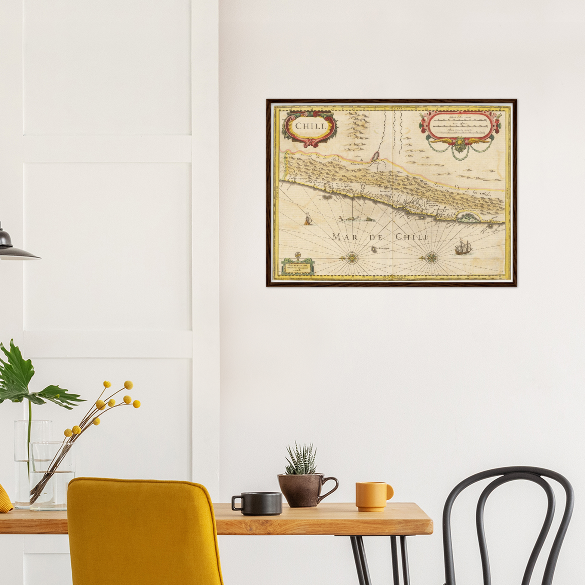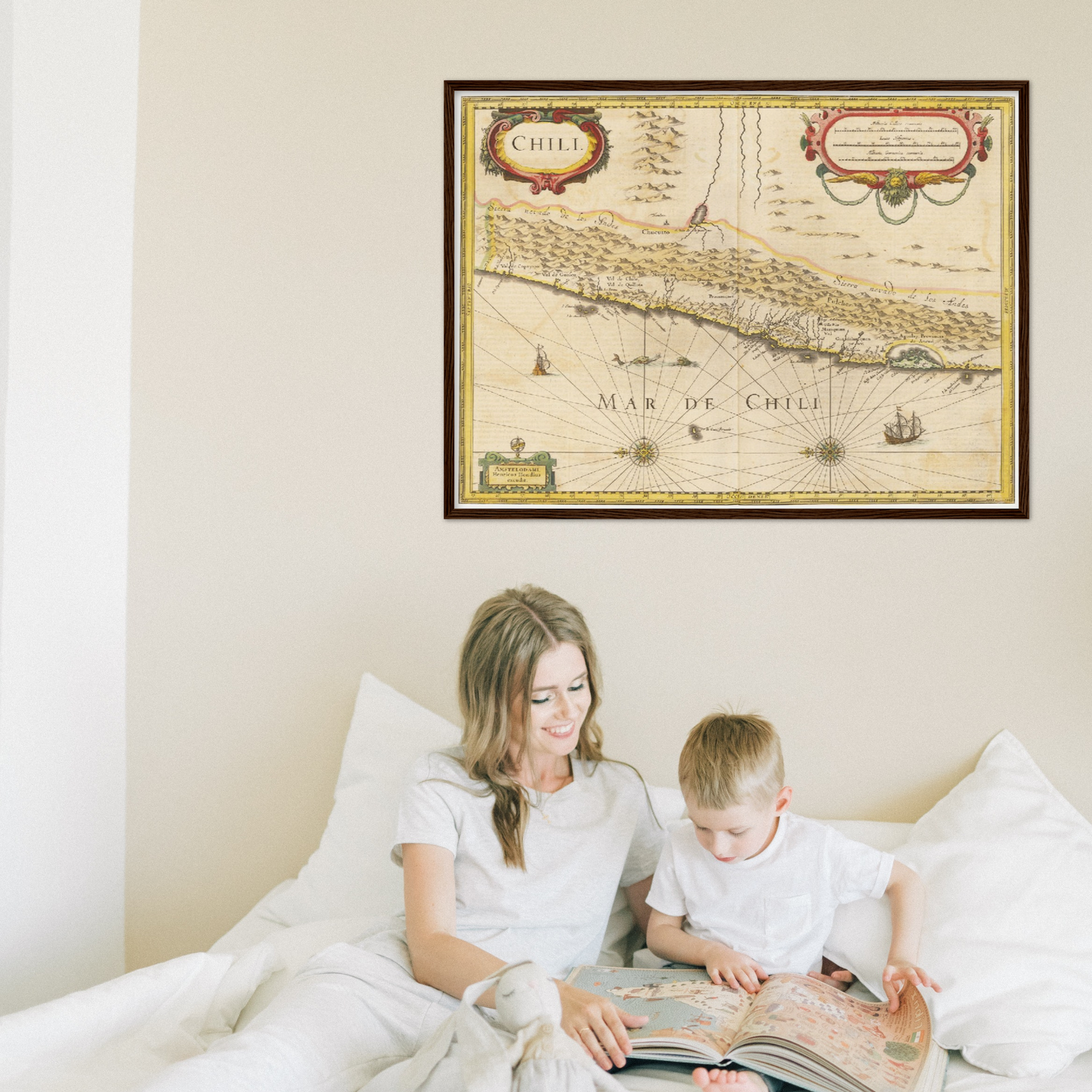Tauchen Sie ein in die faszinierende Welt des 17. Jahrhunderts, als Entdecker und Kartographen die Konturen neuer Welten erkundeten. Die historische Landkarte von Chile aus dem Jahr 1638 entführt Sie in eine längst vergangene Epoche. Diese Karte fasziniert durch ihre präzisen Gravuren und vermittelt den Eindruck einer noch unentdeckten Wildnis. Die kunstvollen Linien und der historische Stil wecken die Neugier auf eine Zeit, in der die Geheimnisse des Südkontinents noch nicht vollständig gelüftet waren, und laden dazu ein, die Vergangenheit mit neuen Augen zu sehen.