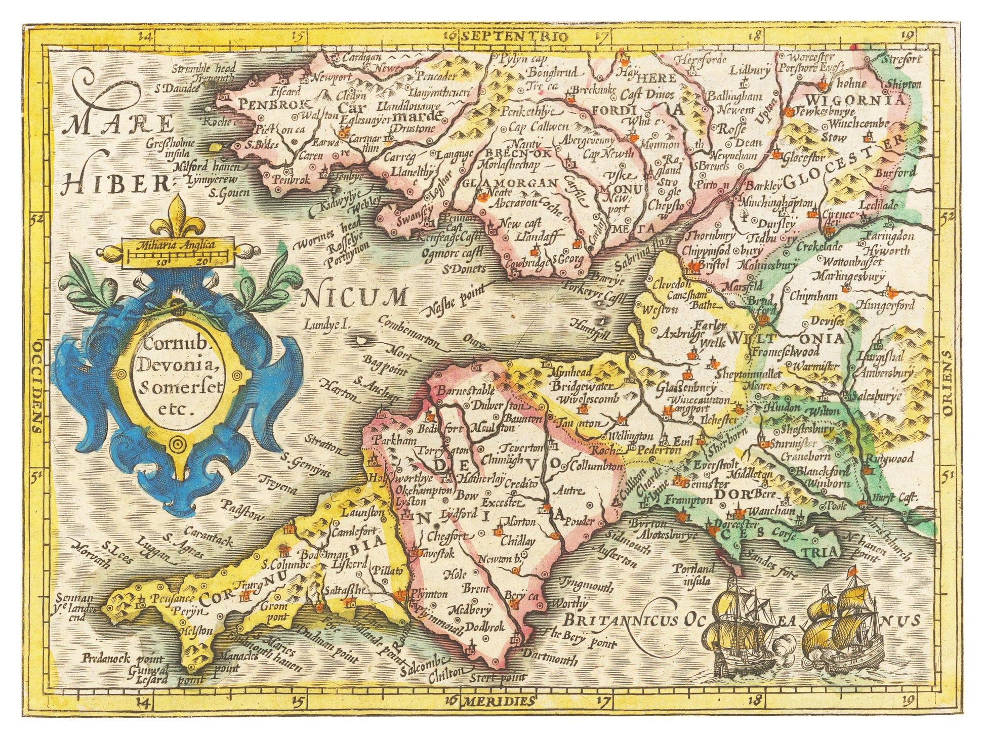Im frühen 17. Jahrhundert befand sich Europa in einer dynamischen Phase des Wandels und der Entdeckungen. Unsere Landkarte von Cornwall aus dem Jahr 1609 wurde von einem Meister des Fachs geschaffen und bietet einen faszinierenden Einblick in die kartographische Präzision jener Epoche. Der Kartograph verewigte nicht nur die Küstenlinien und topografischen Besonderheiten, sondern auch kulturelle und wirtschaftliche Zentren Cornwalls. Besondere Symbole und Illustrationen zeugen von der Bedeutung der Region als maritime Drehscheibe. Heute ist diese Karte ein wertvolles Kulturgut, das uns an den Reichtum und die Vielfalt des historischen Cornwall erinnert.