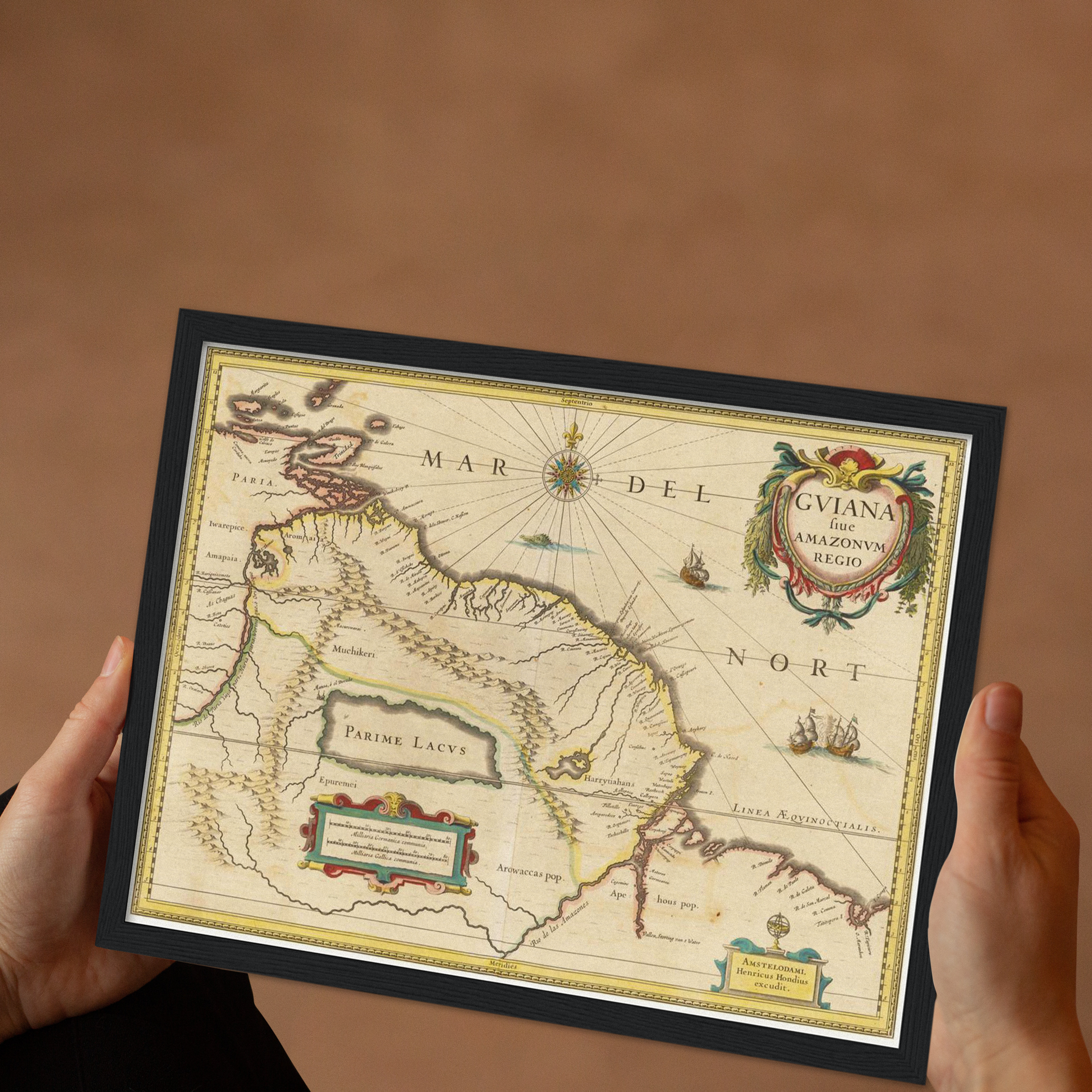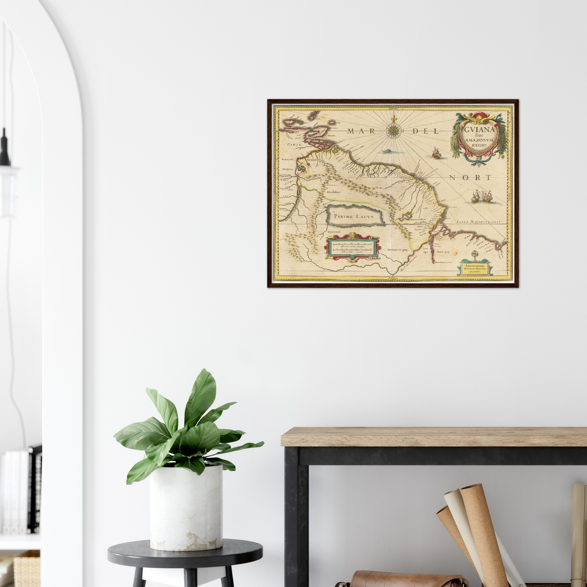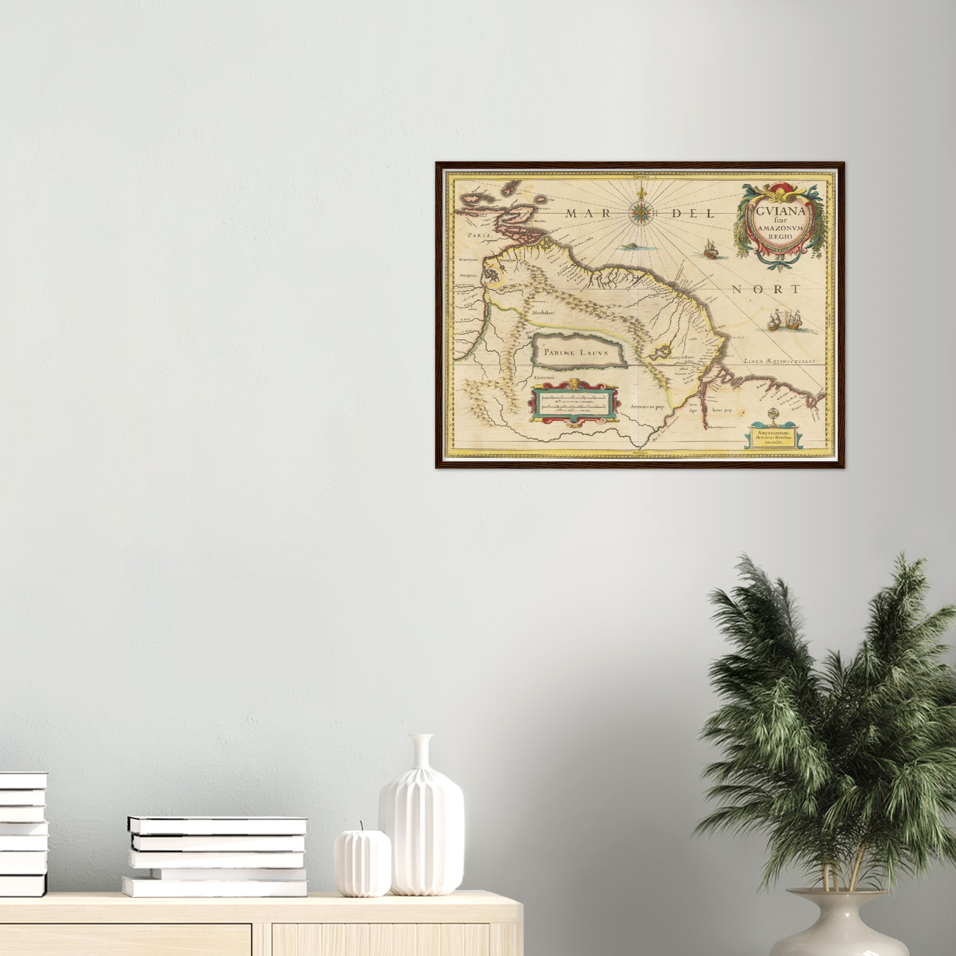 Die historische Landkarte von Guyana aus dem Jahr 1638 entführt Dich in eine Zeit, in der die Welt noch voller unentdeckter Geheimnisse war. Wenn der Blick über die kunstvoll gestalteten Linien und die detailreichen Gravuren wandert, wird die Vorstellungskraft beflügelt – man spürt regelrecht das Abenteuer der Entdeckerzeit. Diese Karte ist nicht nur ein dekoratives Element, sondern ein Fenster in eine Epoche, die mit ihrer faszinierenden Mischung aus Neugierde und Unbekanntem die Geschichte der Welt prägte. Ihre historische Bedeutung entfaltet sich in jedem Detail: Vom ausladenden Amazonas-Gebiet bis hin zu den fein gezeichneten Küstenlinien, verleiht diese Karte Deinem Zuhause ein Hauch von Vergangenheit und inspiriert zu immer neuen Erkundungen der menschlichen Geschichte.