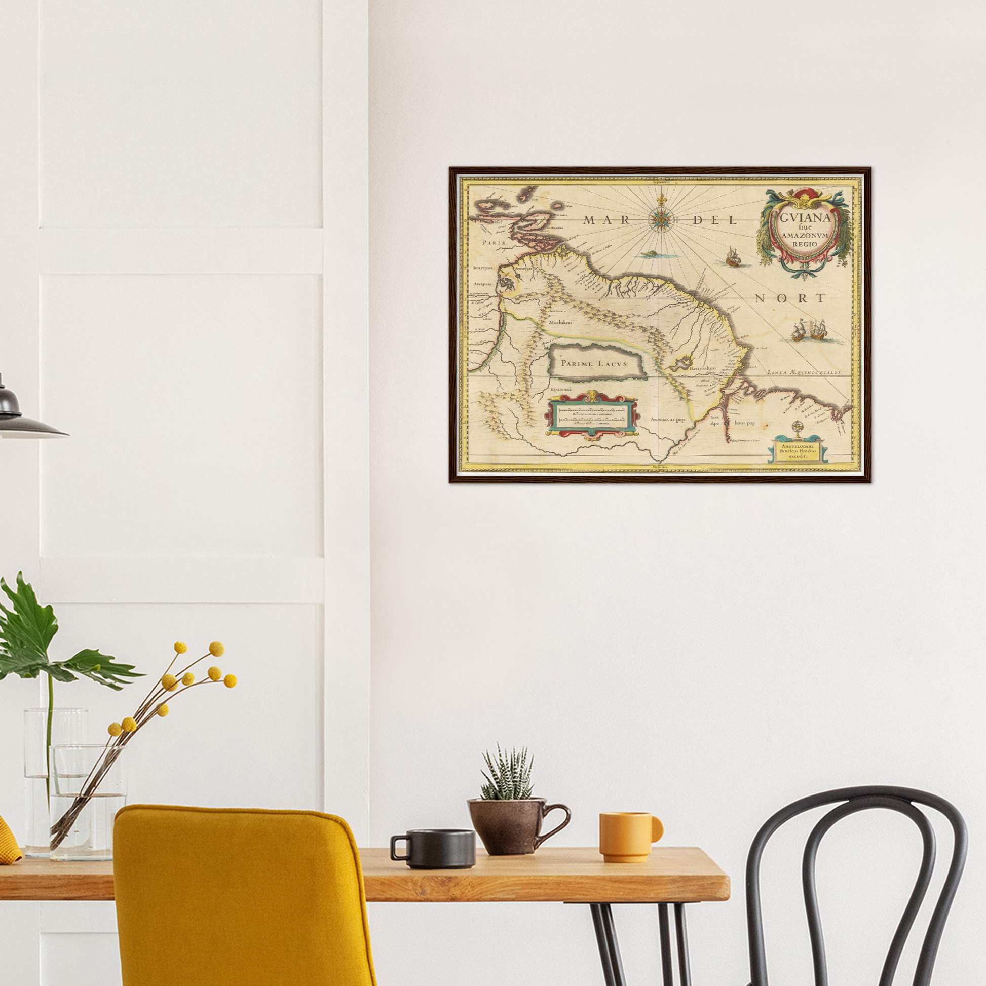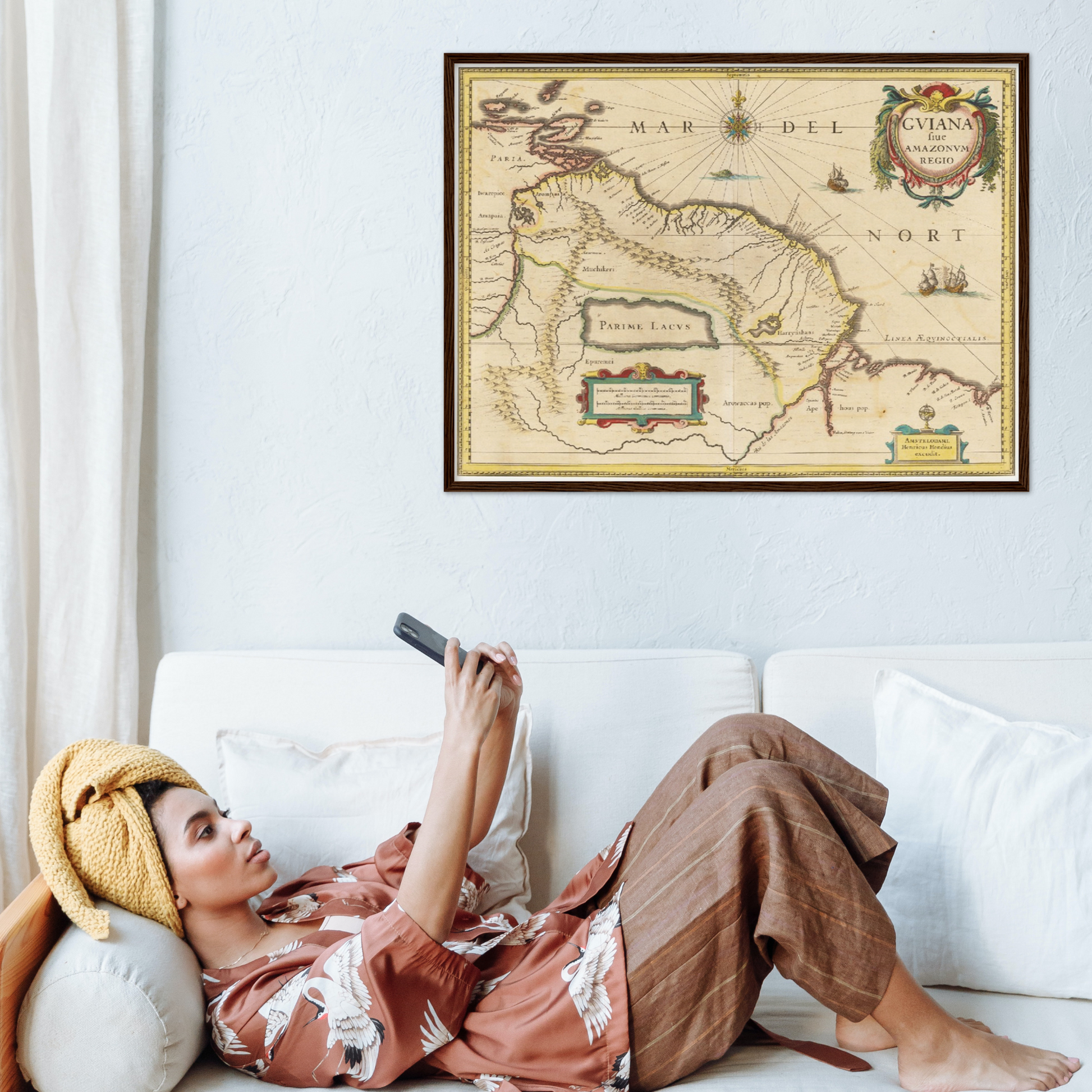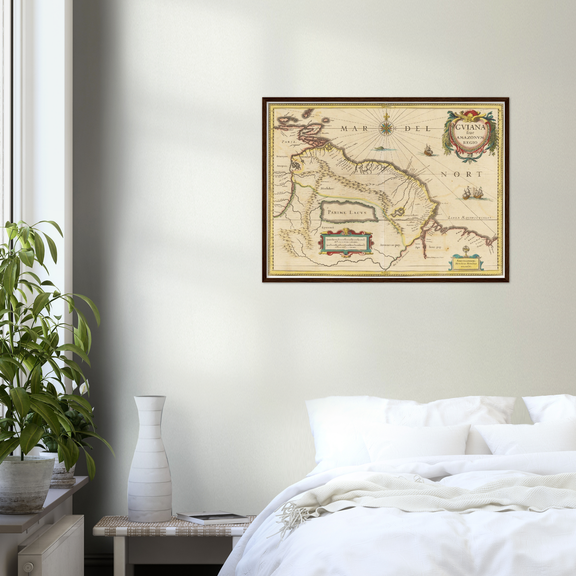 Die historische Landkarte von Guyana aus dem Jahr 1638 entführt Dich in eine Zeit, in der die Welt noch voller unentdeckter Geheimnisse war. Wenn der Blick über die kunstvoll gestalteten Linien und die detailreichen Gravuren wandert, wird die Vorstellungskraft beflügelt – man spürt regelrecht das Abenteuer der Entdeckerzeit. Diese Karte ist nicht nur ein dekoratives Element, sondern ein Fenster in eine Epoche, die mit ihrer faszinierenden Mischung aus Neugierde und Unbekanntem die Geschichte der Welt prägte. Ihre historische Bedeutung entfaltet sich in jedem Detail: Vom ausladenden Amazonas-Gebiet bis hin zu den fein gezeichneten Küstenlinien, verleiht diese Karte Deinem Zuhause ein Hauch von Vergangenheit und inspiriert zu immer neuen Erkundungen der menschlichen Geschichte.