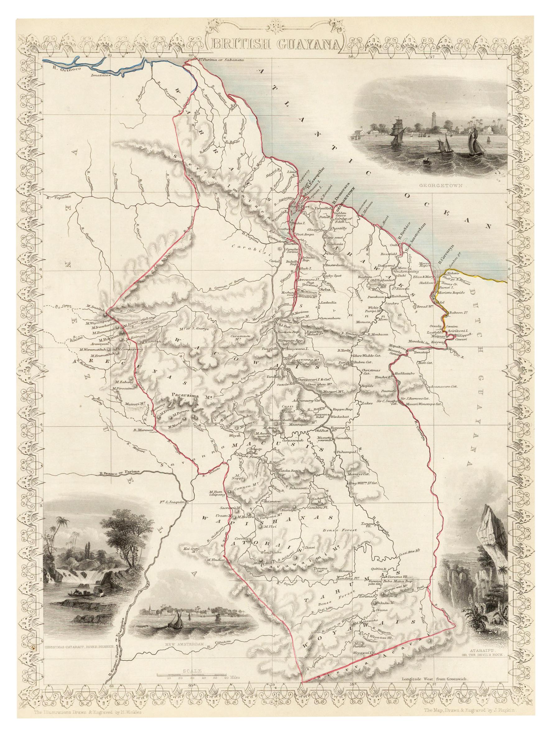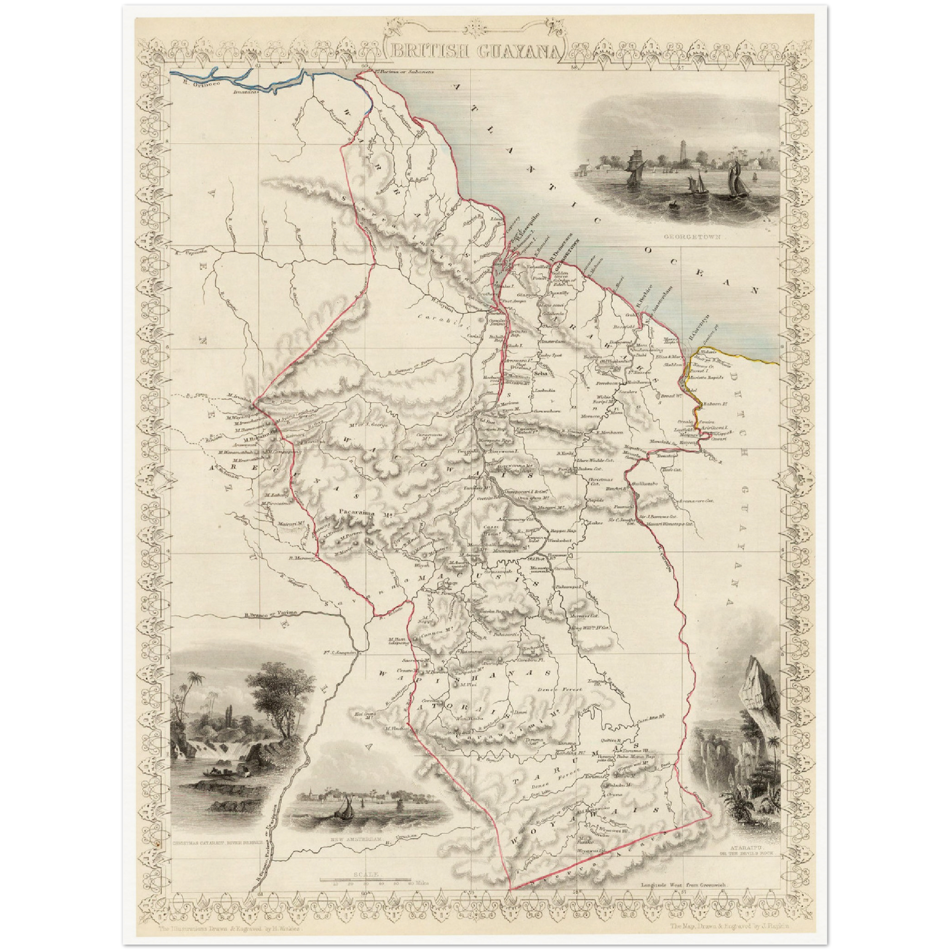Tauchen Sie ein in die faszinierende Welt von Guyana um 1850 und erleben Sie die kunstvolle Darstellung einer längst vergangenen Epoche.
