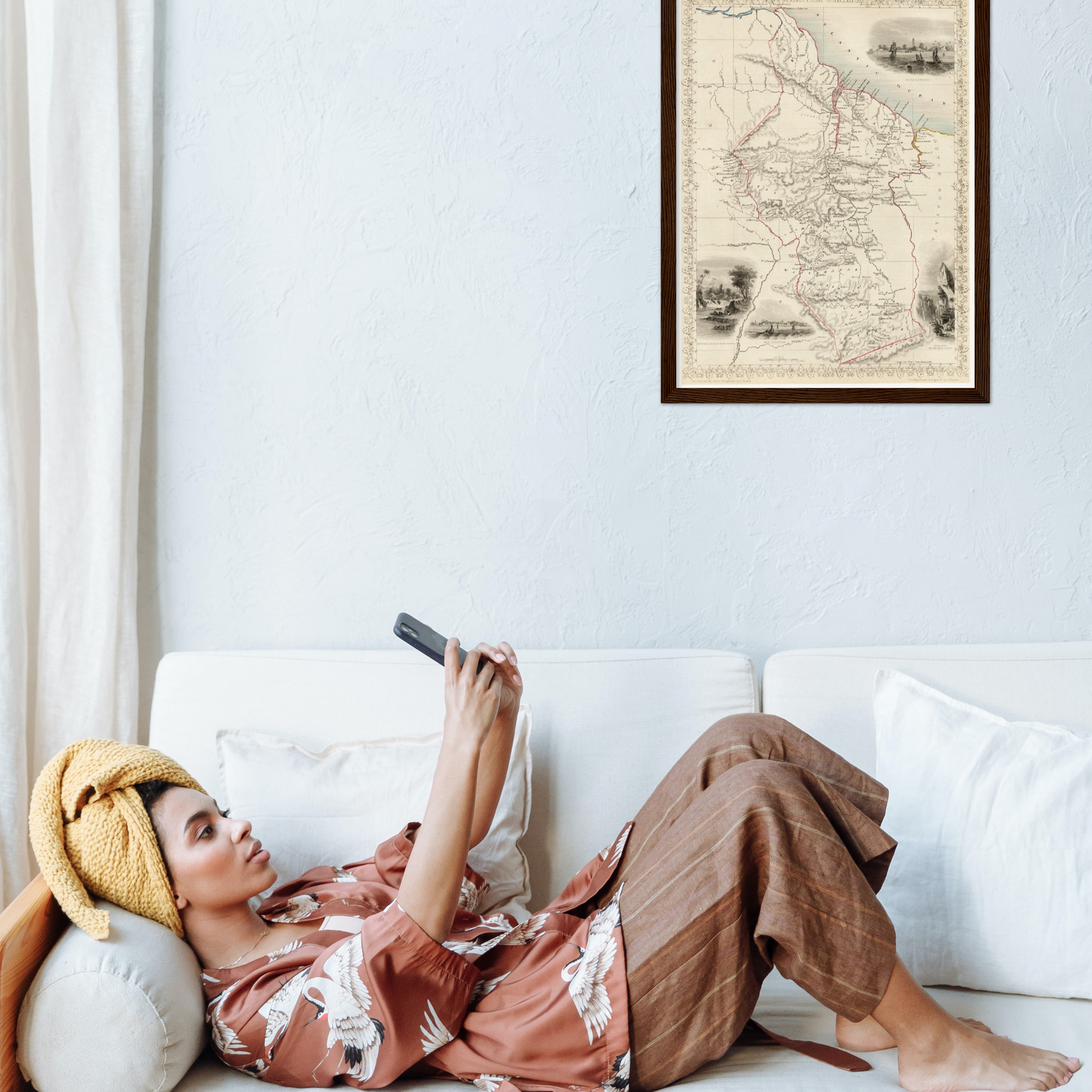 Die Landkarte von Guyana um 1850 gehört zu den beeindruckenden Zeugnissen der kartografischen Präzision jener Zeit. In einer Ära, in der Kolonisation und Erkundung die Weltkarte stetig veränderten, spielte die Kartographie eine essenzielle Rolle. Diese Karte zeigt nicht nur die detaillierten Flussläufe und Erhebungen der Region, sondern auch die damalige Vorstellung der Weltordnung. Die Darstellung von Guyana in einem solch authentischen Stil bietet einen Einblick in die geopolitische Bedeutung dieser Region und ihren Platz in der damals globalen Landschaft. Karten wie diese sind heute von unschätzbarem kulturellen Wert, da sie die Evolution unseres Wissens und unserer Entdeckungsreisen repräsentieren.