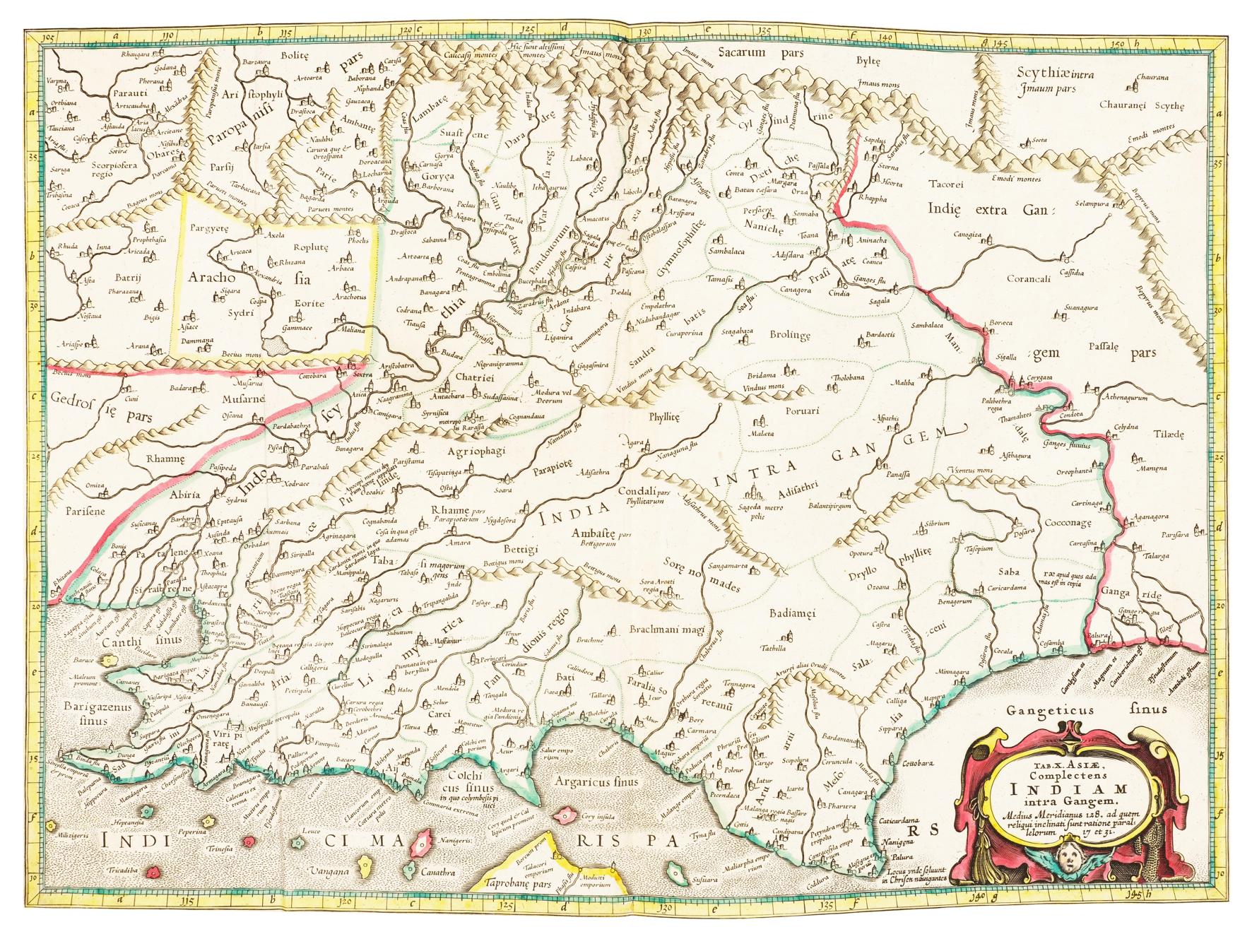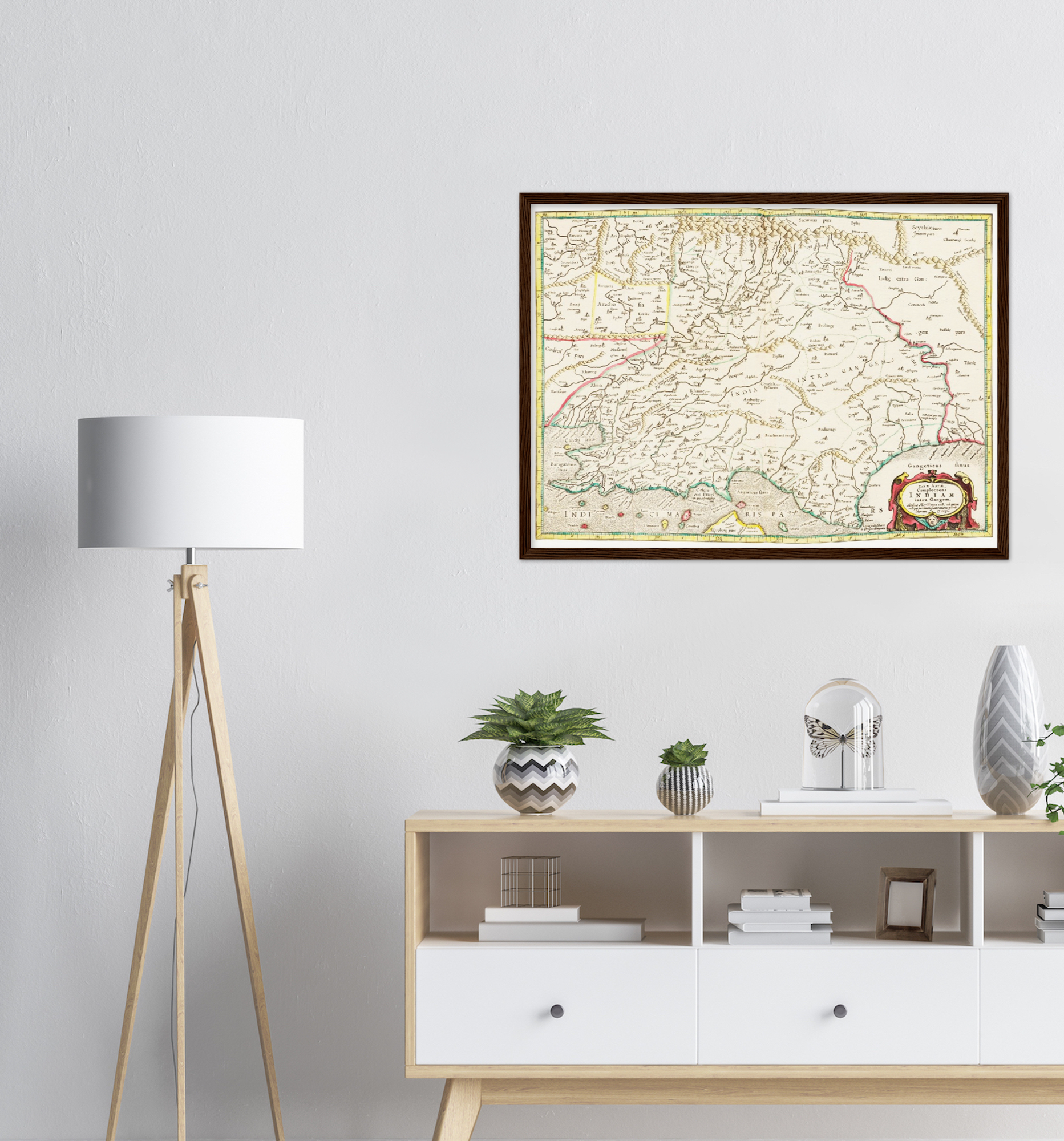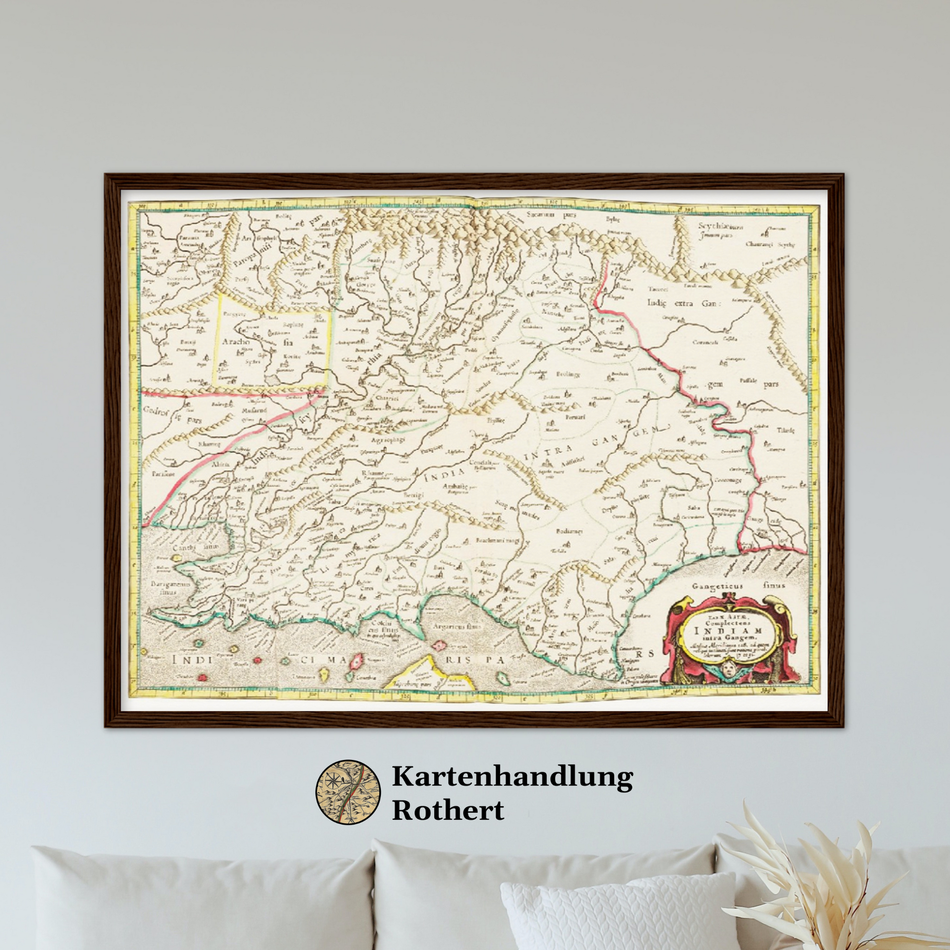 Tauchen Sie ein in das Indien des frühen 18. Jahrhunderts mit einer faszinierenden historischen Landkarte von 1704, ein Zeugnis der damaligen kartographischen Kunst und Entdeckungsfreude.