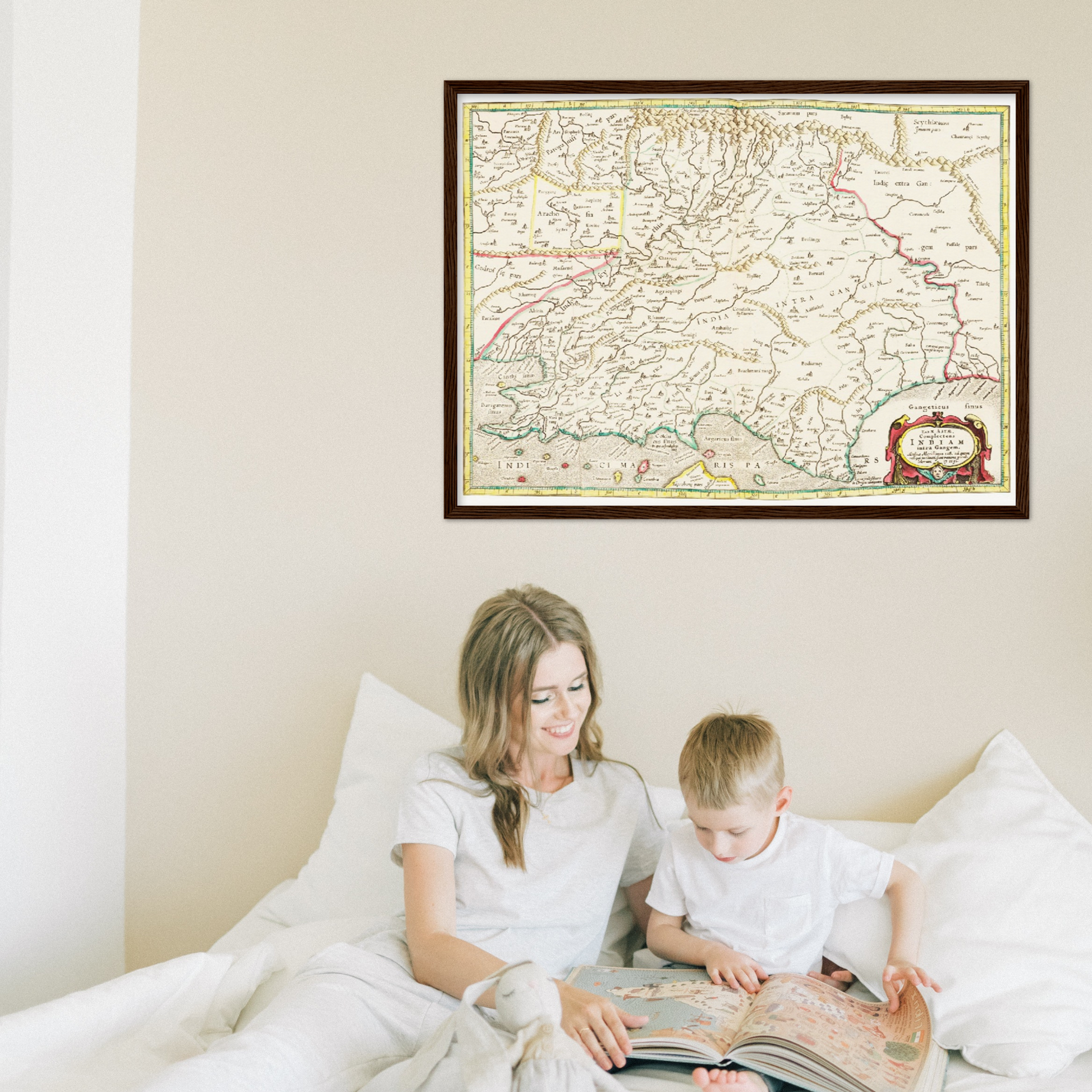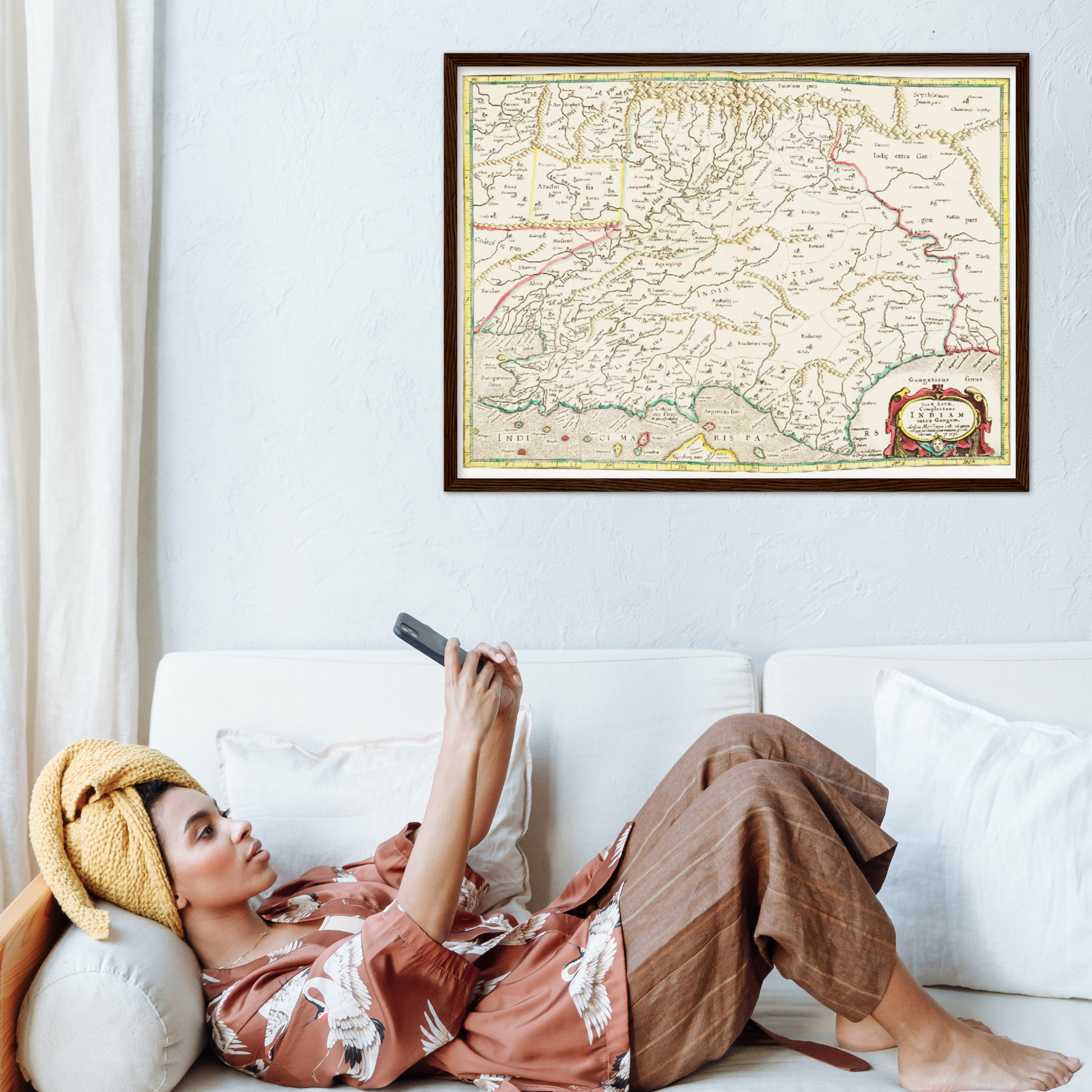 Diese historische Landkarte bietet eine tiefe emotionale Verbindung für jeden, der einen Bezug zu Indien hat. Viele unserer Kunden wählen sie als Geschenk für Freunde und Familie – sei es, weil sie an diese reiche Kultur gebunden sind oder einfach aus Liebe zum Detail und zur Geschichte. Ob als Erinnerungsstück für jemanden mit indischen Wurzeln oder als dekoratives Element für jeden Geschichts- und Kunstliebhaber, diese Karte erzählt Geschichten von Abenteuern und Entdeckungen. Holen Sie sich ein Stück Geschichte in Ihr Zuhause und lassen Sie es zu einem einzigartigen Mittelpunkt Ihrer Wohnungseinrichtung werden.