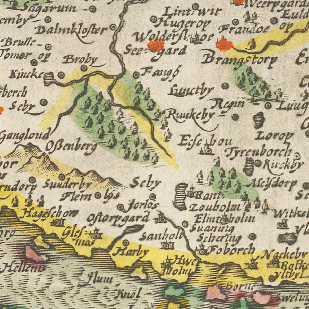 Die Kartierung der Insel Fünen im Jahr 1609 ist ein beeindruckendes Zeugnis der damaligen Kartographie-Kunst. Im aufstrebenden Zeitalter der Entdeckungen und wissenschaftlichen Neugierde spielte Dänemark eine wichtige Rolle, und diese Karte ist ein beeindruckender Ausdruck dieses Geistes. Professionelle Kartographen jener Zeit widmeten sich der genauen Wiedergabe geografischer Details, um Reisenden und Forschern gleichermaßen eine verlässliche Quelle zu bieten. Deutlich sind die charakteristischen Symbole und das kunstfertige Gravurhandwerk zu erkennen, das die Karte zu einem wertvollen kulturellen Dokument macht. Die präzise Darstellung verheißt nicht nur historischen Wert, sondern auch eine visuelle Geschichte der Region, die bis heute fasziniert und inspiriert.