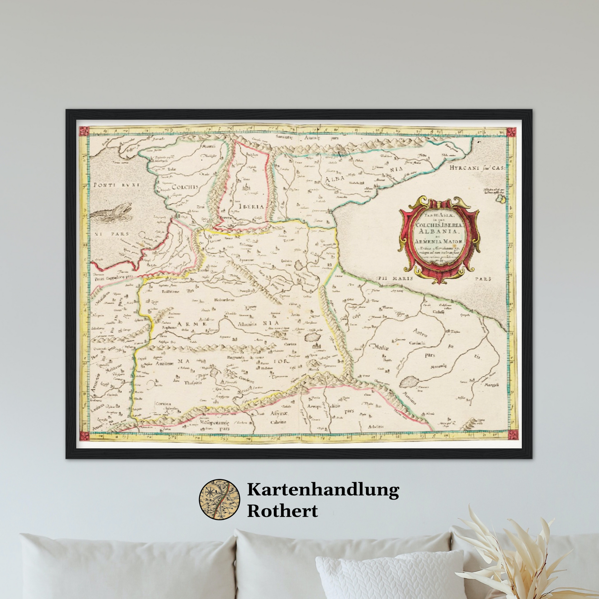 Diese Karte ist nicht nur ein visuelles Meisterwerk, sondern auch ein emotionales Bindeglied für viele. Zahlreiche Kunden wählen diese historische Darstellung als besonderes Geschenk für Freunde oder Familie, die ihre emotionalen Wurzeln im Kaukasus haben oder dort aufgewachsen sind. Sie erinnert an vergangene Geschichten und Erlebnisse, die an einem bedeutungsvollen Ort ihren Ursprung haben. Als Kulturobjekt trägt sie eine Geschichte in sich, die persönliche Verbindungen weckt und das Herz berührt – perfekt als einzigartiges Präsent oder wertvolles Sammlerstück.