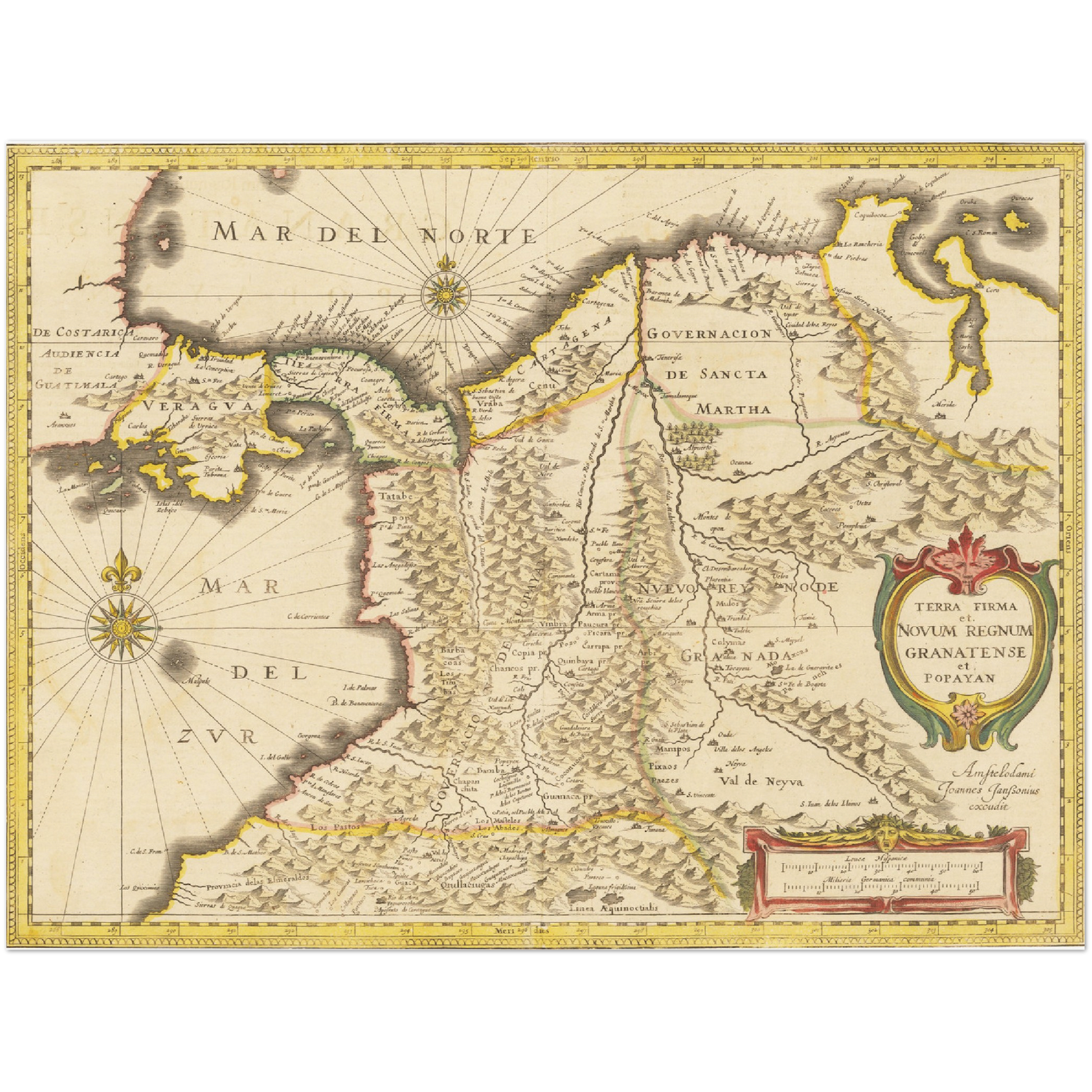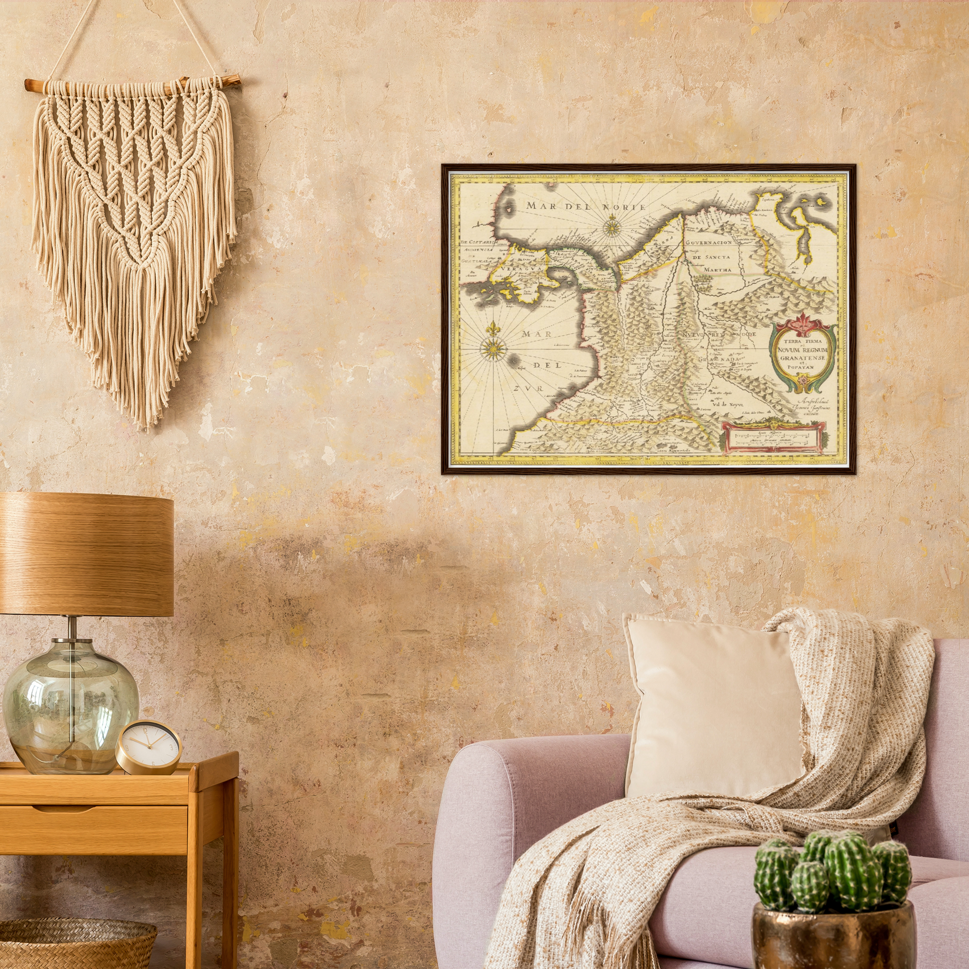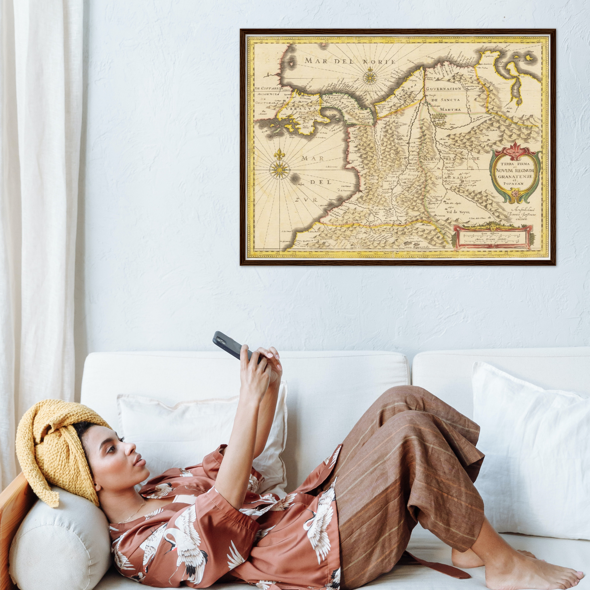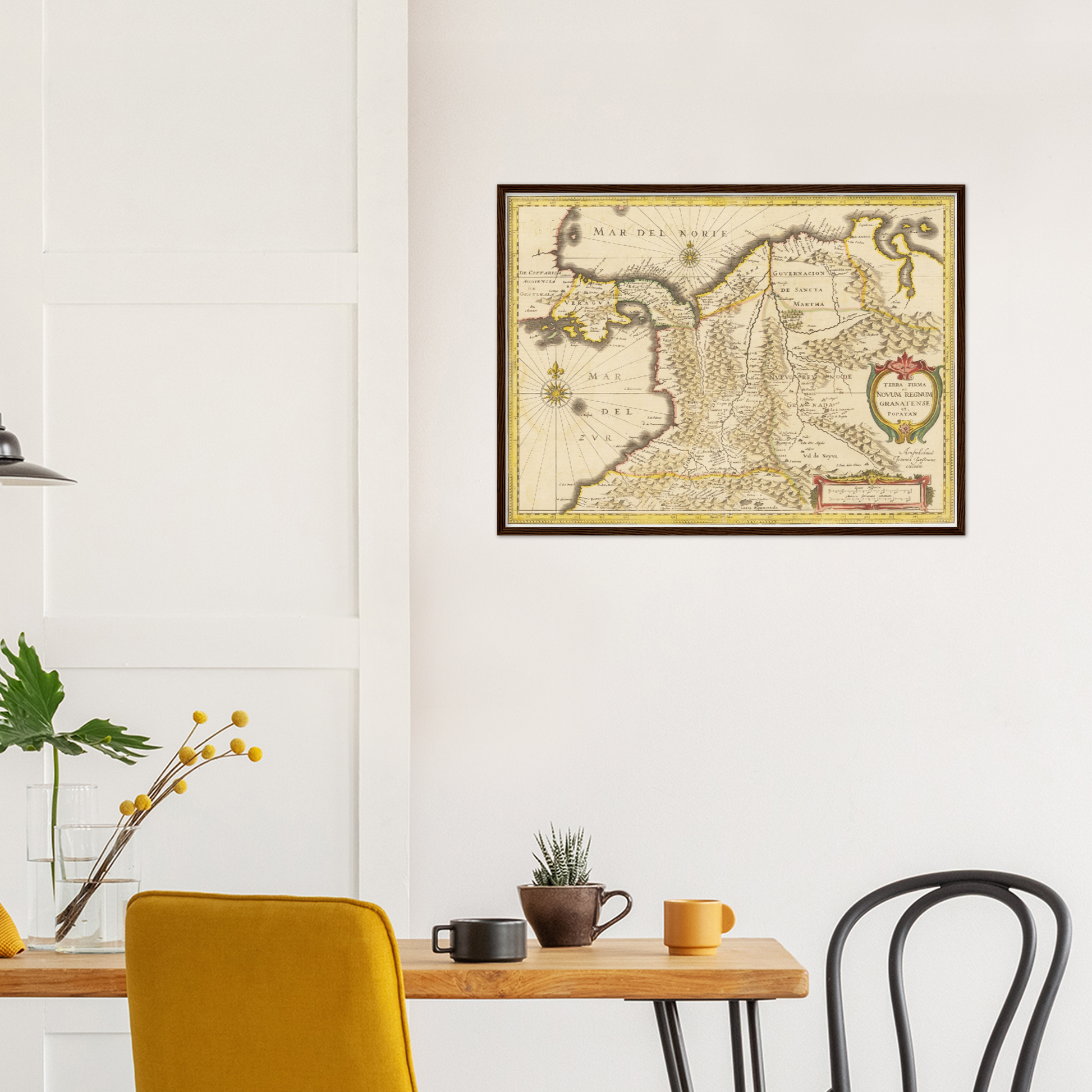 Erleben Sie die faszinierende Geschichte Kolumbiens durch eine historische Landkarte aus dem Jahr 1638, die Ihren Räumen einen Hauch von vergangener Eleganz verleiht.