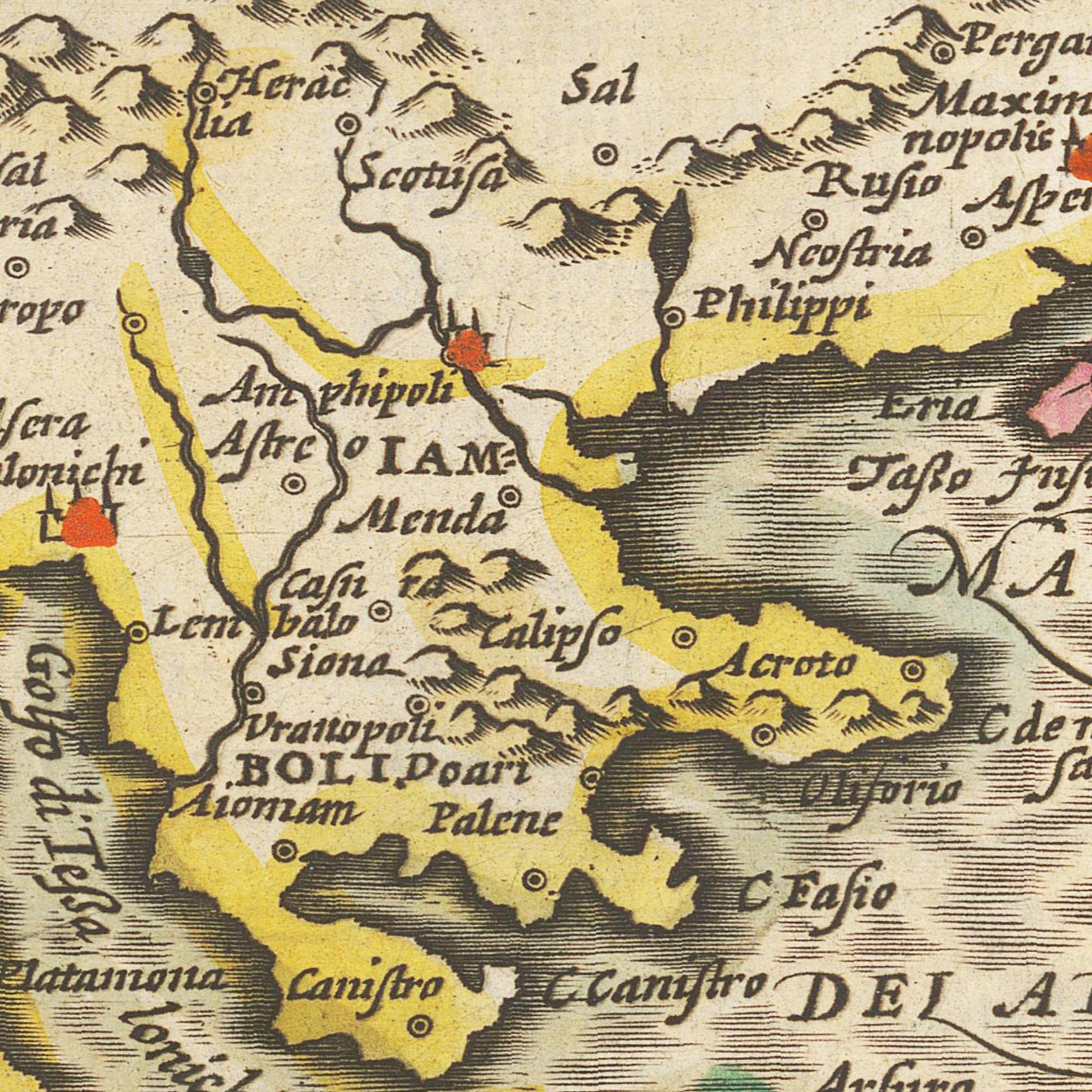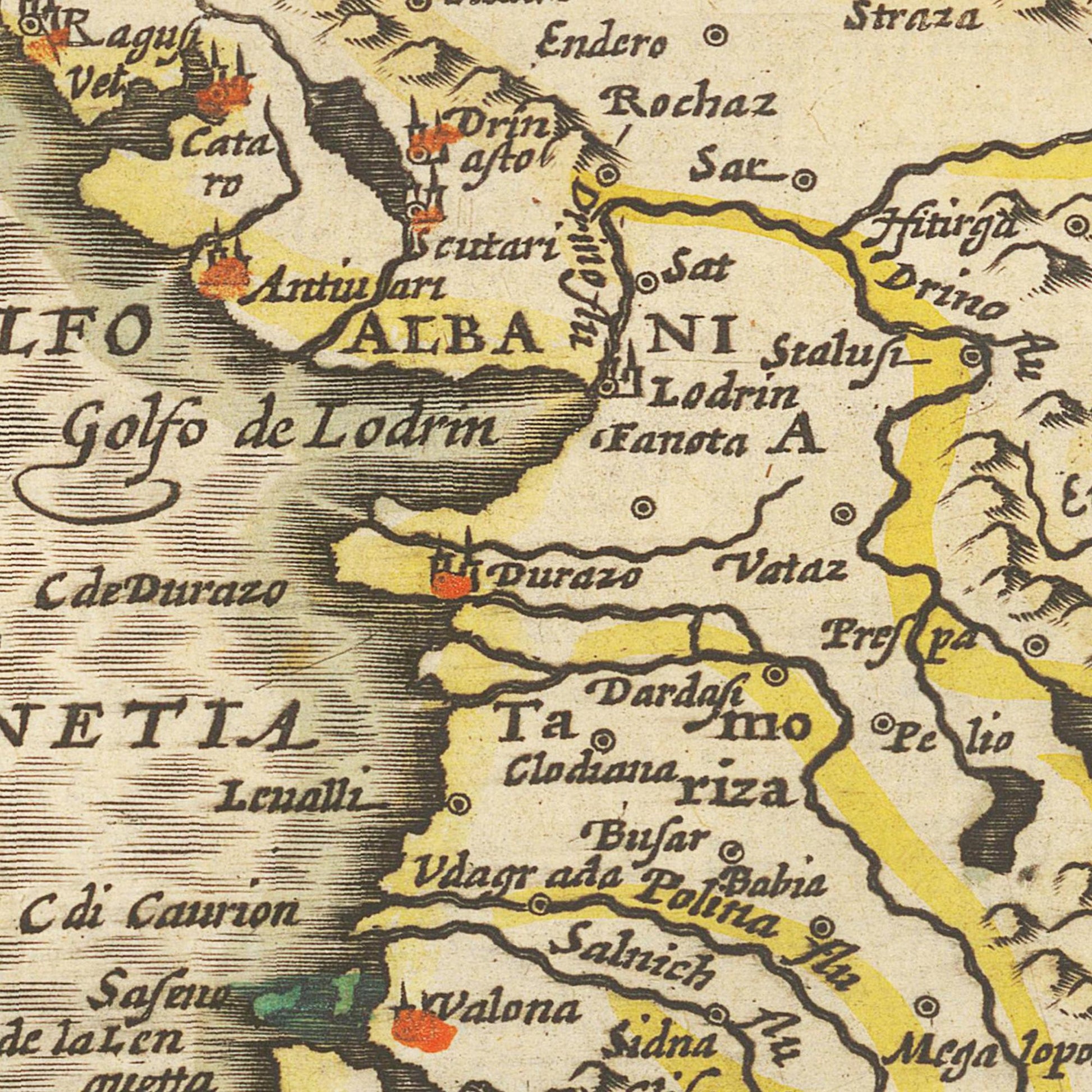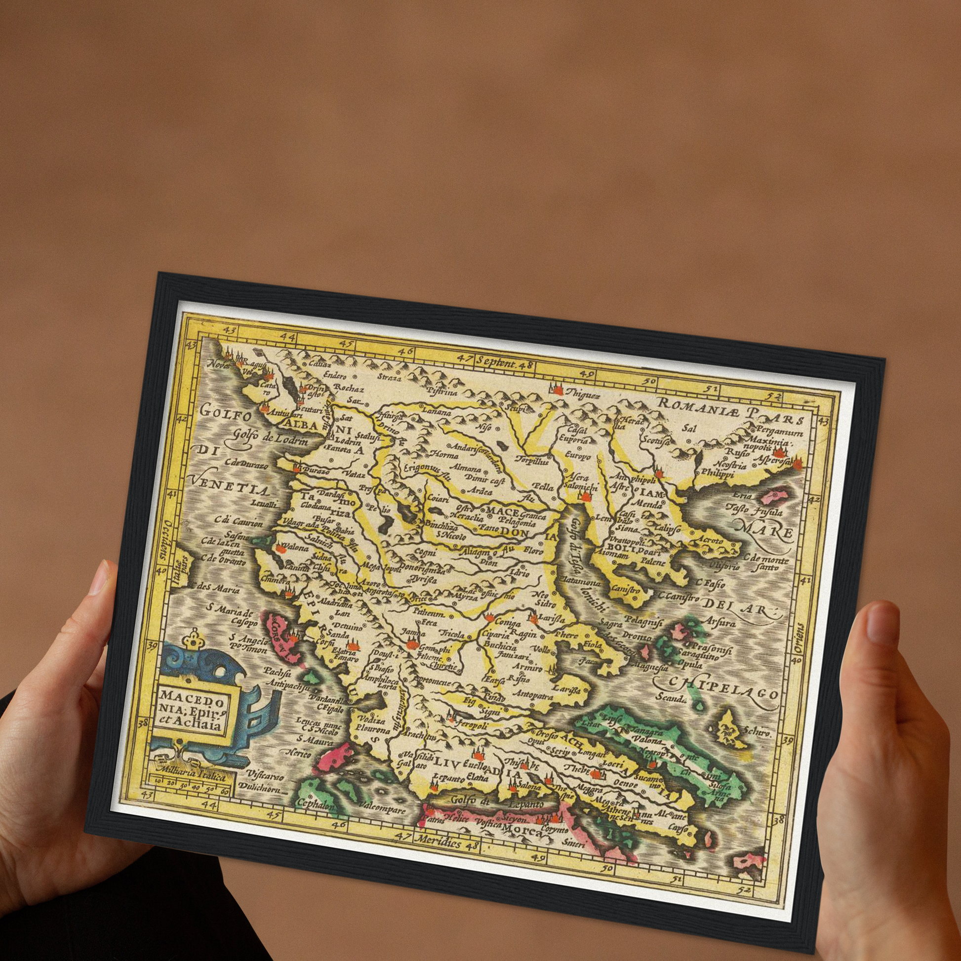 Tauchen Sie in die historische Welt Mazedoniens um 1609 ein und bereichern Sie Ihre Umgebung mit dieser exquisiten Landkarte.