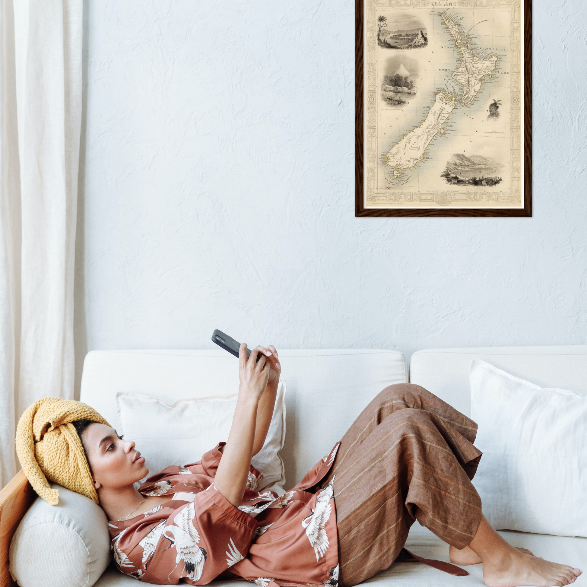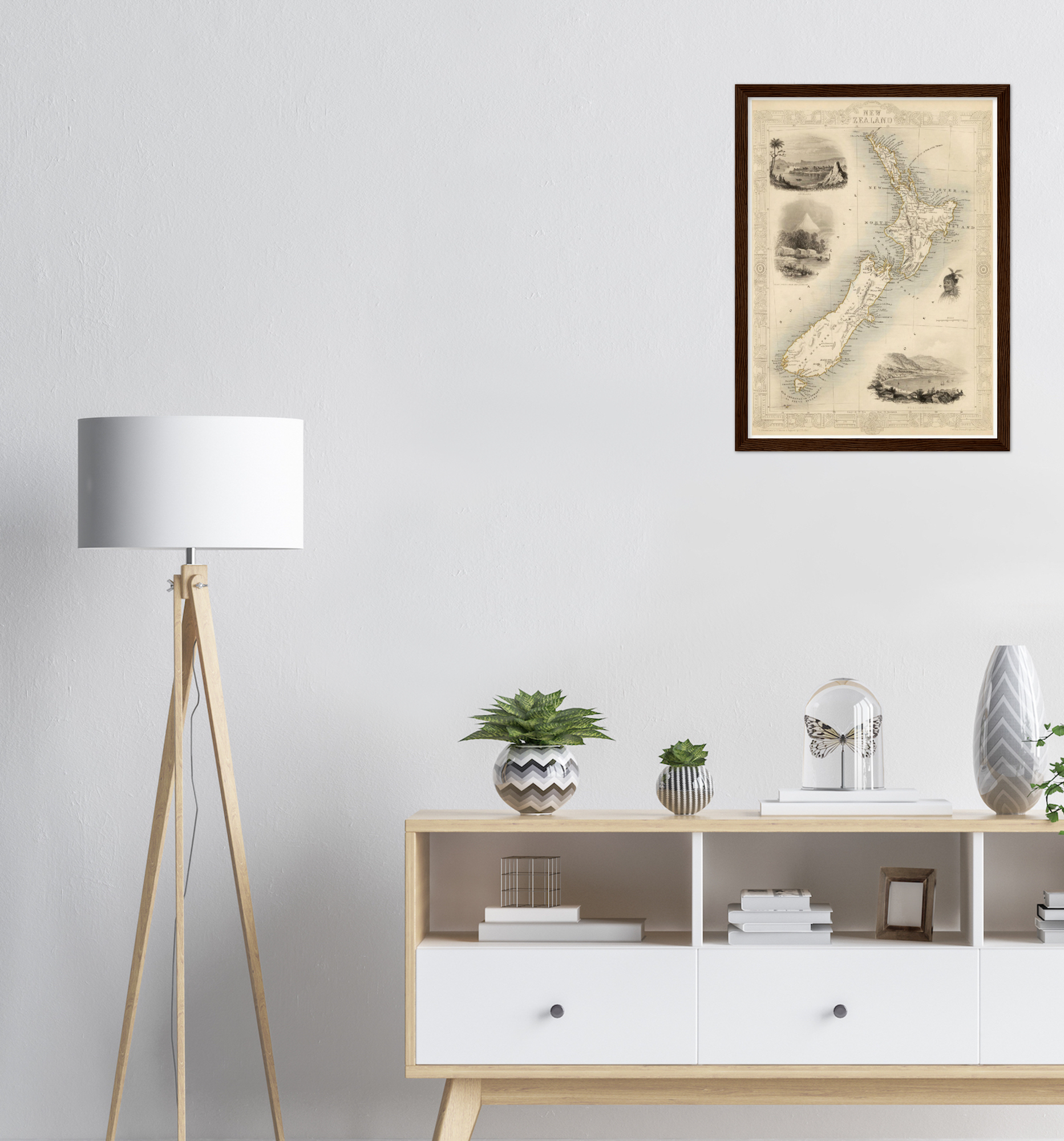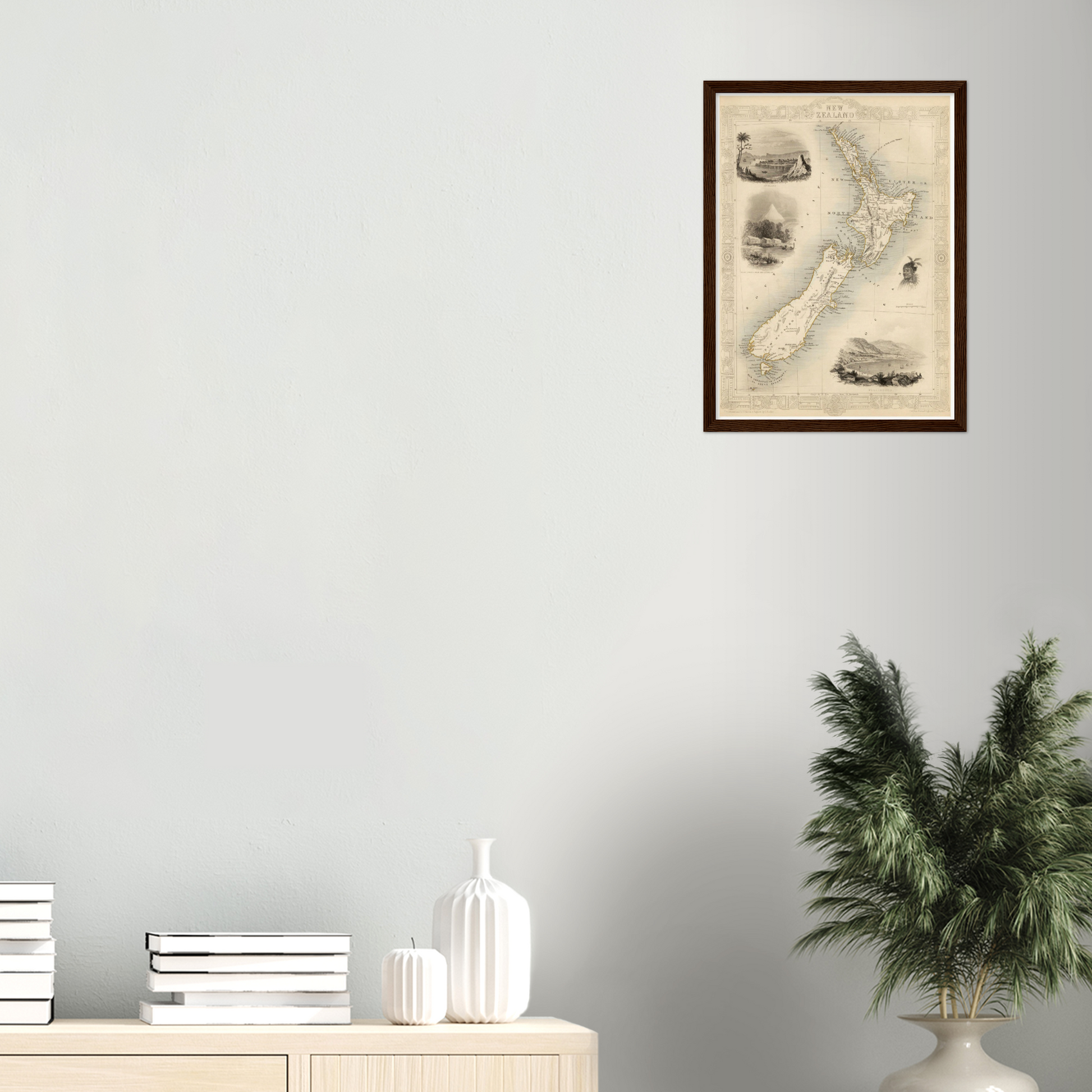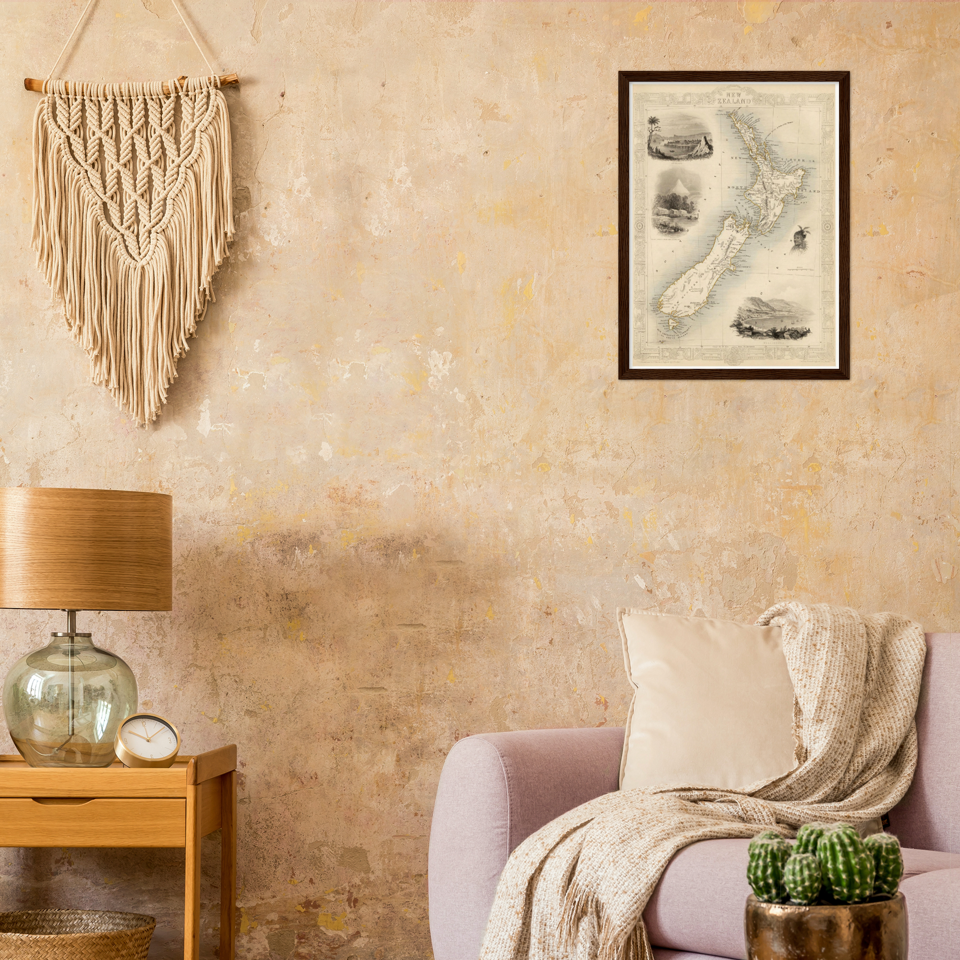 Entdecken Sie die Schönheit Neuseelands im Jahr 1850, eingefangen in einer kunstvollen Nachbildung dieser historischen Landkarte.