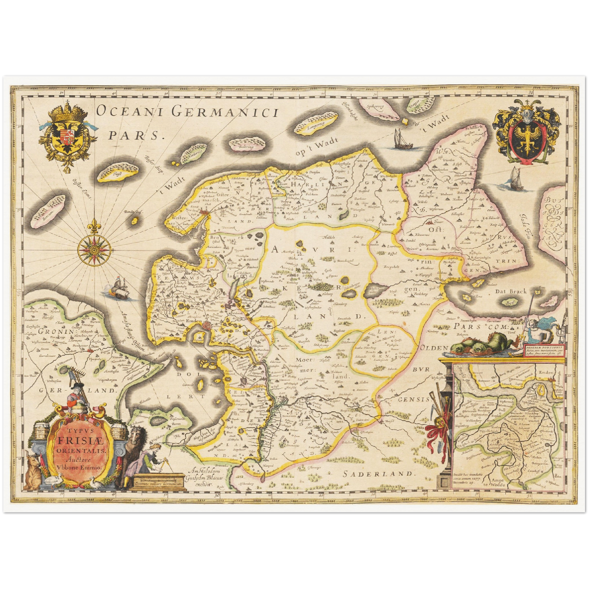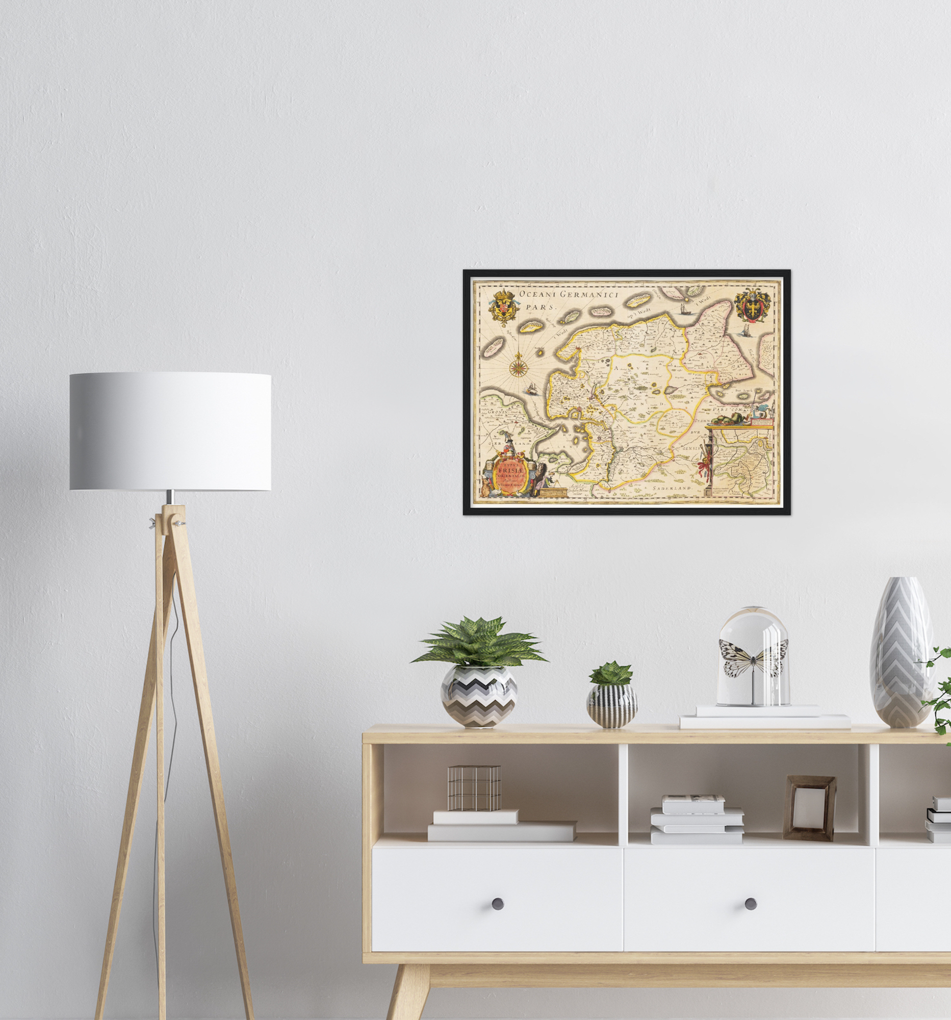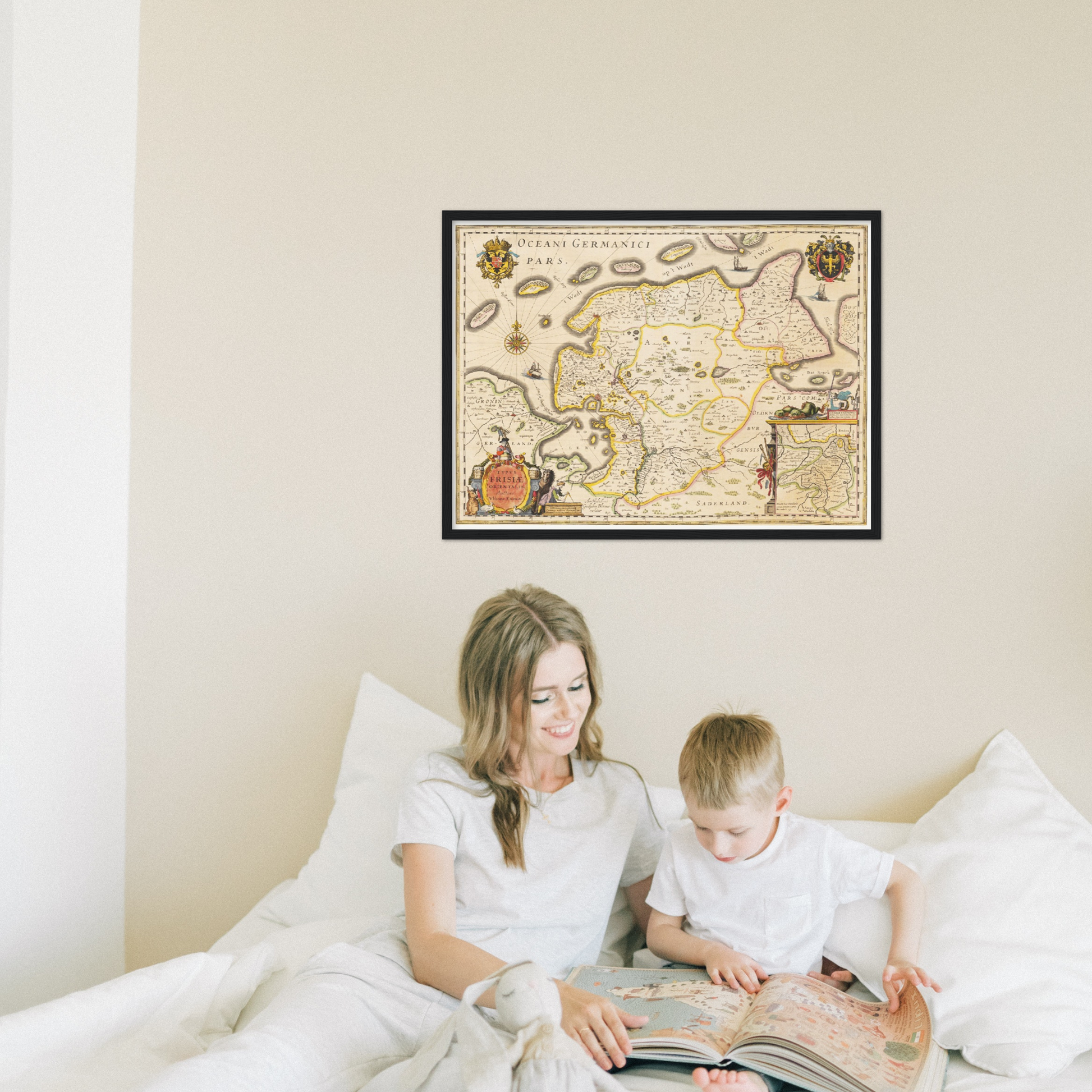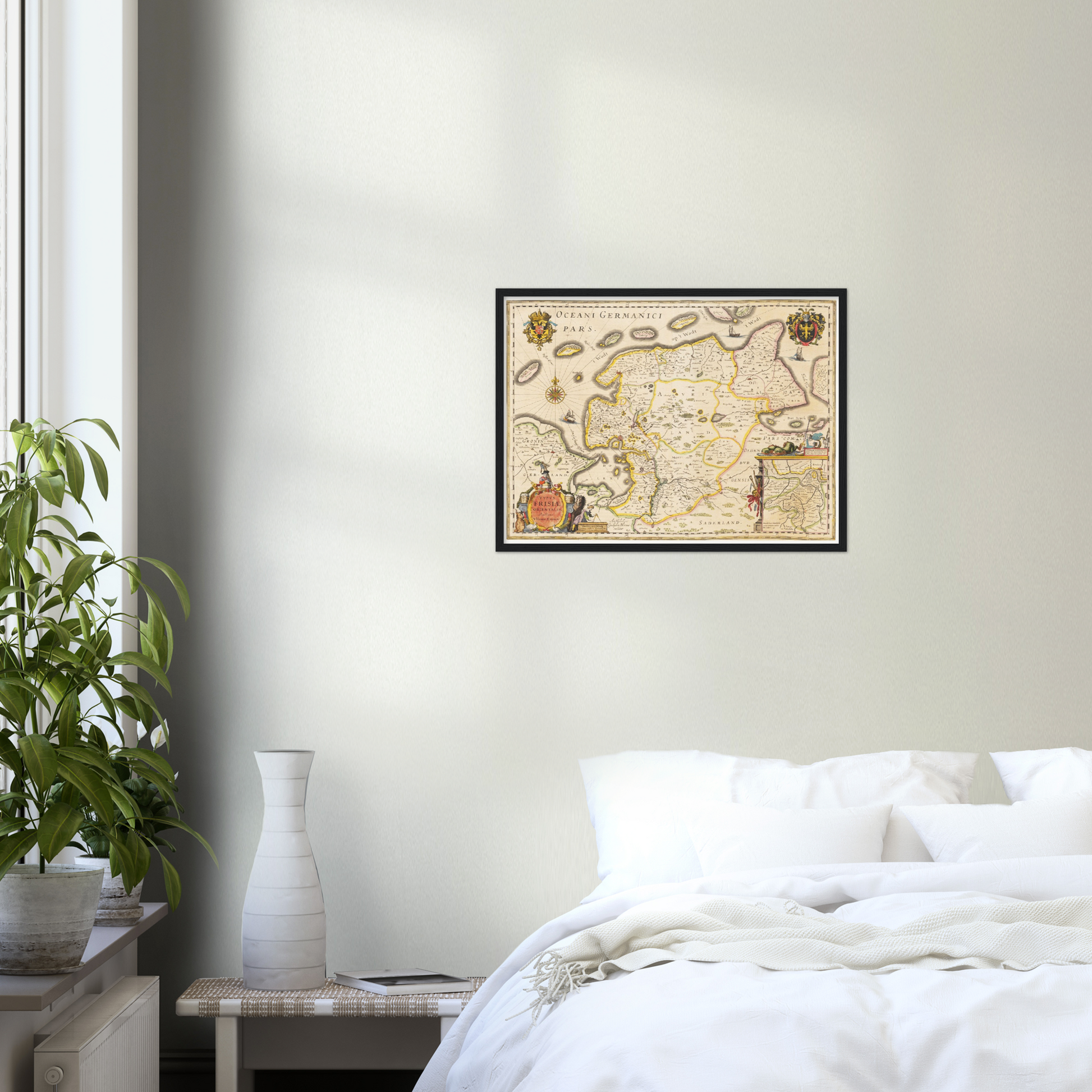 Unsere Nachdrucke entstehen in Archivqualität auf feinstem, mattem Papier (250 g/m²), das jedem Raum eine eindrucksvolle Note verleiht. Die hochauflösende Digitalisierung und farbgetreue Rekonstruktion garantieren, dass du ein Stück Geschichte in unvergleichlicher Schärfe und Brillanz erlebst. Jeder Druck wird auf Bestellung in Deutschland gefertigt und ist in 3 erlesenen Größen erhältlich: 40x30 - 60x45 cm. Zum Schutz wird jede Karte in einer stabilen Verpackung versandt. Optional kannst du zwischen natürlichen, dunkelbraunen oder schwarzen Holzrahmen sowie einem eleganten schwarzen Metallrahmen wählen, der mit bruchsicherem Plexiglas ausgestattet ist.