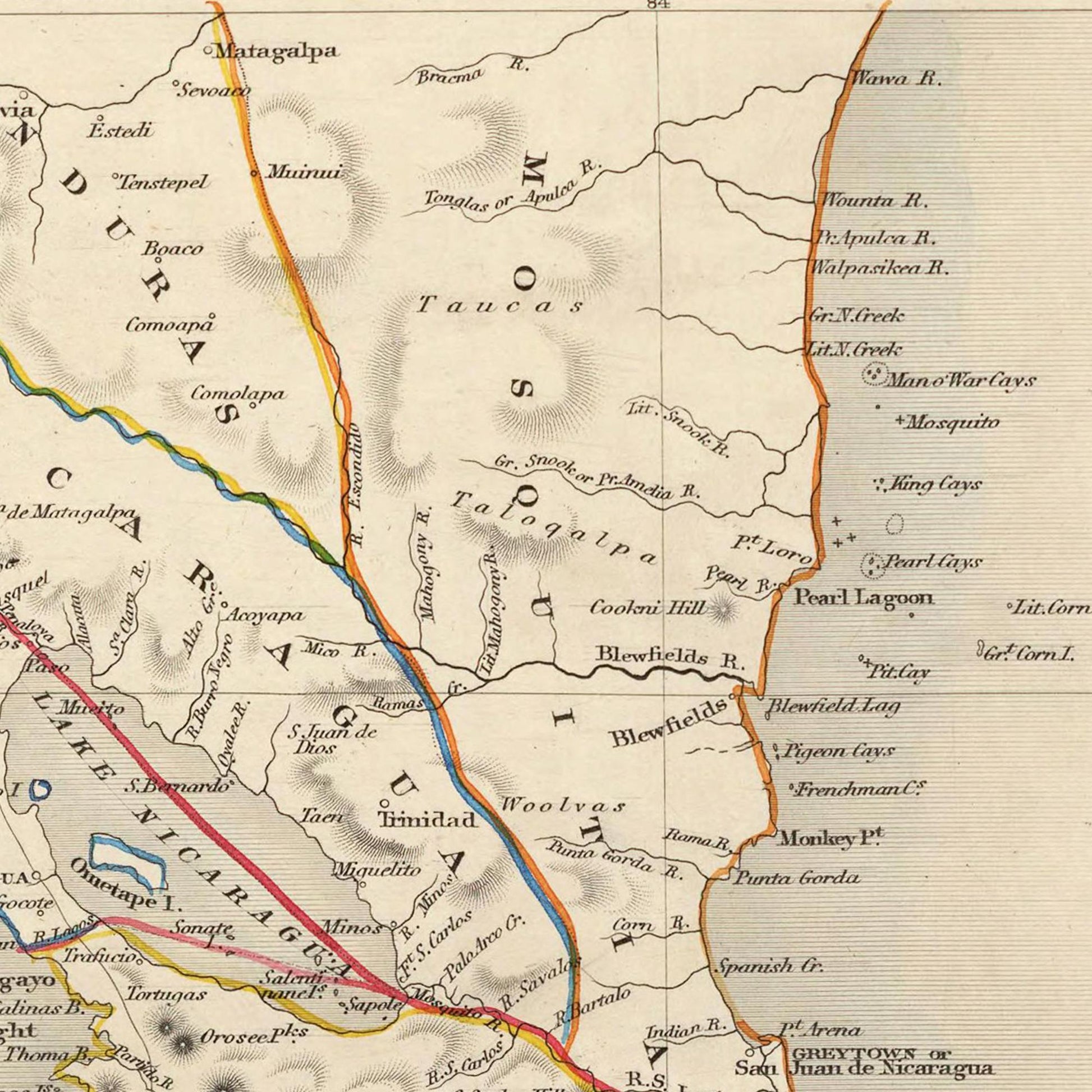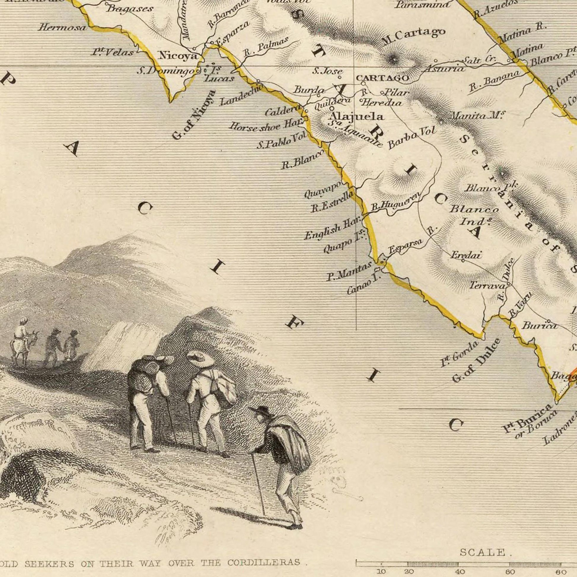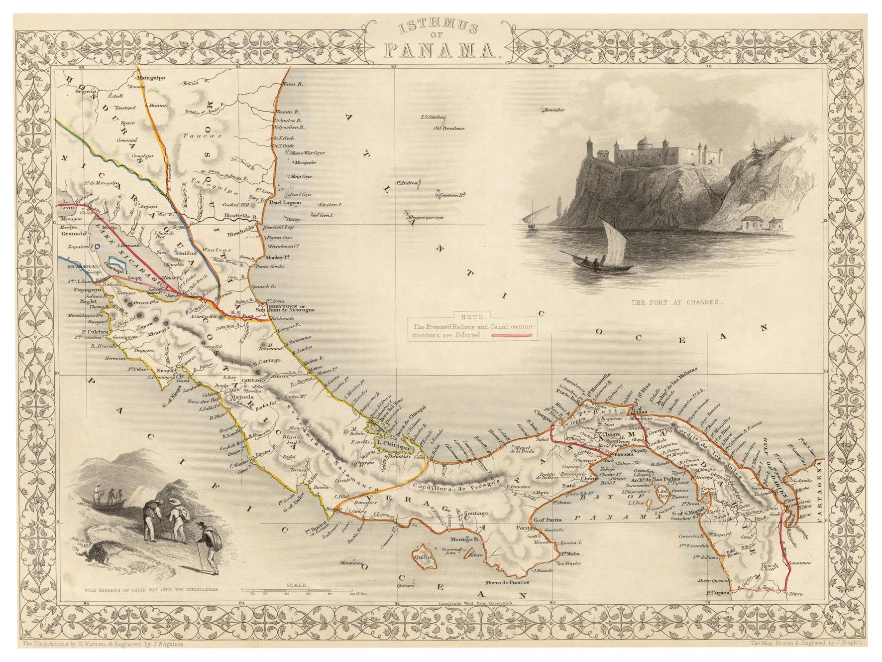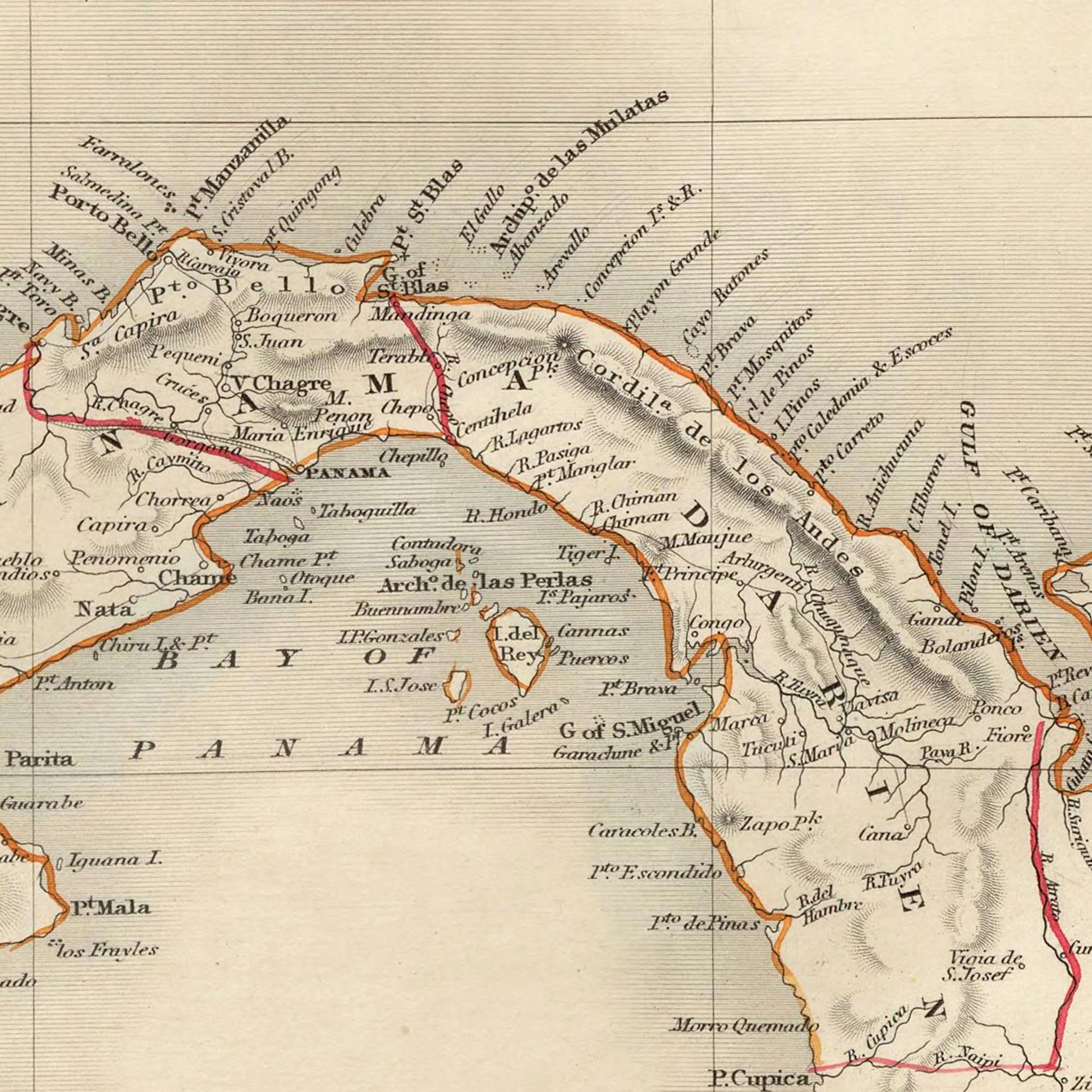 Erleben Sie die Geschichte Panamas in der Mitte des 19. Jahrhunderts mit dieser detailreichen und kunstvollen Nachbildung der Historischen Landkarte Panama um 1850.