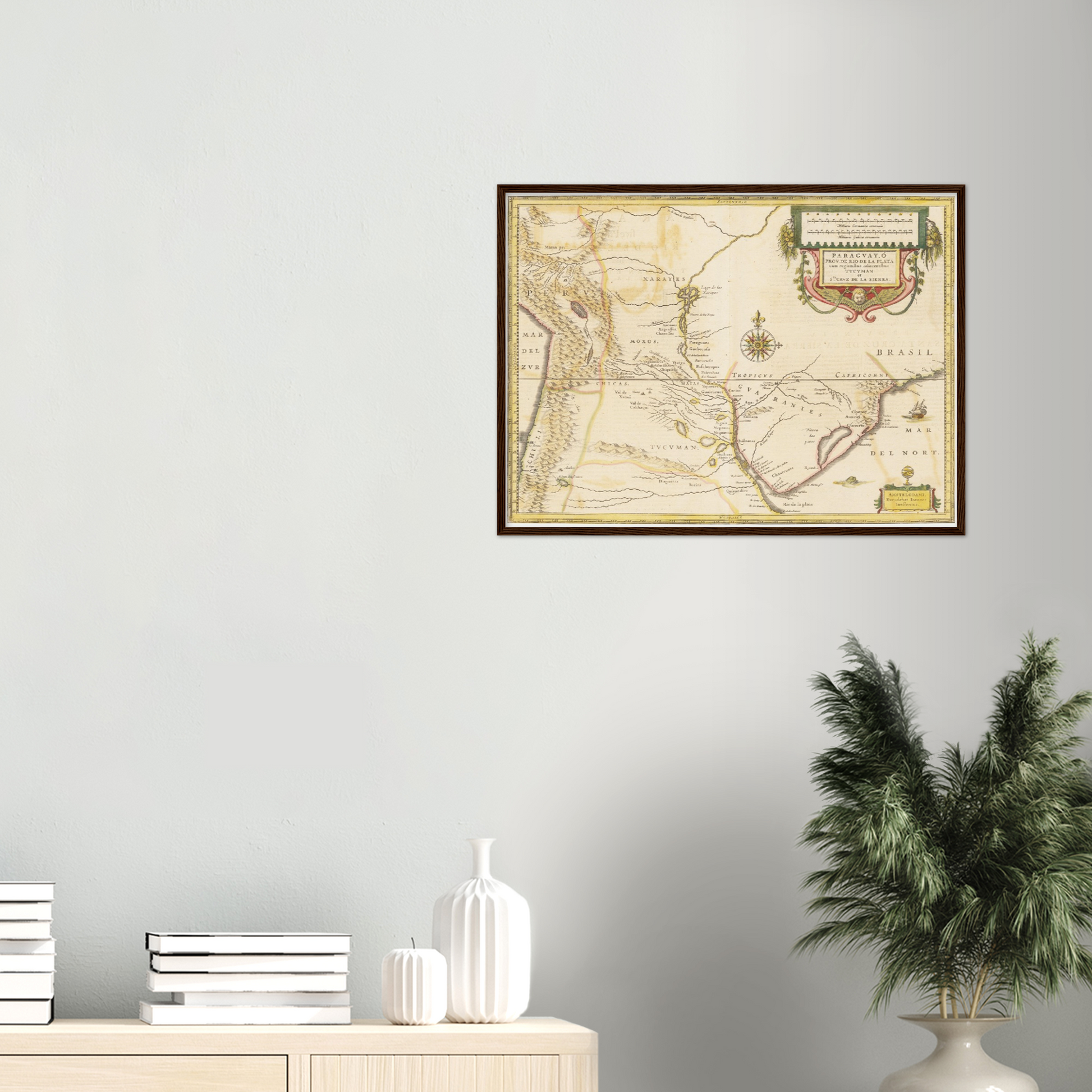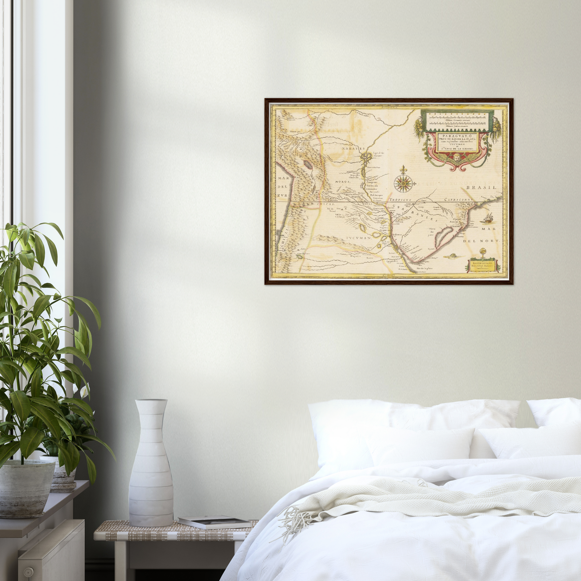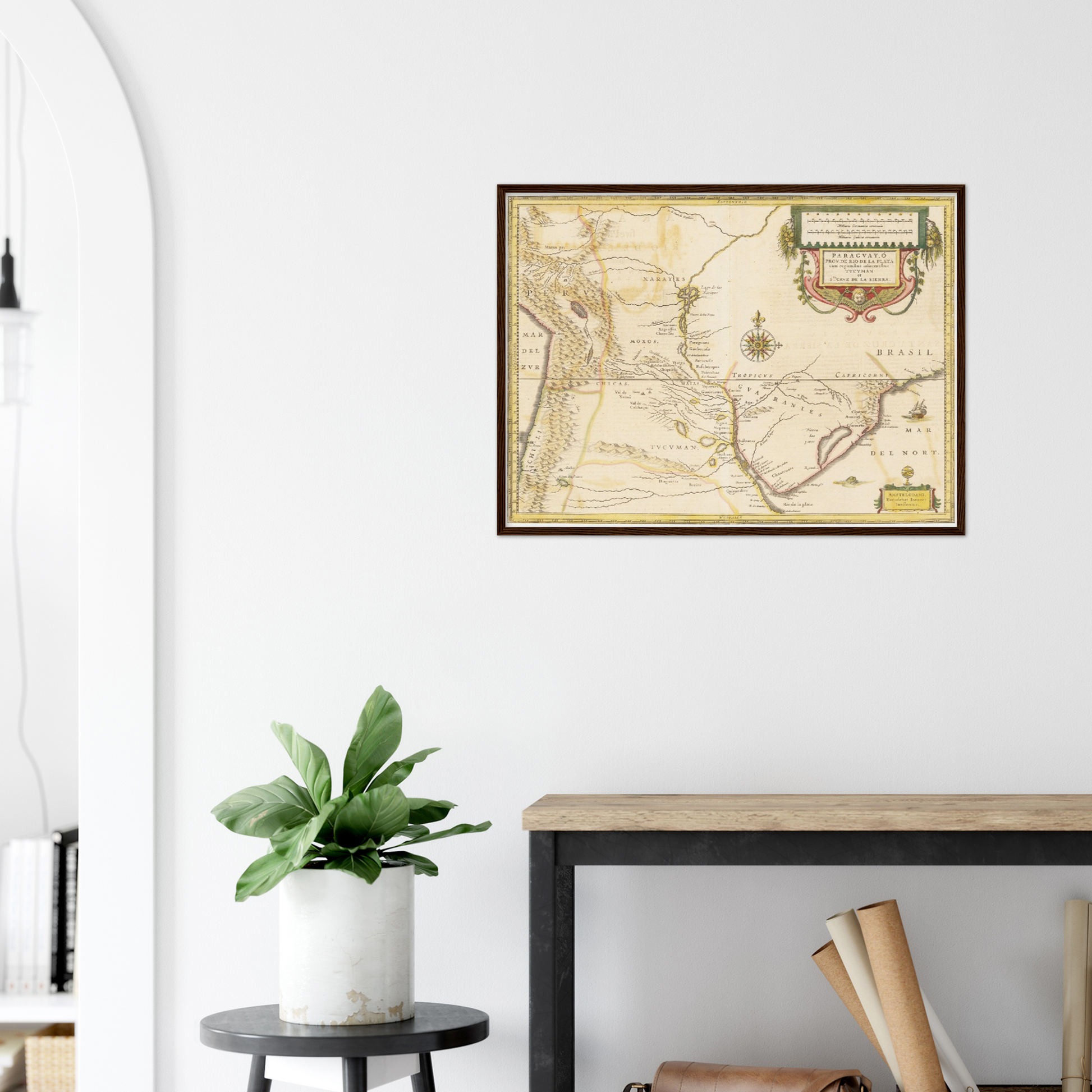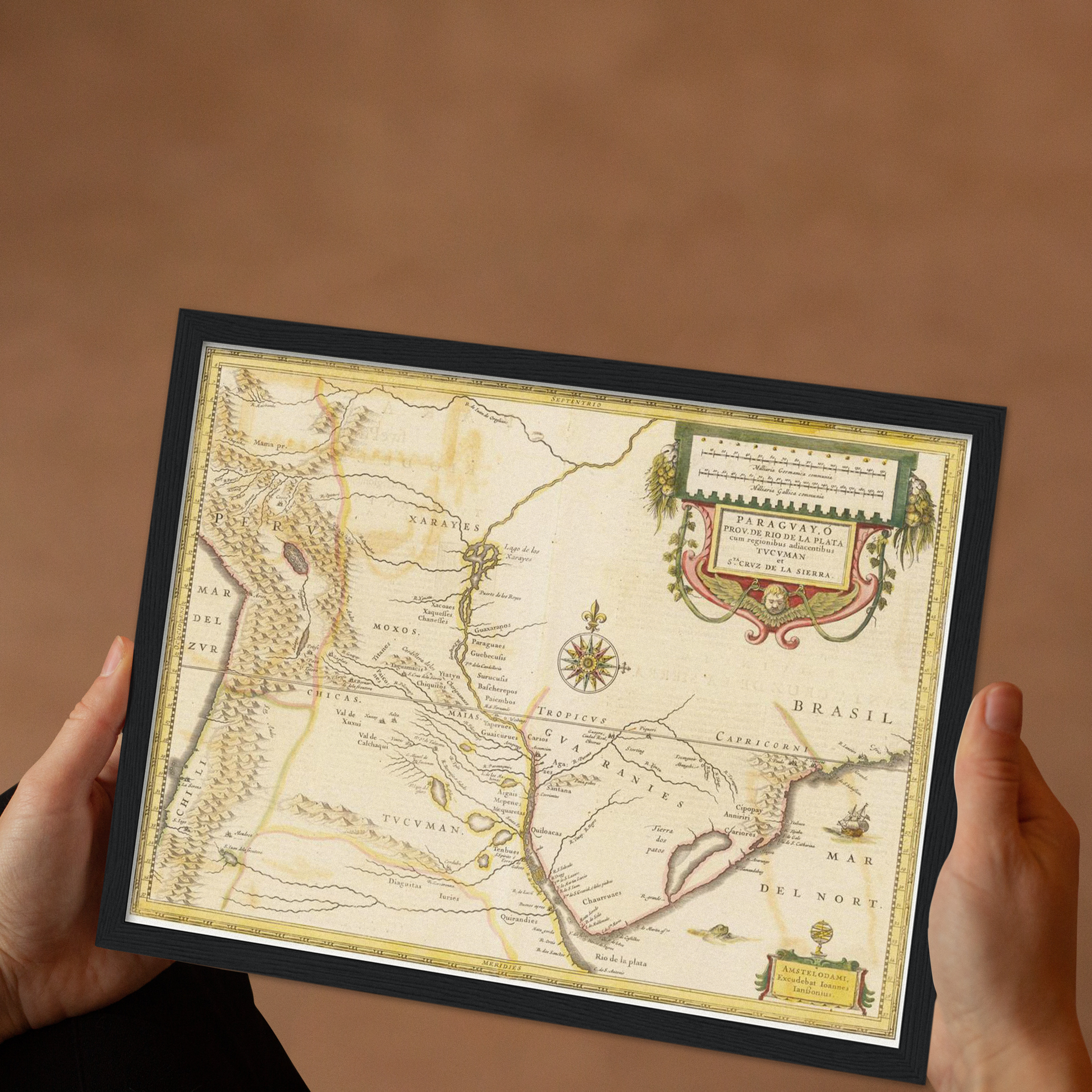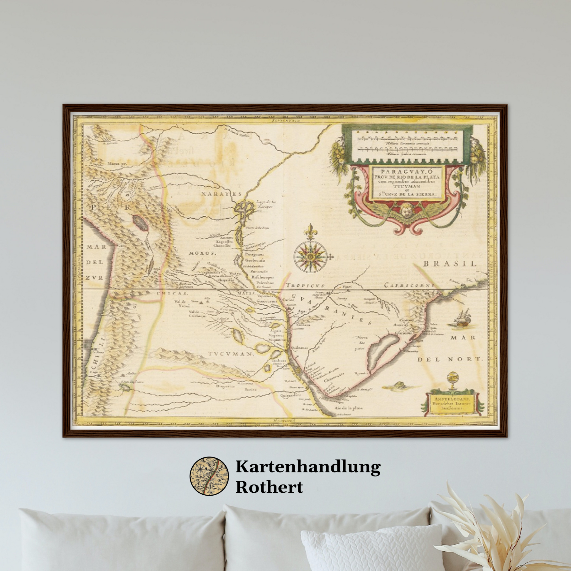 Tauchen Sie ein in das faszinierende Erbe Paraguays mit dieser außergewöhnlichen Landkarte aus dem Jahr 1638. Eine Zeit, in der Entdecker und Kartographen die Konturen der Welt neu zeichneten und unbekannte Territorien kartographierten. Diese Karte enthüllt nicht nur die geografischen Feinheiten des Landes, sondern auch die künstlerische Meisterschaft der Ära. Fein geätzte Linien und klare Gravurtechniken vermitteln eine Ästhetik, die zur Bewunderung einlädt. Ideal als dekoratives Element, das Geschichten von frühen Entdeckern und exotischen Landschaften in Ihr Zuhause bringt.