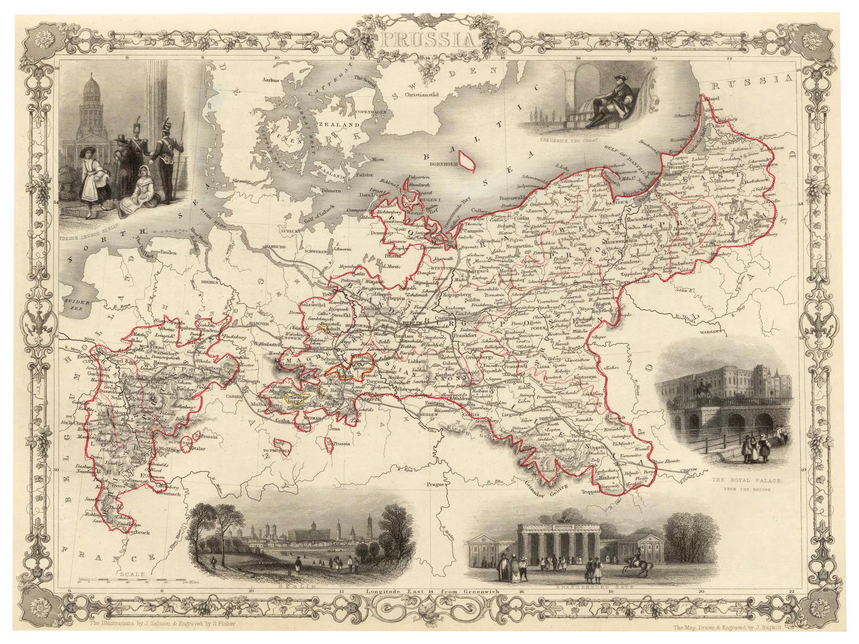 Eine eindrucksvolle historische Landkarte von Preußen aus dem Jahr 1850, die detailreiche Einblicke in eine vergangene Epoche bietet.