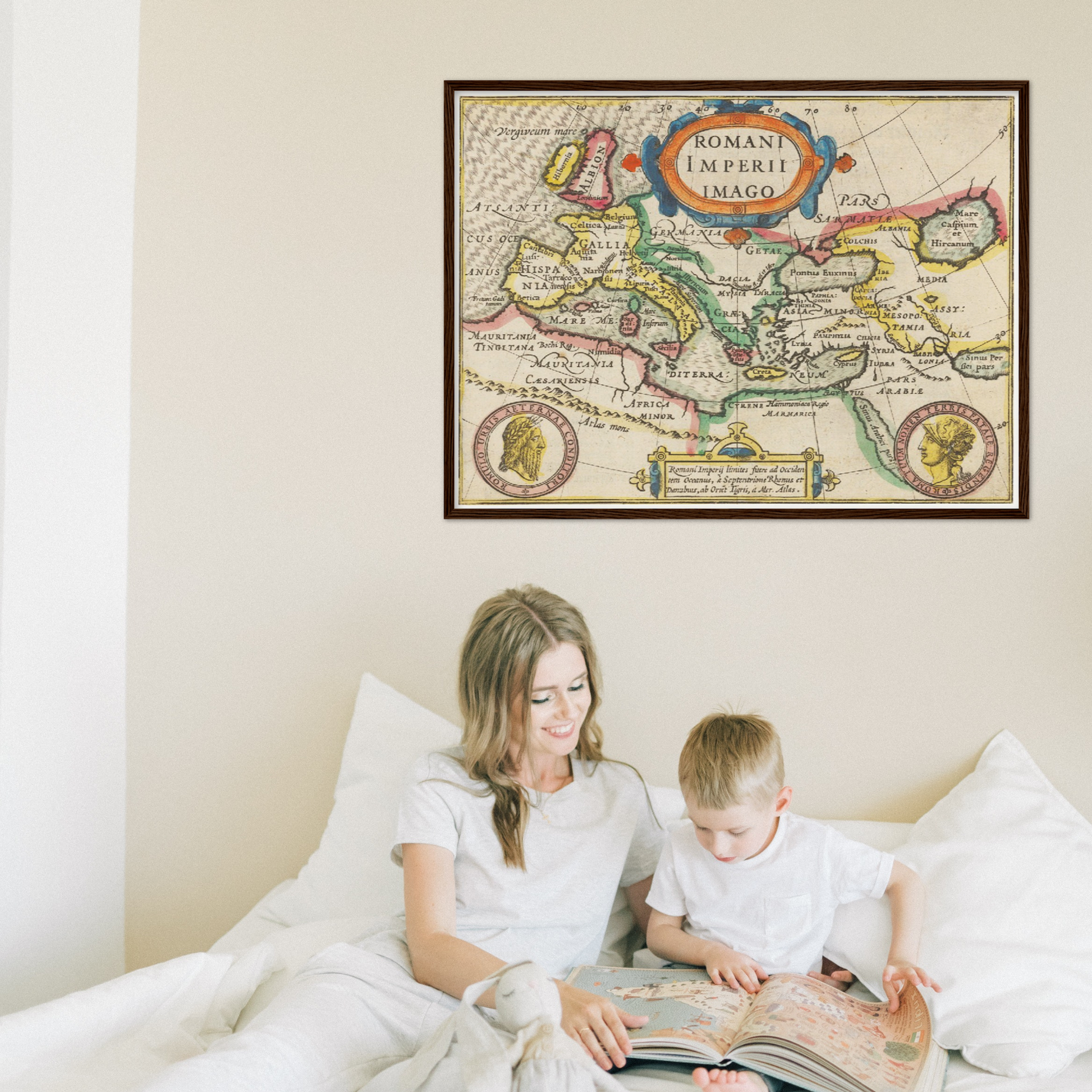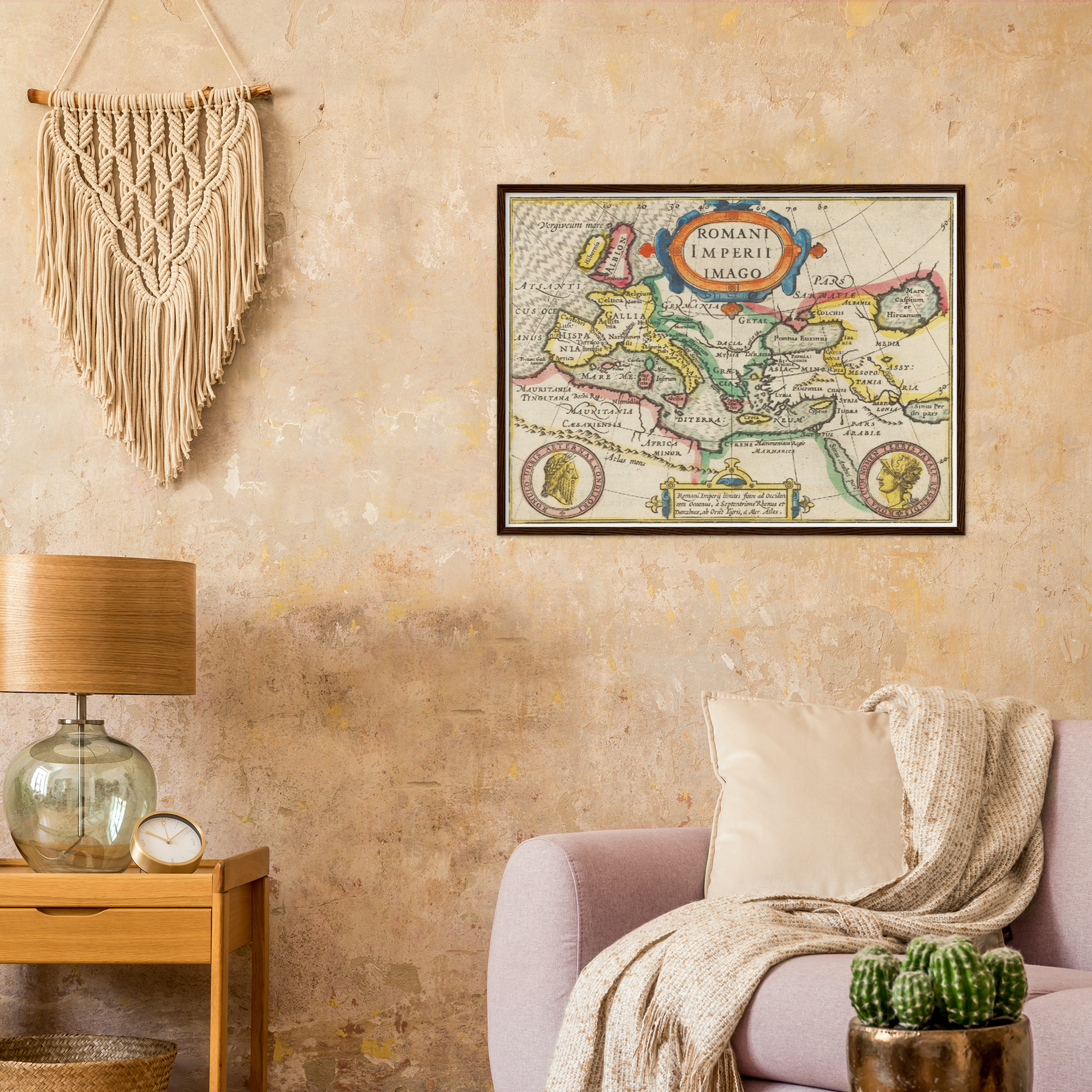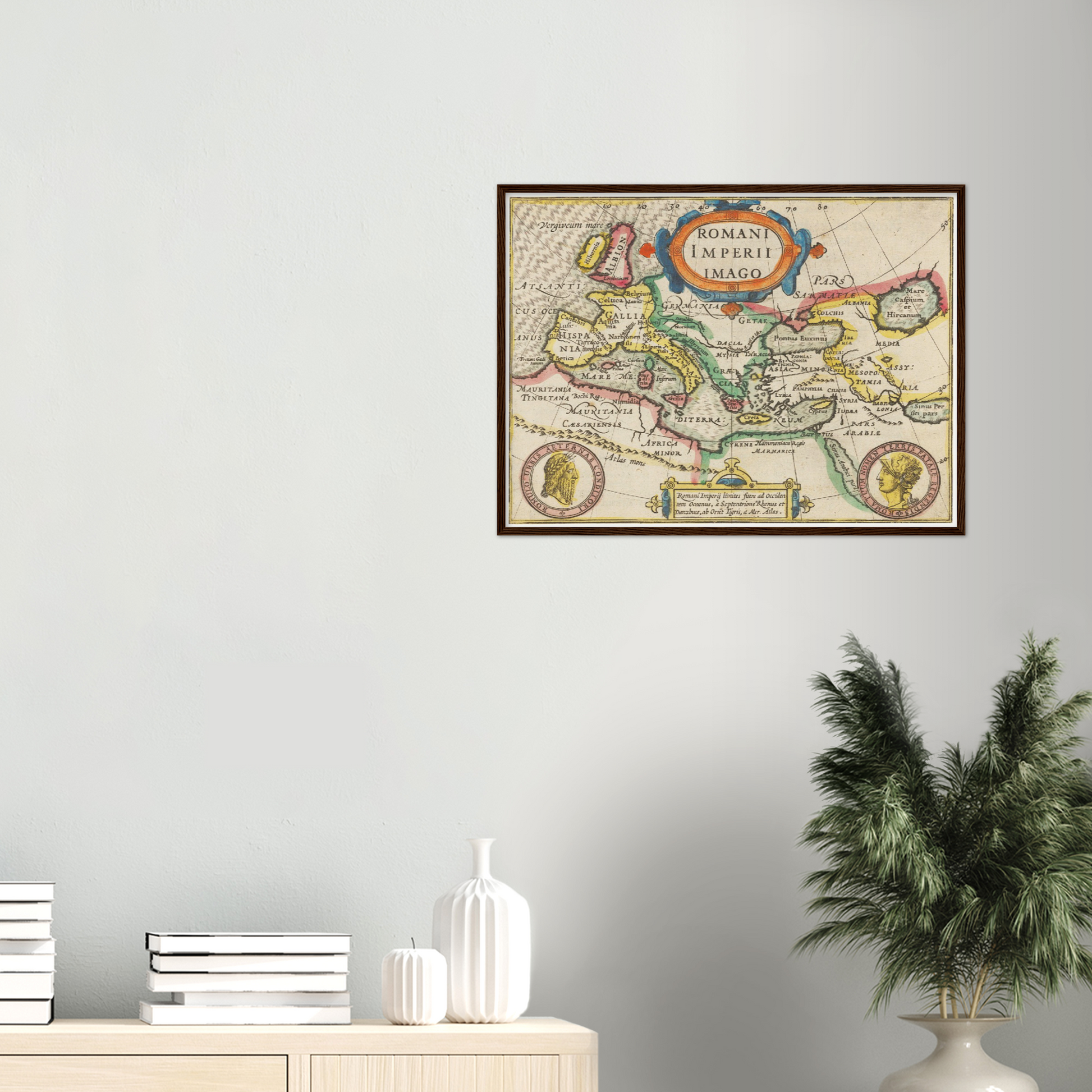 Diese historische Landkarte des Römischen Reiches um 1609 entführt Dich in eine längst vergangene Ära voller Macht und Intrigen – eine perfekte Ergänzung für jeden Liebhaber von Geschichte und Kunst.