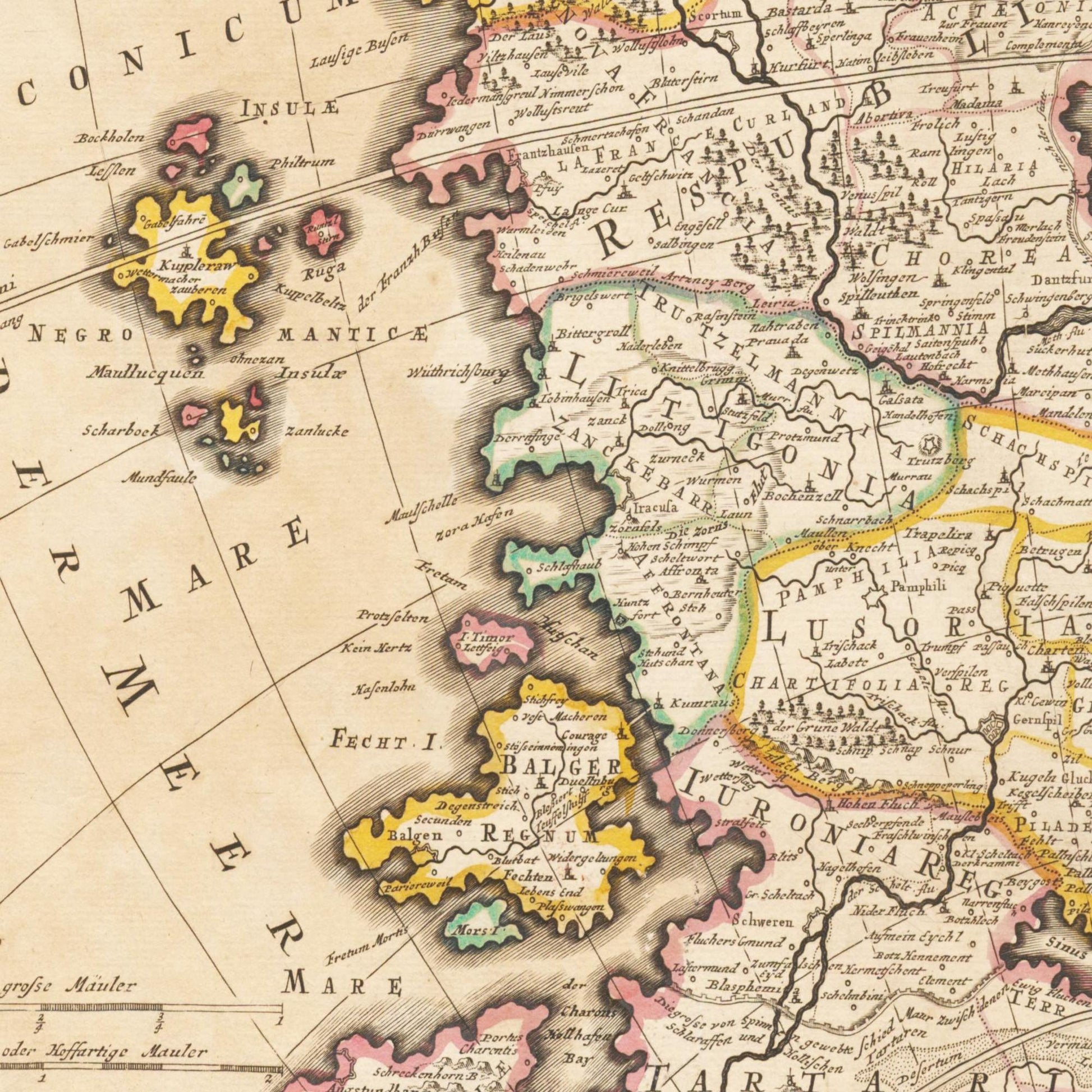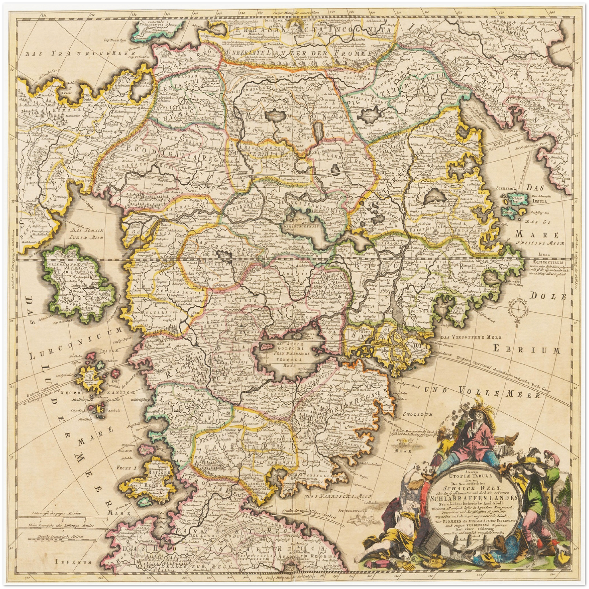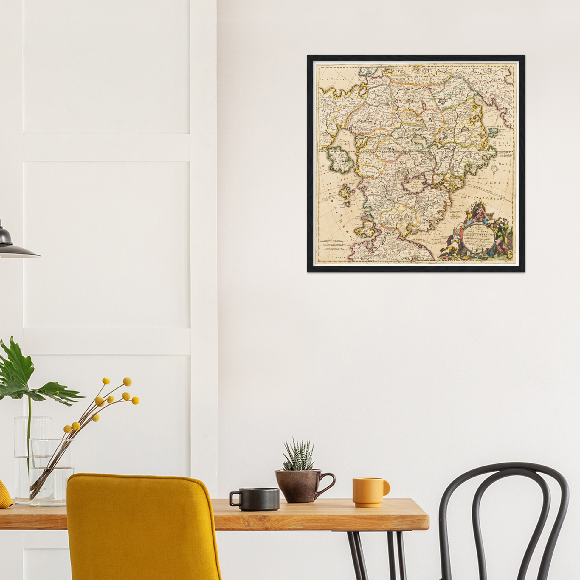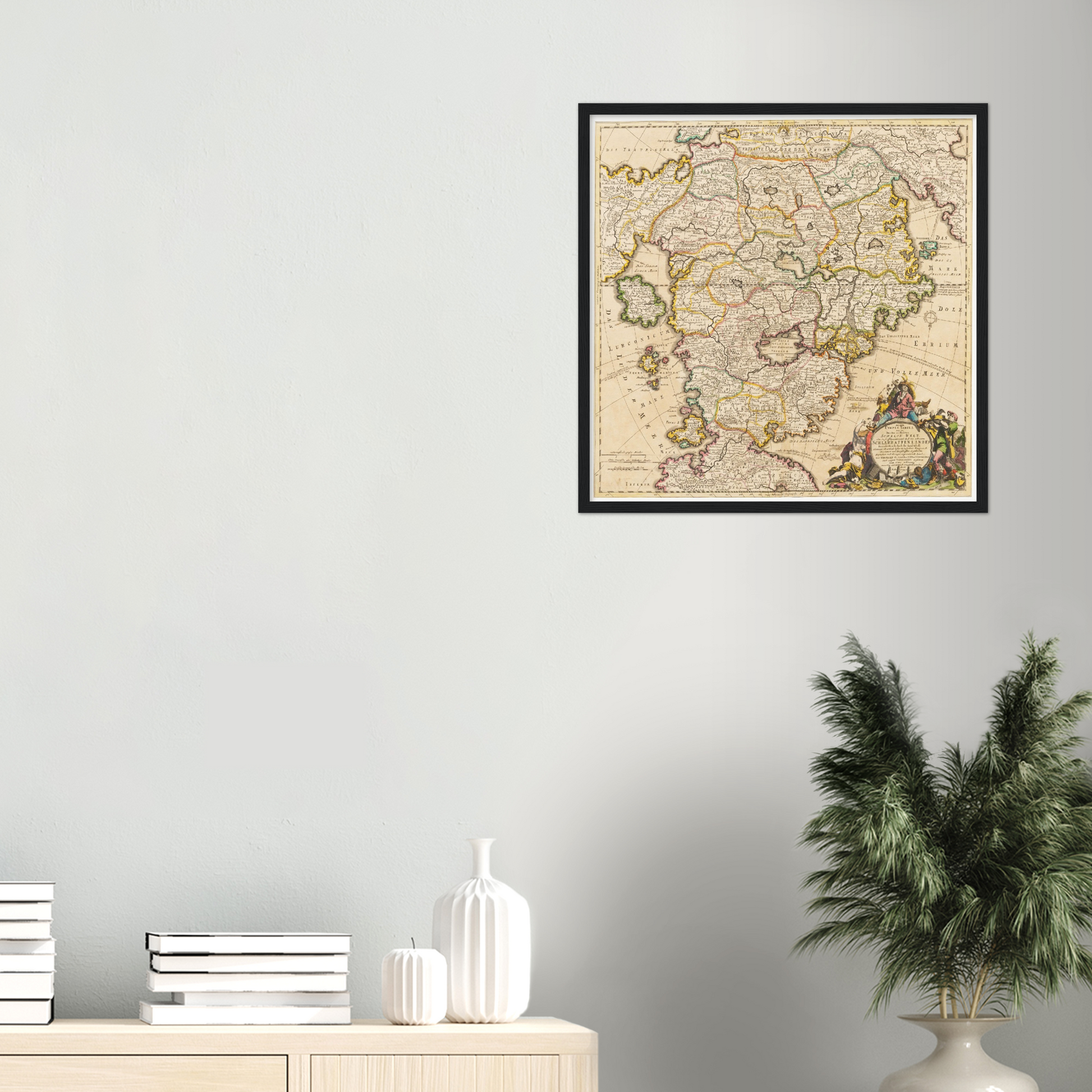 Unsere Nachdrucke entstehen in Archivqualität auf feinstem, mattem Papier (250 g/m²), das jedem Raum eine eindrucksvolle Note verleiht. Die hochauflösende Digitalisierung und farbgetreue Rekonstruktion garantieren, dass du ein Stück Geschichte in unvergleichlicher Schärfe und Brillanz erlebst. Jeder Druck wird auf Bestellung in Deutschland gefertigt und ist in 3 erlesenen Größen erhältlich: 30x30 - 50x50 cm. Zum Schutz wird jede Karte in einer stabilen Verpackung versandt. Optional kannst du zwischen natürlichen, dunkelbraunen oder schwarzen Holzrahmen sowie einem eleganten schwarzen Metallrahmen wählen, der mit bruchsicherem Plexiglas ausgestattet ist.