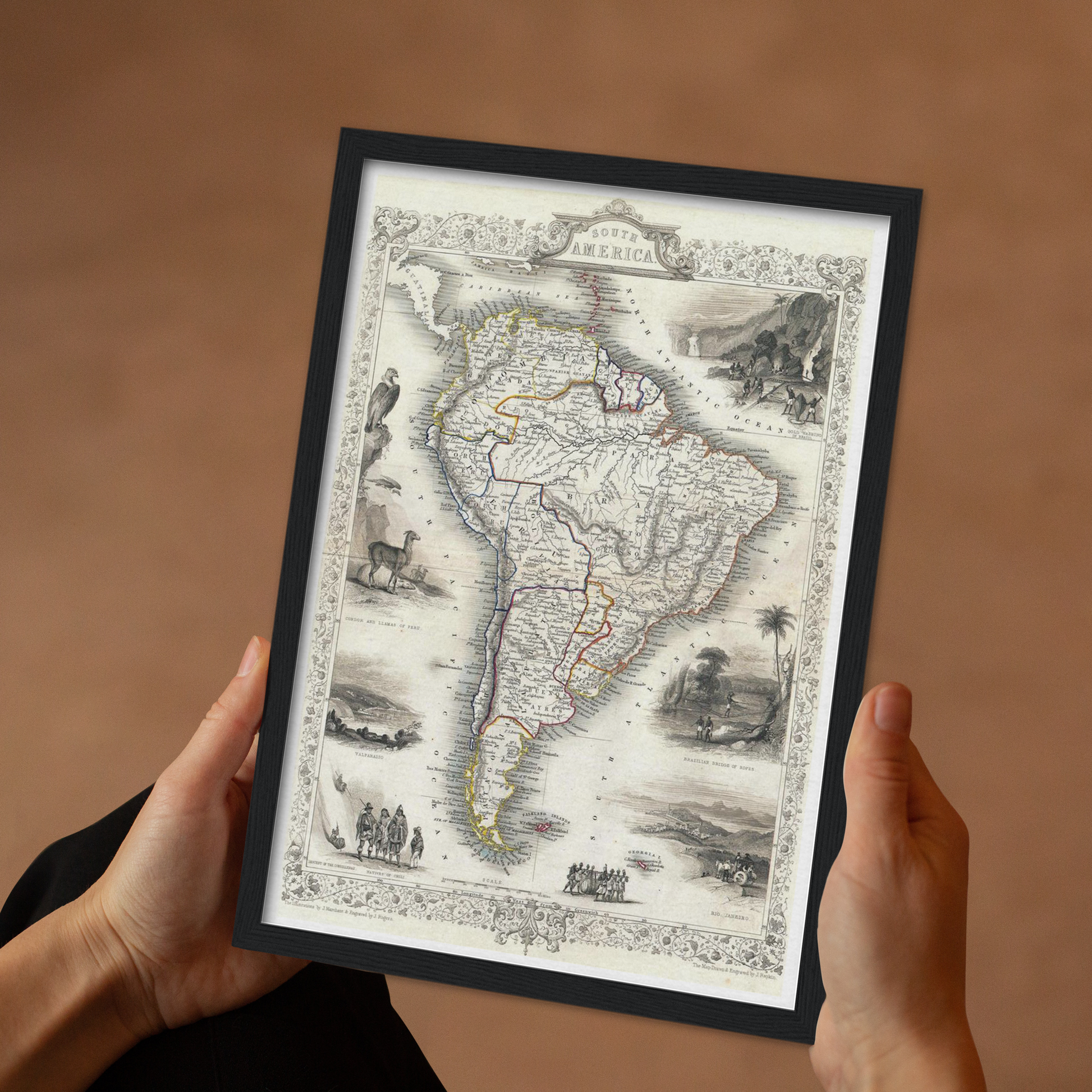 Viele unserer Kunden wählen diese Karte als Geschenk für jene, die eine besondere Verbindung zu Südamerika haben – sei es durch familiäre Wurzeln oder persönliche Erinnerungen an eine Reise über diesen Kontinent. Diese Karte dient als Brücke zu vergangenen Epochen, die uns daran erinnern, woher wir kamen. Sie wird somit nicht nur zu einem ästhetischen Highlight, sondern auch zu einem wertvollen Erbstück, das Generationen verbindet. Lassen Sie sich und Ihre Liebsten von den Geschichten verzaubern, die in den filigranen Details dieser Karte versteckt sind. Ein wunderbar persönliches Geschenk für jeden Anlass.