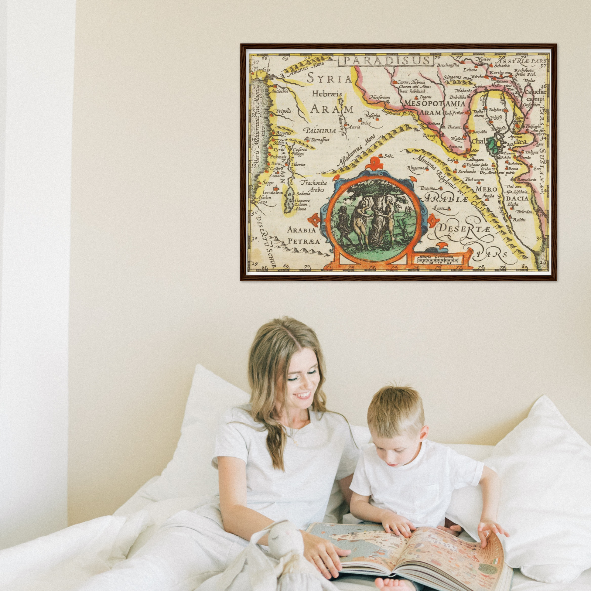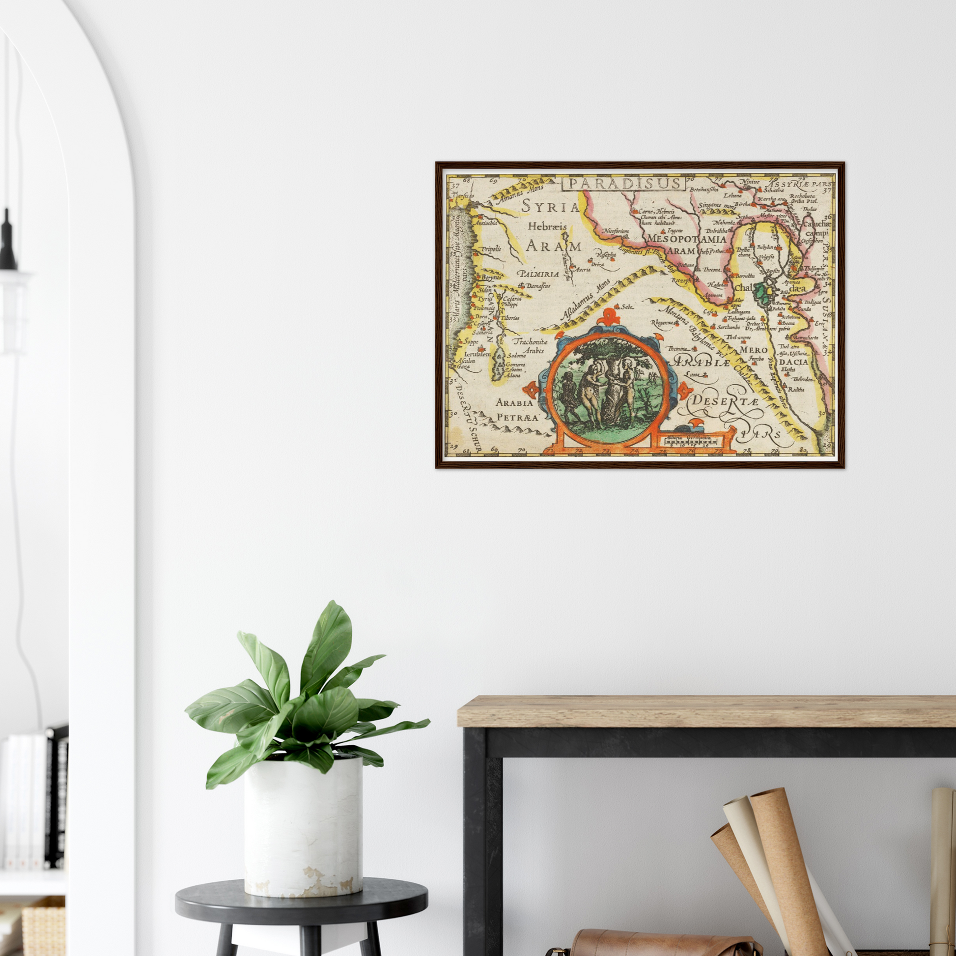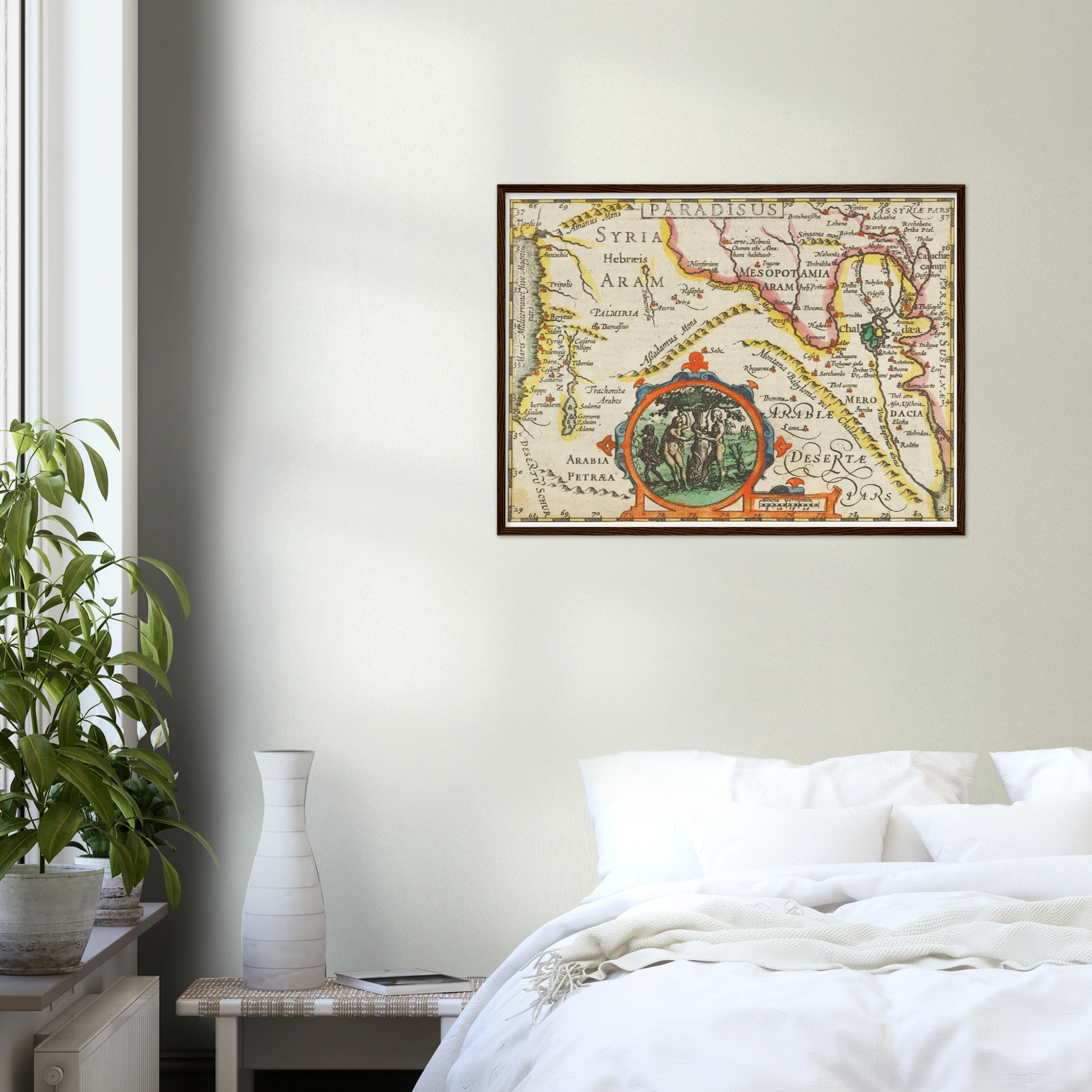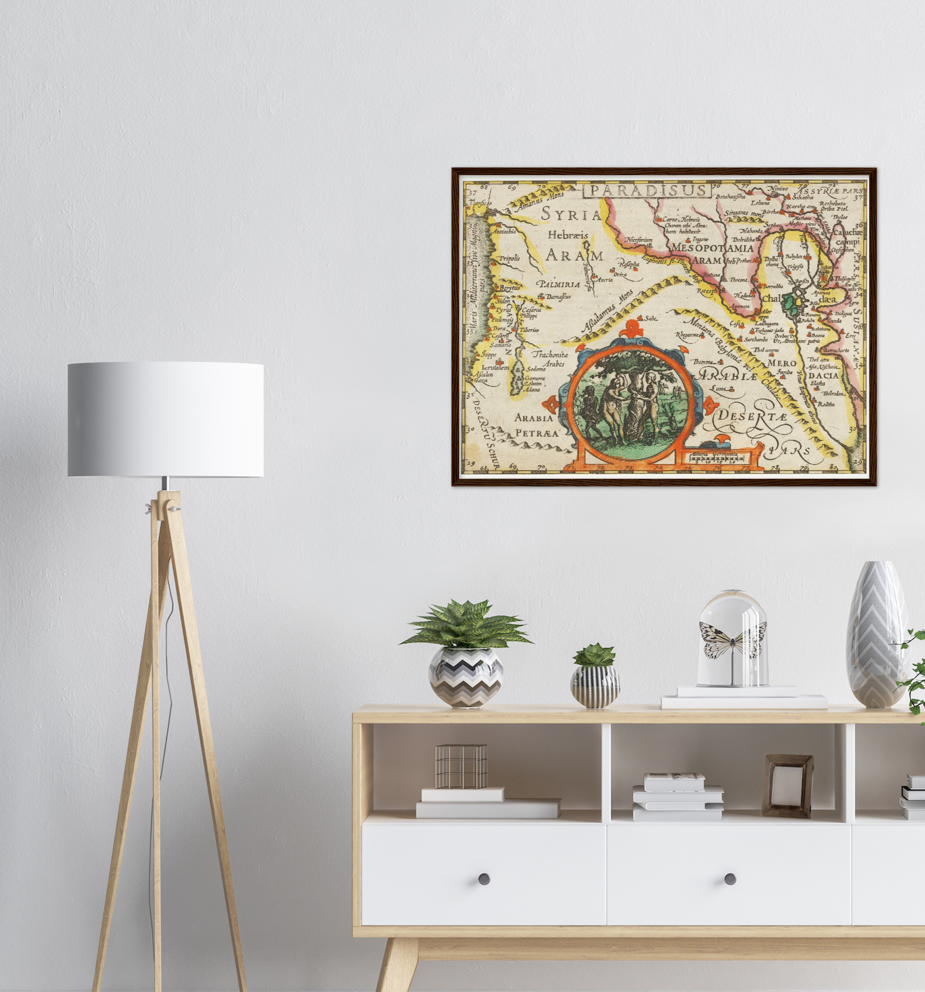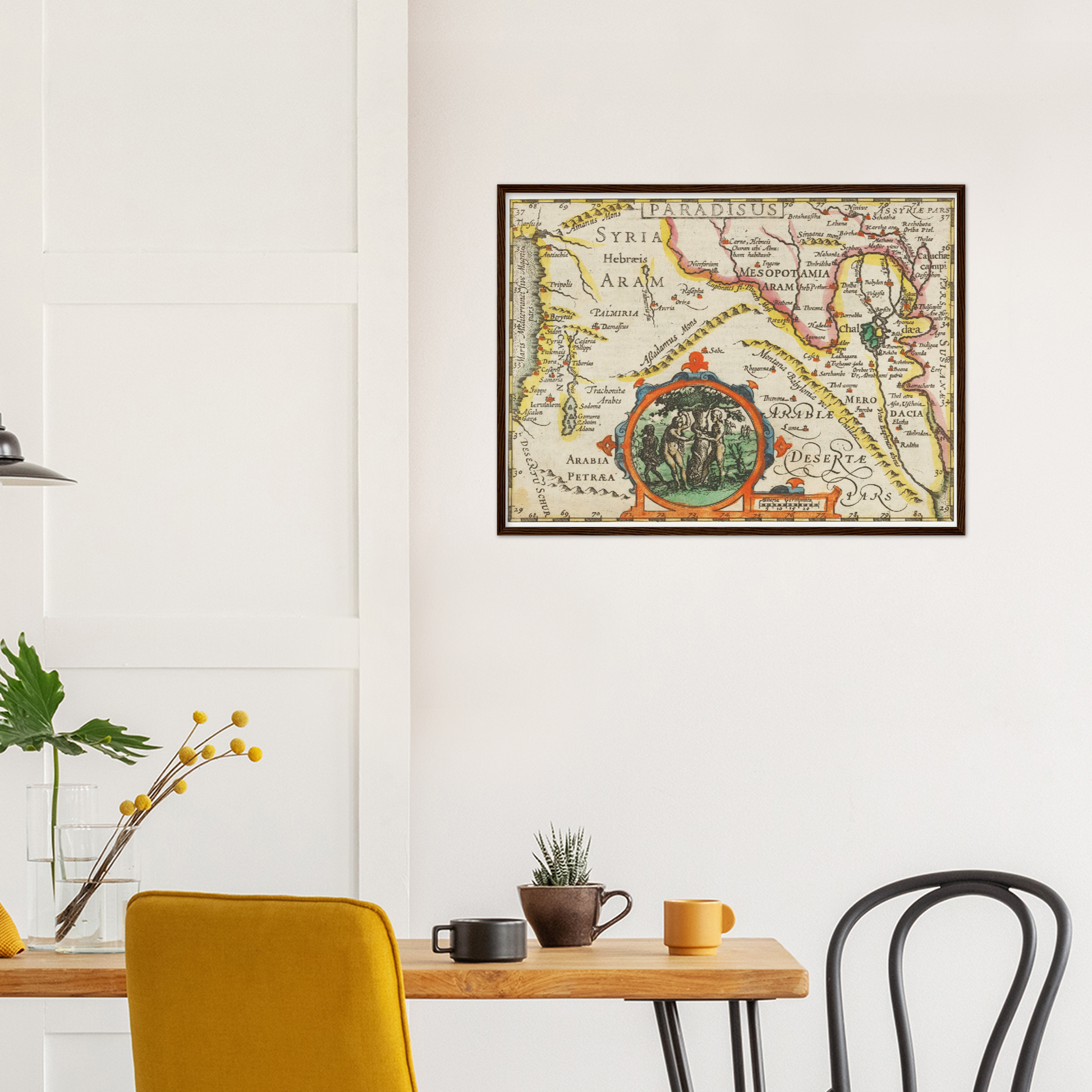 Begeben Sie sich auf eine Reise in die Vergangenheit, in eine Zeit, in der die Kartenkunst noch unerforschte Details enthüllte und Neugierde weckte. Diese Historische Landkarte von Syrien um 1609 öffnet ein Fenster in das frühe 17. Jahrhundert, als die Welt noch voller Geheimnisse war und jeder Strich auf dem Papier eine Geschichte zu erzählen hatte. Die feinen Gravuren und meisterlichen Linienführungen der Karte laden dazu ein, die Authentizität und Schönheit einer längst vergangenen Welt zu entdecken. Auf hochwertigem, mattem Papier gedruckt, entfaltet die Karte ihre gesamte visuelle Pracht, die Ihre Räumlichkeiten in ein Sammelsurium historischer Eleganz verwandelt.