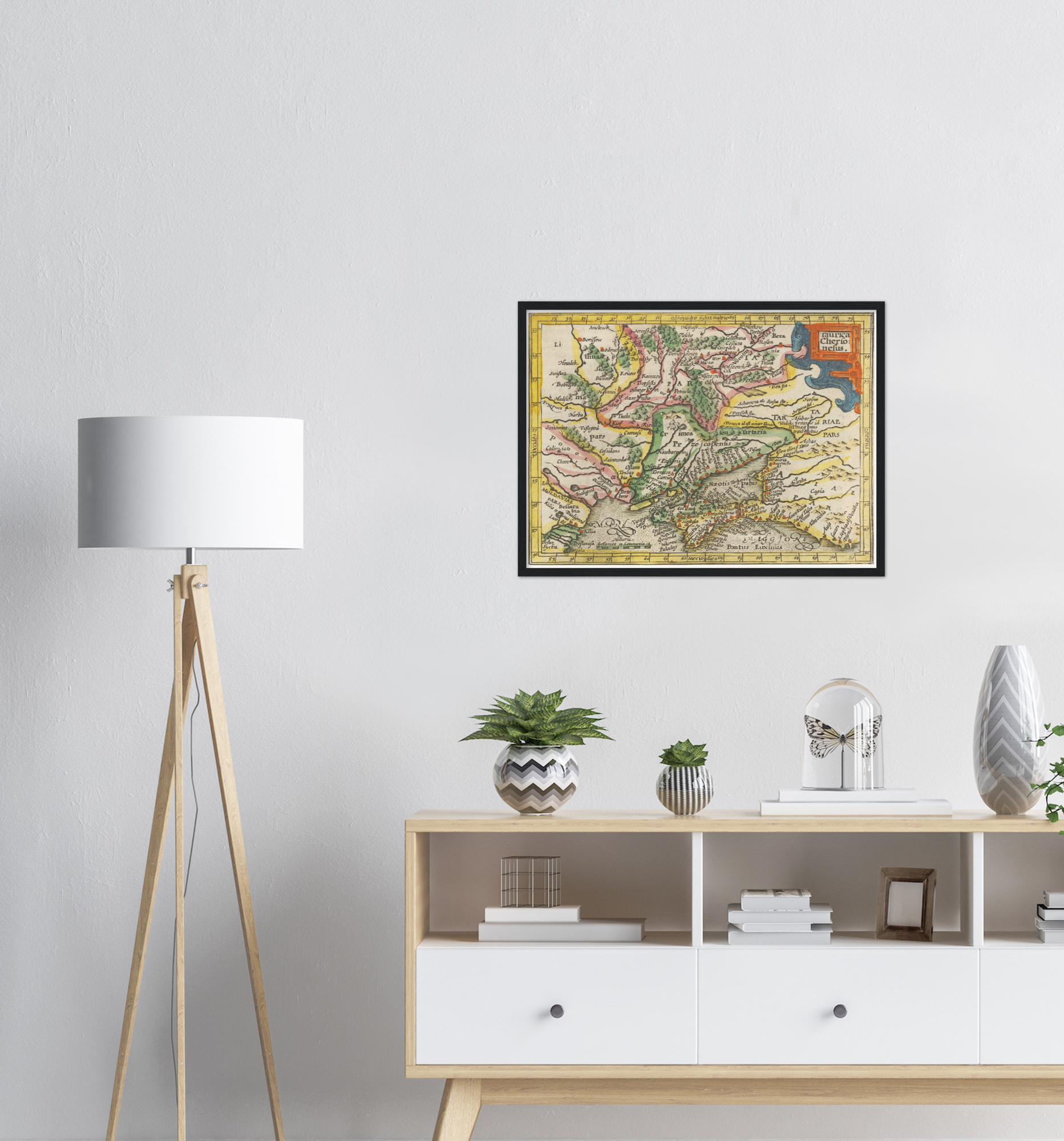 Unsere Nachdrucke entstehen in Archivqualität auf feinstem, mattem Papier (250 g/m²), das jedem Raum eine eindrucksvolle Note verleiht. Die hochauflösende Digitalisierung und farbgetreue Rekonstruktion garantieren, dass du ein Stück Geschichte in unvergleichlicher Schärfe und Brillanz erlebst. Jeder Druck wird auf Bestellung in Deutschland gefertigt und ist in 3 erlesenen Größen erhältlich: 40x30 - 60x45 cm. Zum Schutz wird jede Karte in einer stabilen Verpackung versandt. Optional kannst du zwischen natürlichen, dunkelbraunen oder schwarzen Holzrahmen sowie einem eleganten schwarzen Metallrahmen wählen, der mit bruchsicherem Plexiglas ausgestattet ist.