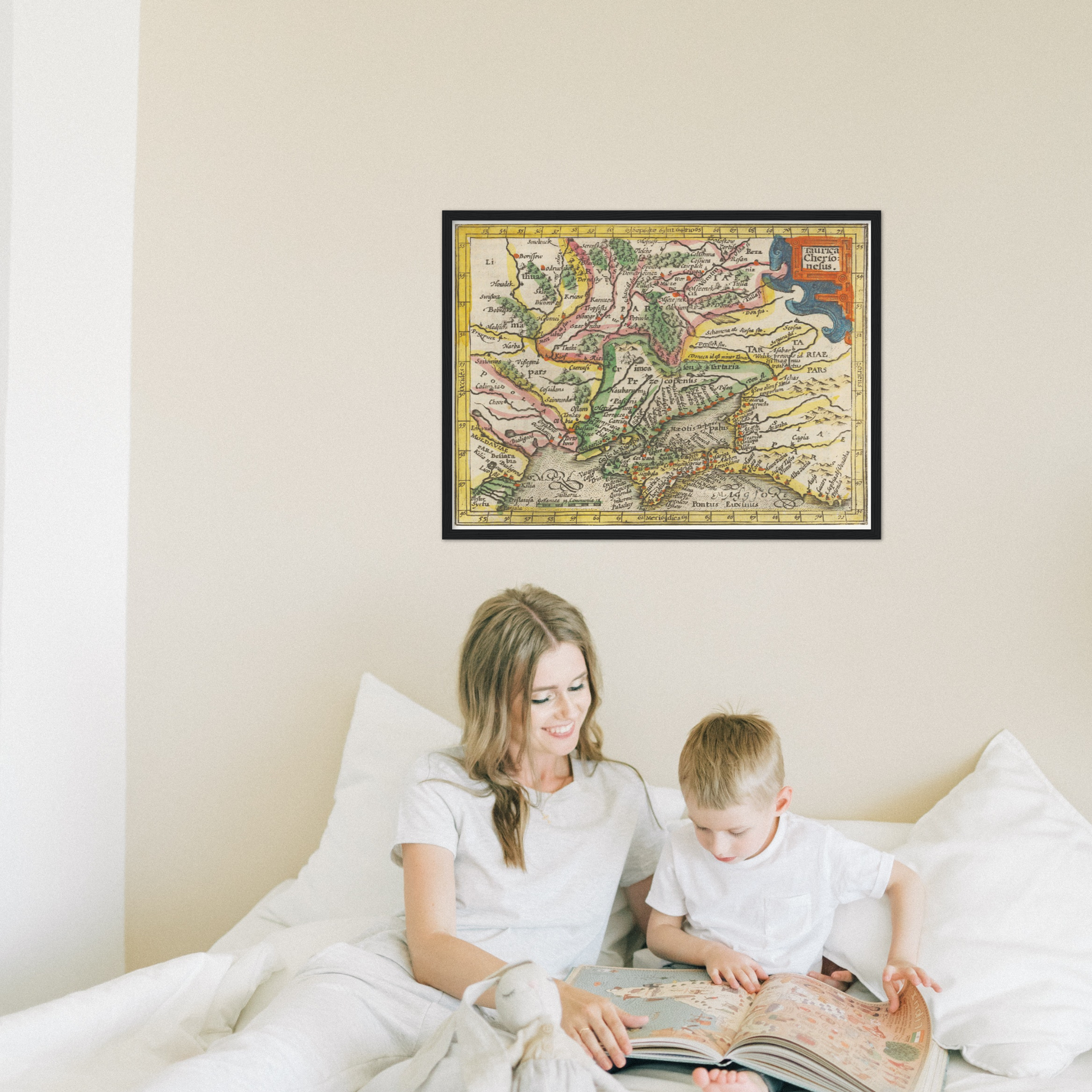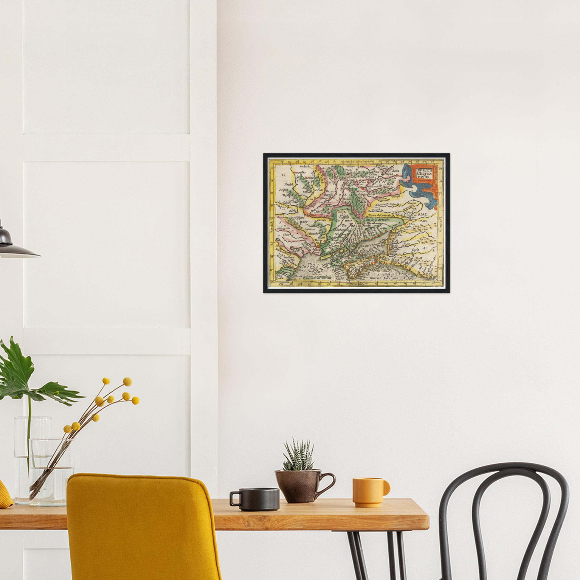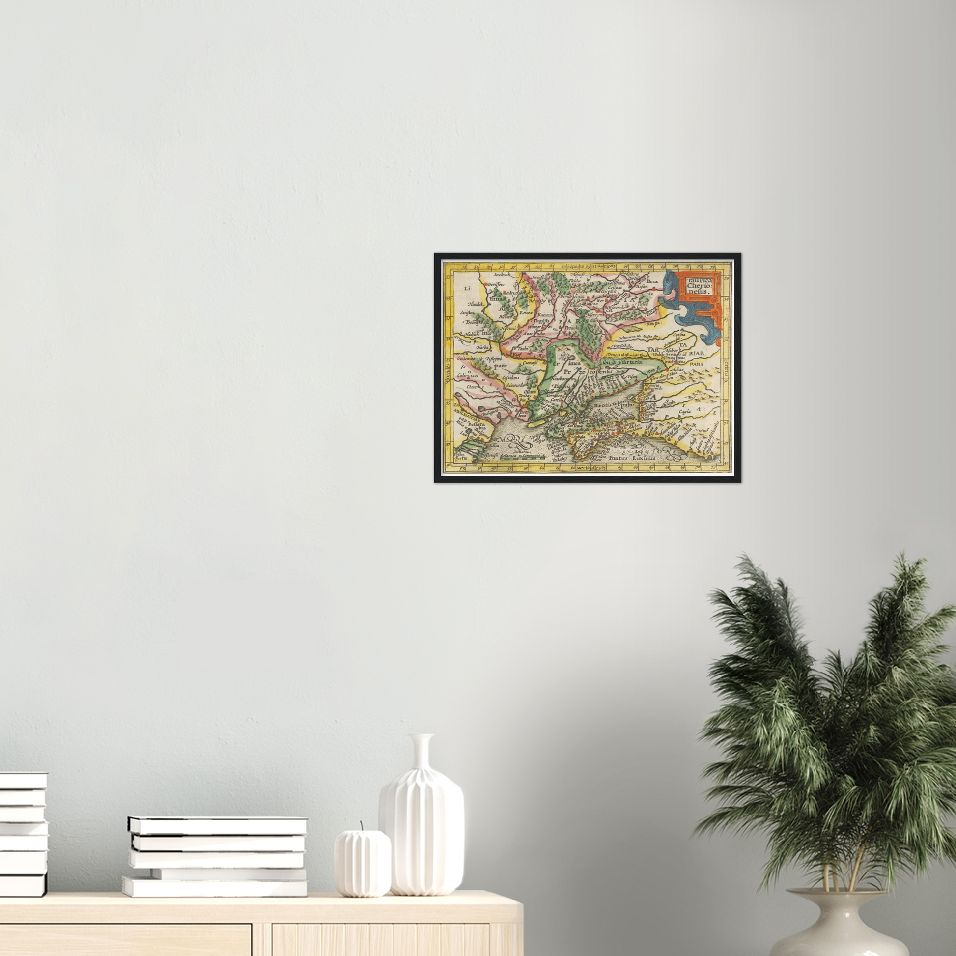 Die um 1609 entstandene Karte der Ukraine ist ein wichtiges Zeitdokument aus einer Ära intensiven historischen Wandels. Während dieser Zeit war das Gebiet der heutigen Ukraine ein komplexes Mosaik von Fürstentümern und Machtbereichen, beeinflusst von benachbarten Ländern und Kulturen. Der Kartograph, dessen Name leider im Laufe der Geschichte verloren ging, schuf ein Werk, das nicht nur Geographie zeigt, sondern auch die damaligen territorialen Machtstrukturen. Diese Karte mit ihren detaillierten Darstellungen, Symbolen und Wappen lässt Sie tief in die kulturelle Vielfalt und Dynamik dieser Region eintauchen. Heute zählt sie zu den wertvollen kulturellen Artefakten, die den Blick auf die historische Entwicklung der Ukraine erweitern.