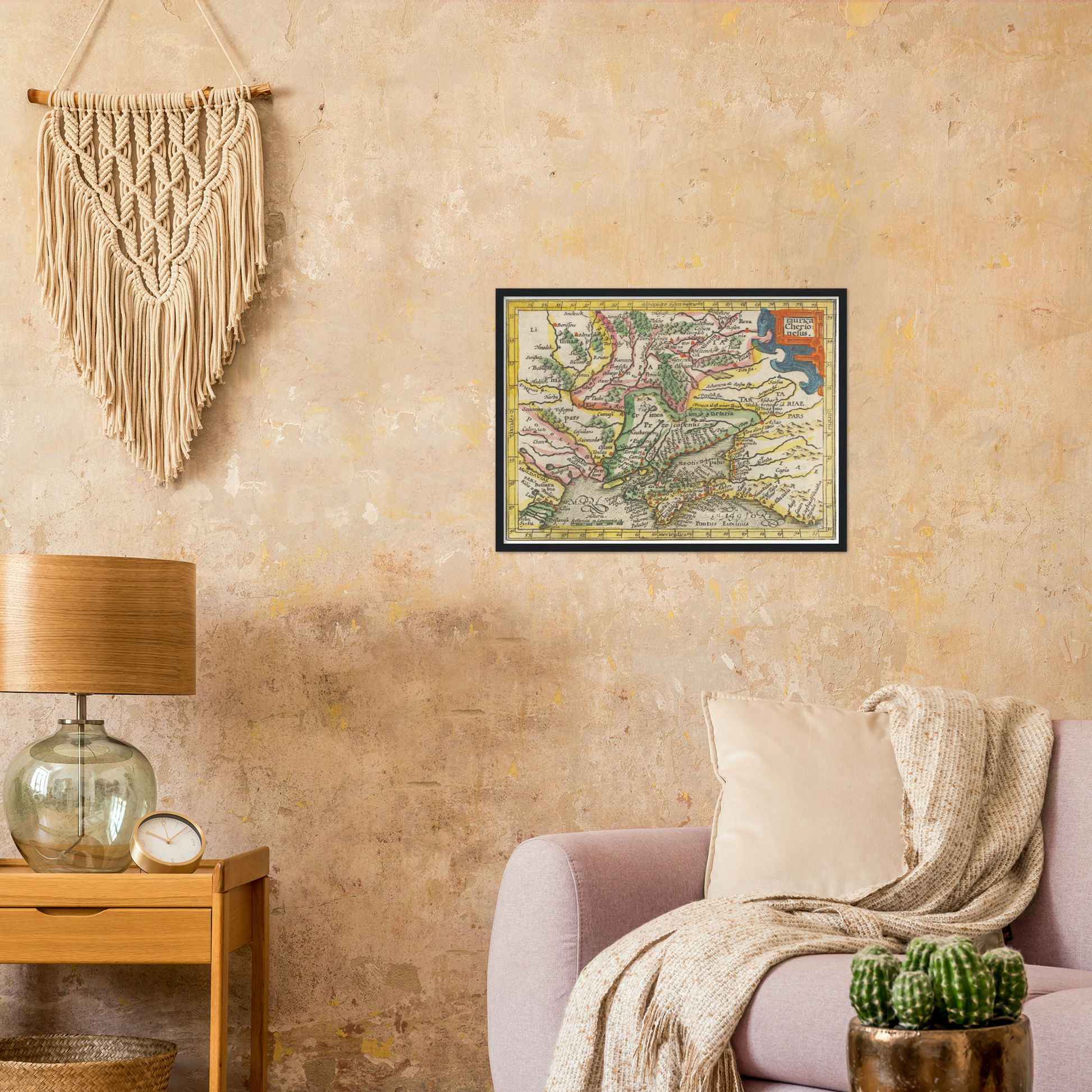 Diese historische Landkarte der Ukraine aus dem Jahr 1609 lädt Sie dazu ein, in eine Zeitreise zurück in die Vergangenheit einzutauchen. Jede Linie und Beschriftung auf dieser Karte erzählt Geschichten von Macht, Herrschaft und der sich wandelnden politischen Landschaft eines bedeutenden Teils Europas. Die Karte besticht durch ihre kunstvolle Gravur, die nicht nur den geographischen, sondern auch den kulturellen Wandel der Region einfängt. Sie hält die Erinnerung an eine Zeit aufrecht, in der Karten nicht nur als Navigationsinstrumente dienten, sondern auch als prächtige Kunstwerke die Weltanschauung ihres Entstehungszeitraums widerspiegelten.