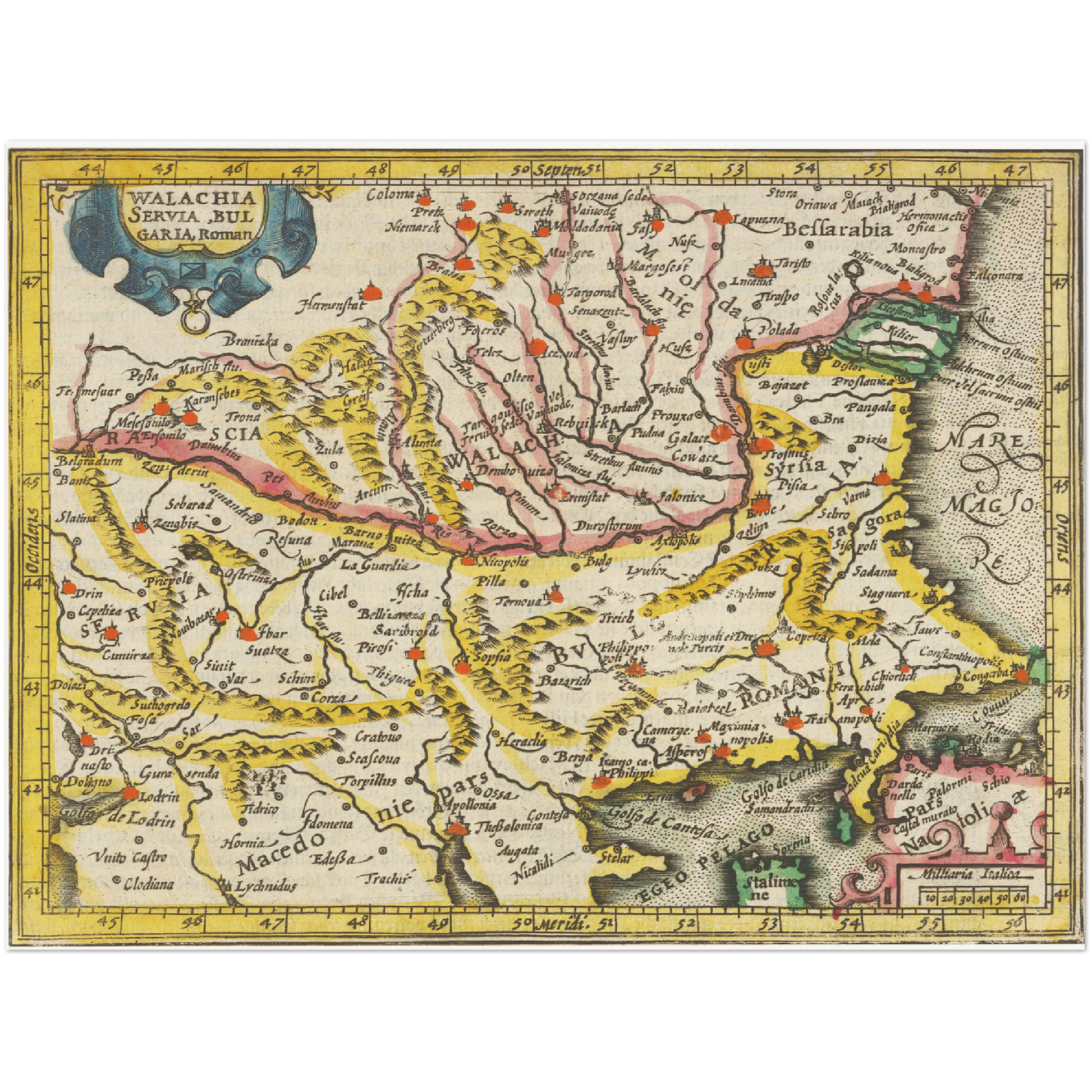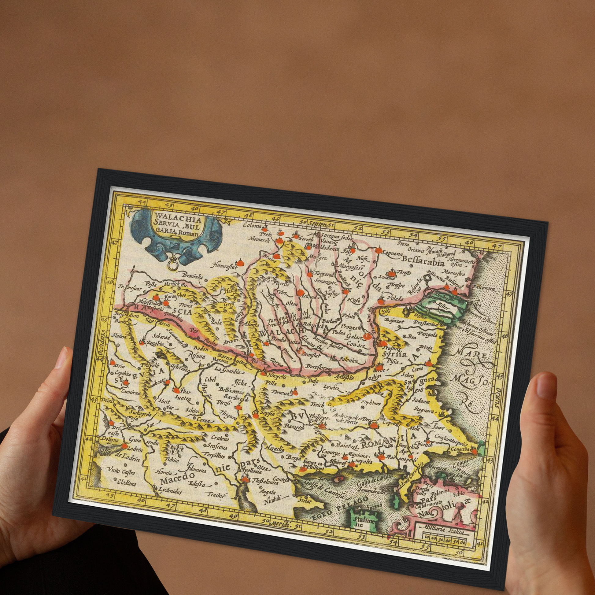Tauchen Sie ein in die Zeit der Renaissance und entdecken Sie die Faszination der Wallachei um 1609 auf dieser kunstvollen historischen Landkarte.