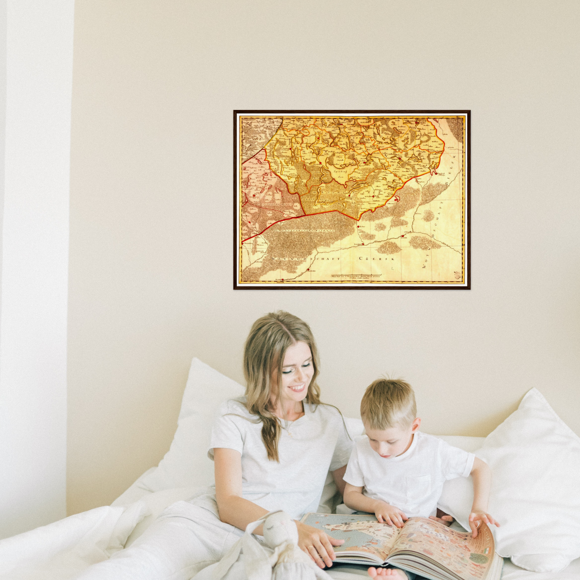 Unsere Nachdrucke entstehen in Archivqualität auf feinstem, mattem Papier (250 g/m²), das jedem Raum eine eindrucksvolle Note verleiht. Die hochauflösende Digitalisierung und farbgetreue Rekonstruktion garantieren, dass du ein Stück Geschichte in unvergleichlicher Schärfe und Brillanz erlebst. Jeder Druck wird auf Bestellung in Deutschland gefertigt und ist in 3 erlesenen Größen erhältlich: . Zum Schutz wird jede Karte in einer stabilen Verpackung versandt. Optional kannst du zwischen natürlichen, dunkelbraunen oder schwarzen Holzrahmen sowie einem eleganten schwarzen Metallrahmen wählen, der mit bruchsicherem Plexiglas ausgestattet ist.