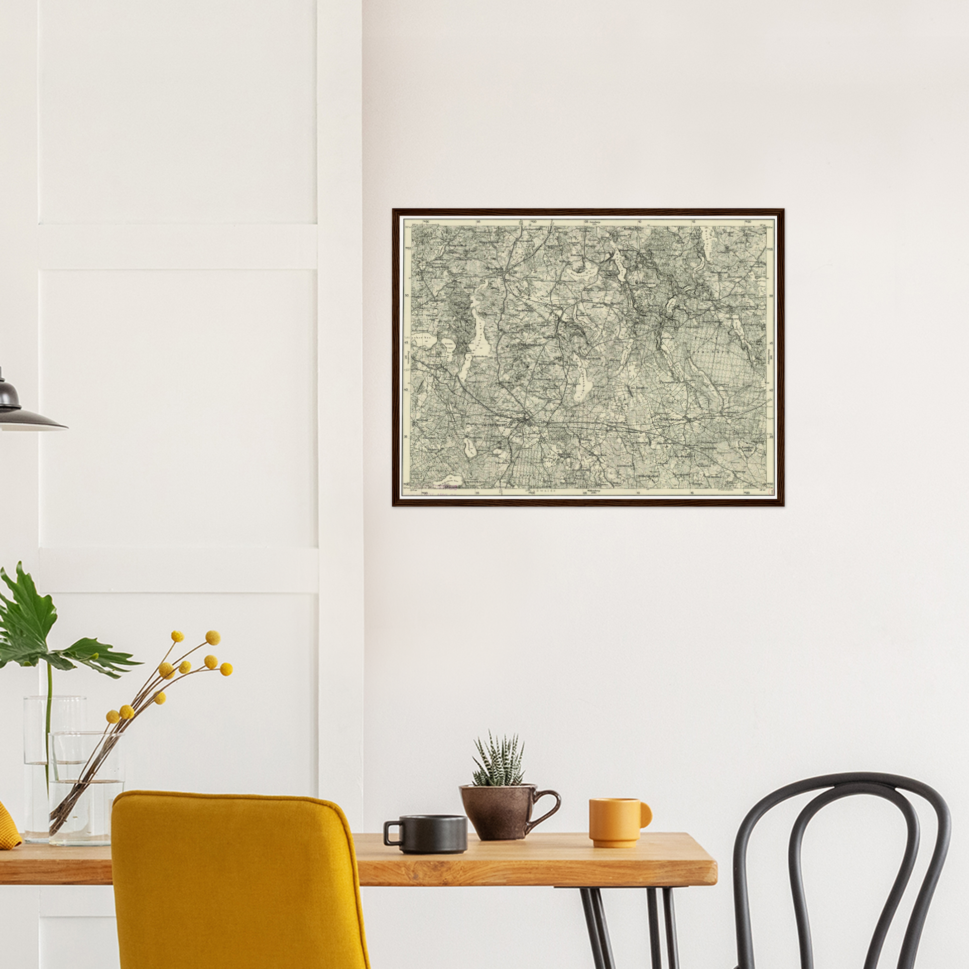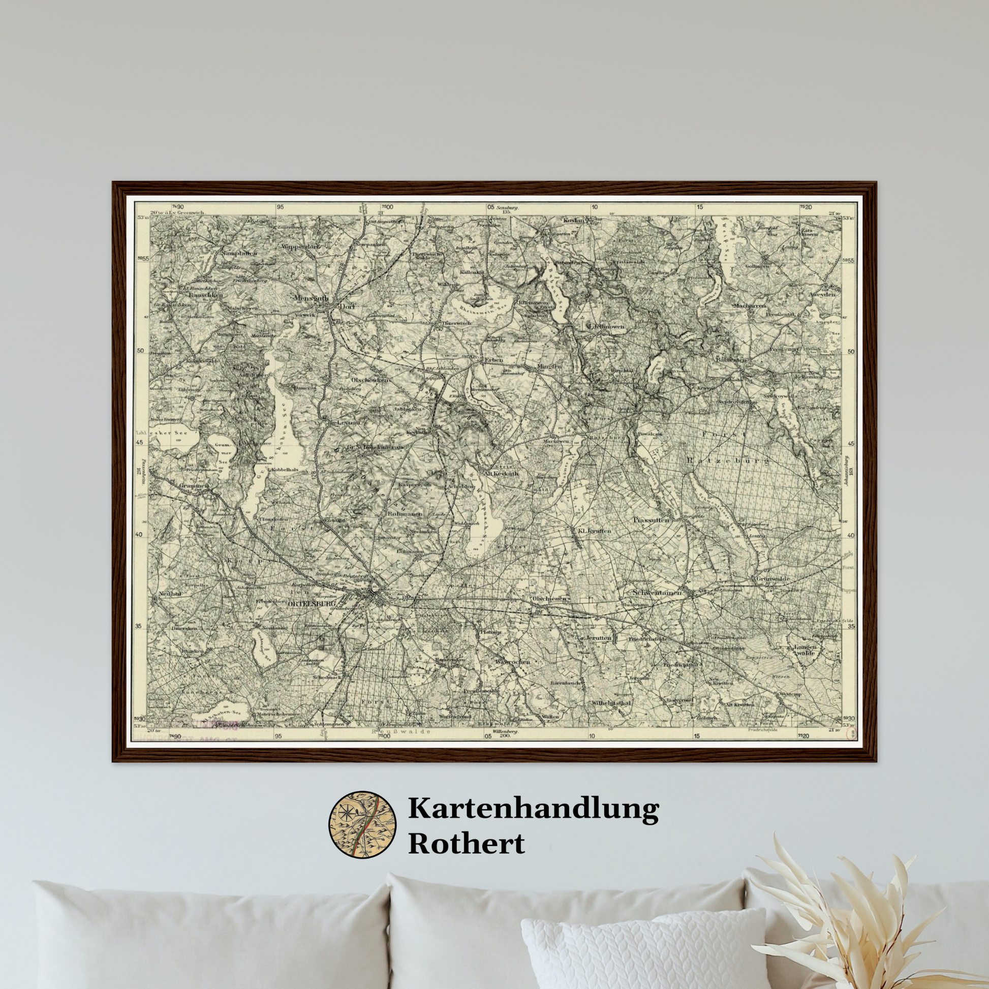 Unsere Nachdrucke entstehen in Archivqualität auf feinstem, mattem Papier (250 g/m²), das jedem Raum eine eindrucksvolle Note verleiht. Die hochauflösende Digitalisierung und farbgetreue Rekonstruktion garantieren, dass du ein Stück Geschichte in unvergleichlicher Schärfe und Brillanz erlebst. Jeder Druck wird auf Bestellung in Deutschland gefertigt und ist in 3 erlesenen Größen erhältlich: . Zum Schutz wird jede Karte in einer stabilen Verpackung versandt. Optional kannst du zwischen natürlichen, dunkelbraunen oder schwarzen Holzrahmen sowie einem eleganten schwarzen Metallrahmen wählen, der mit bruchsicherem Plexiglas ausgestattet ist.