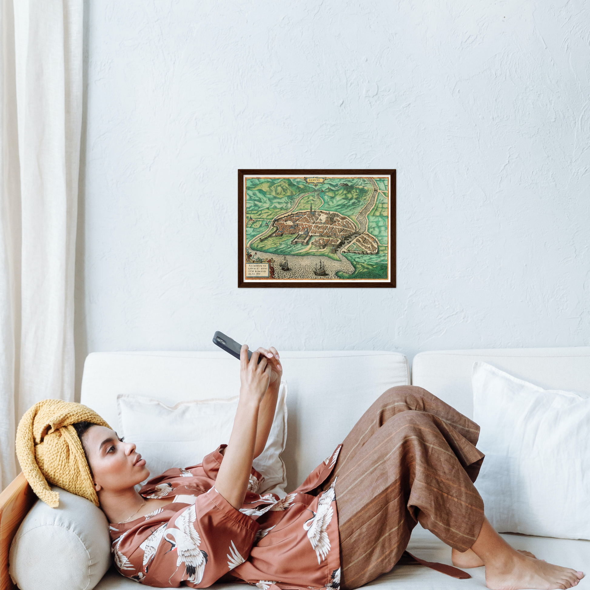 The original artwork is individually captured and digitized in a high resolution by our trained personnel. The images are professionally digitally cropped. If necessary the basic parameters to brightness and contrast are optimized to make the map look even sharper and richer. In the next step, the images are assigned selected passe-partouts. The print resolution must not fall below 300 dpi to ensure the high print quality of your map.