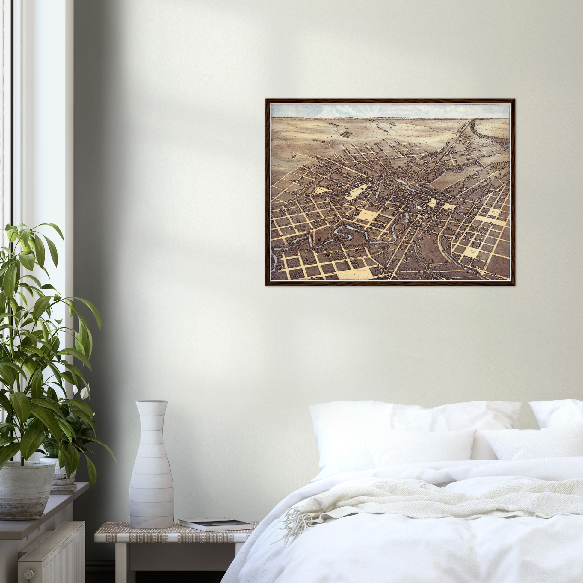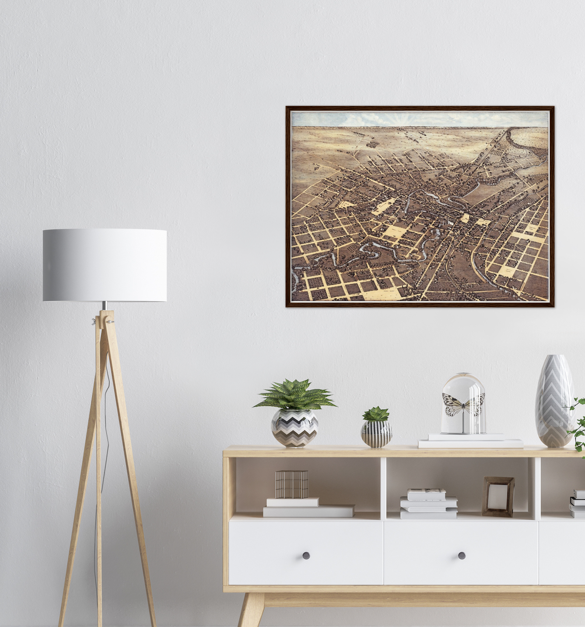 Unsere Nachdrucke entstehen in Archivqualität auf feinstem, mattem Papier (250 g/m²), das jedem Raum eine eindrucksvolle Note verleiht. Die hochauflösende Digitalisierung und farbgetreue Rekonstruktion garantieren, dass du ein Stück Geschichte in unvergleichlicher Schärfe und Brillanz erlebst. Jeder Druck wird auf Bestellung in Deutschland gefertigt und ist in 3 erlesenen Größen erhältlich: 40x30 - 80x60 cm. Zum Schutz wird jede Karte in einer stabilen Verpackung versandt. Optional kannst du zwischen natürlichen, dunkelbraunen oder schwarzen Holzrahmen sowie einem eleganten schwarzen Metallrahmen wählen, der mit bruchsicherem Plexiglas ausgestattet ist.