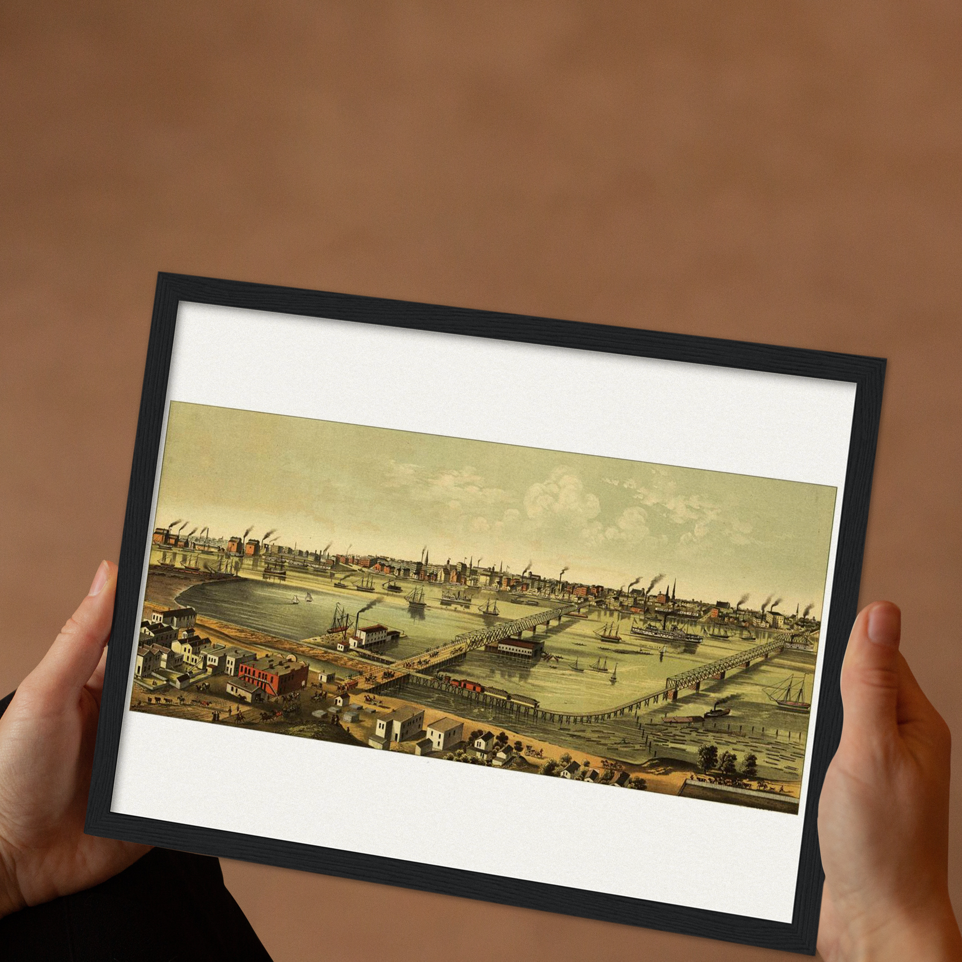 Unsere Nachdrucke entstehen in Archivqualität auf feinstem, mattem Papier (250 g/m²), das jedem Raum eine eindrucksvolle Note verleiht. Die hochauflösende Digitalisierung und farbgetreue Rekonstruktion garantieren, dass du ein Stück Geschichte in unvergleichlicher Schärfe und Brillanz erlebst. Jeder Druck wird auf Bestellung in Deutschland gefertigt und ist in 3 erlesenen Größen erhältlich: 40x30 - 60x45 cm. Zum Schutz wird jede Karte in einer stabilen Verpackung versandt. Optional kannst du zwischen natürlichen, dunkelbraunen oder schwarzen Holzrahmen sowie einem eleganten schwarzen Metallrahmen wählen, der mit bruchsicherem Plexiglas ausgestattet ist.