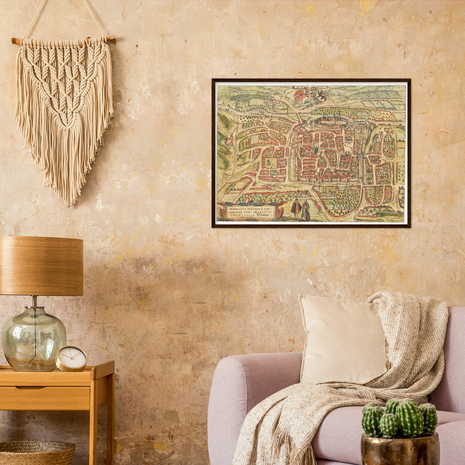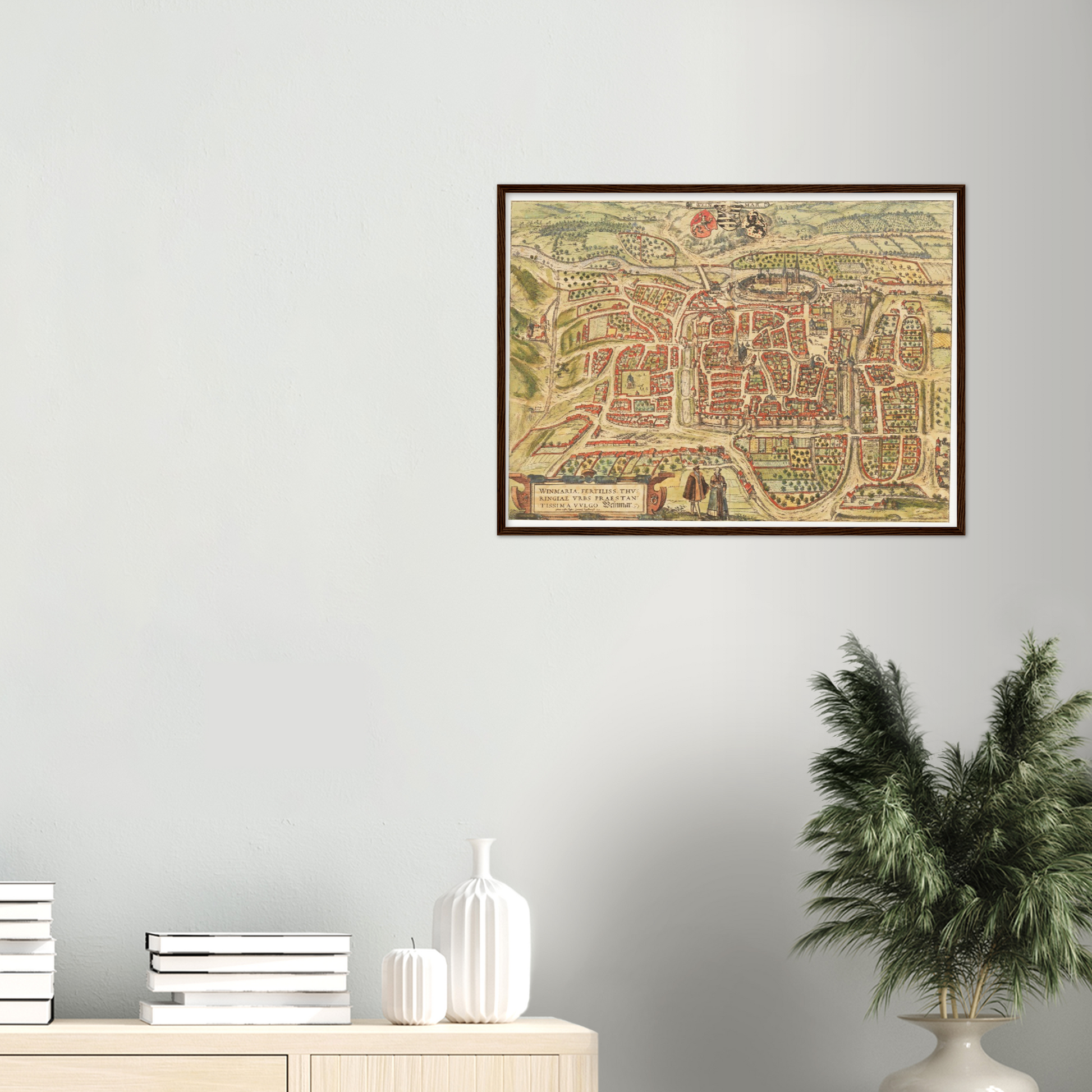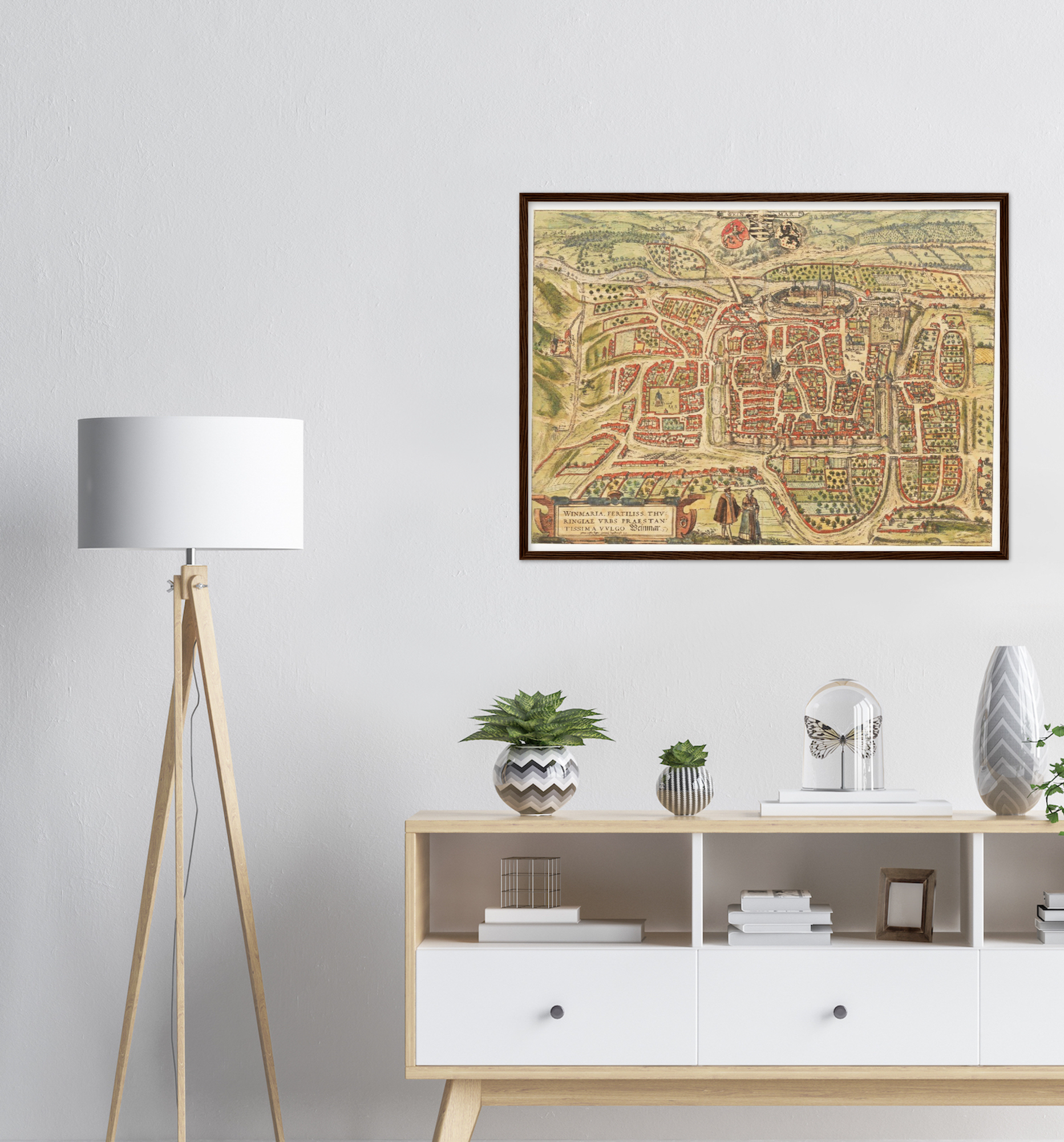 Unsere Nachdrucke entstehen in Archivqualität auf feinstem, mattem Papier (250 g/m²), das jedem Raum eine eindrucksvolle Note verleiht. Die hochauflösende Digitalisierung und farbgetreue Rekonstruktion garantieren, dass du ein Stück Geschichte in unvergleichlicher Schärfe und Brillanz erlebst. Jeder Druck wird auf Bestellung in Deutschland gefertigt und ist in 3 erlesenen Größen erhältlich: 40x30 - 80x60 cm. Zum Schutz wird jede Karte in einer stabilen Verpackung versandt. Optional kannst du zwischen natürlichen, dunkelbraunen oder schwarzen Holzrahmen sowie einem eleganten schwarzen Metallrahmen wählen, der mit bruchsicherem Plexiglas ausgestattet ist.