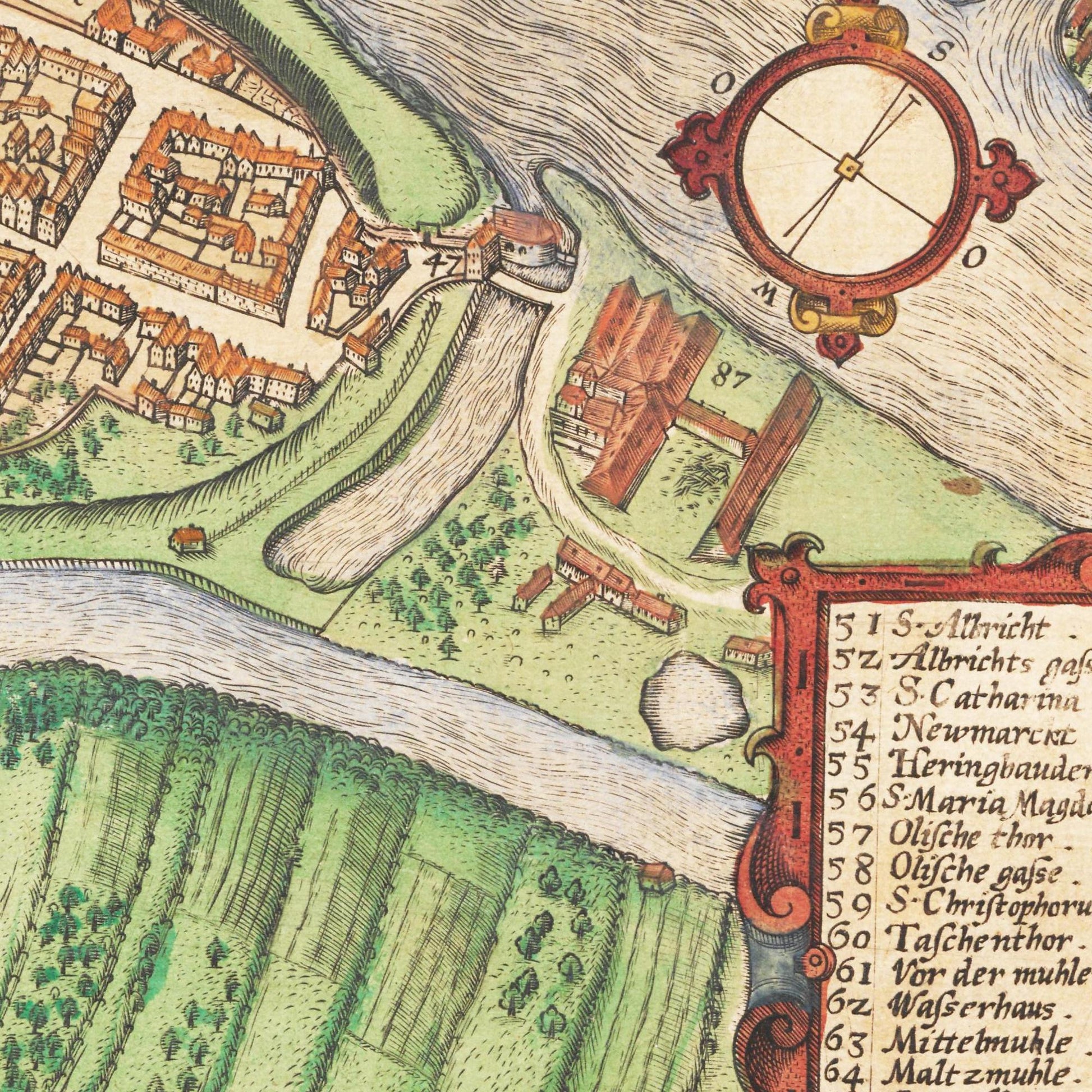 The original artwork is individually captured and digitized in a high resolution by our trained personnel. The images are professionally digitally cropped. If necessary the basic parameters to brightness and contrast are optimized to make the map look even sharper and richer. In the next step, the images are assigned selected passe-partouts. The print resolution must not fall below 300 dpi to ensure the high print quality of your map.
