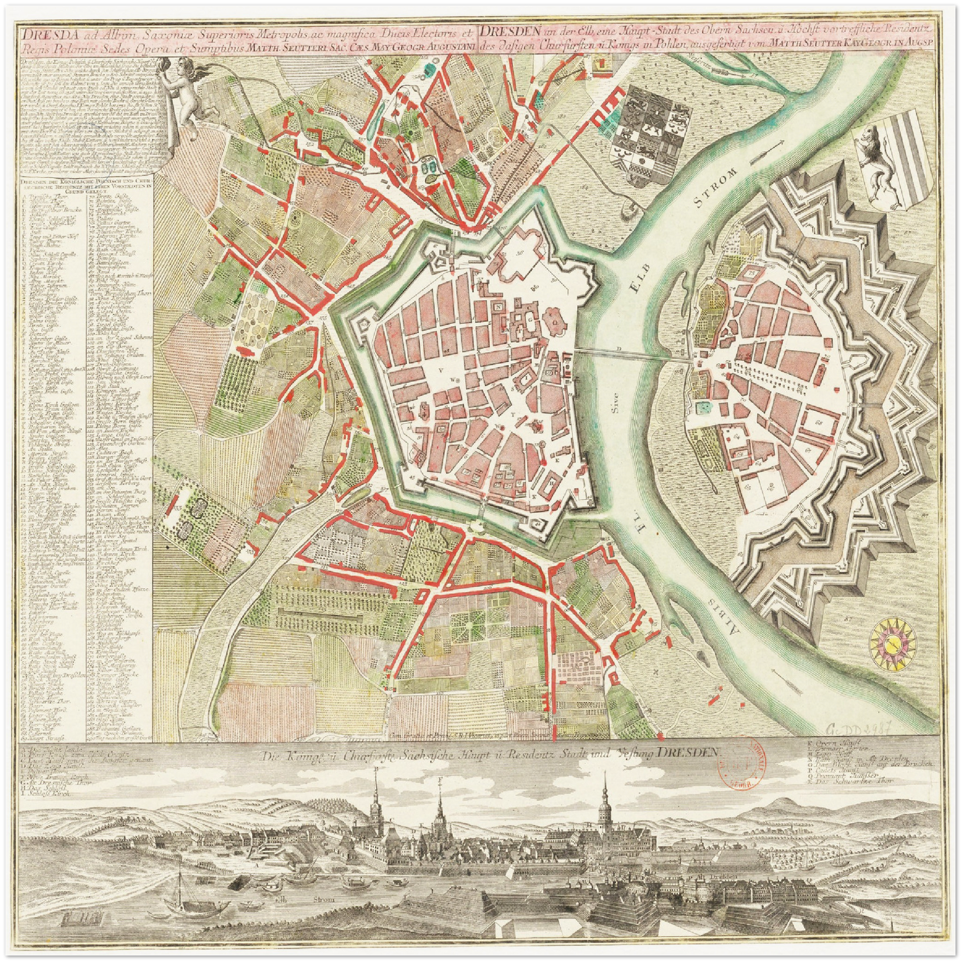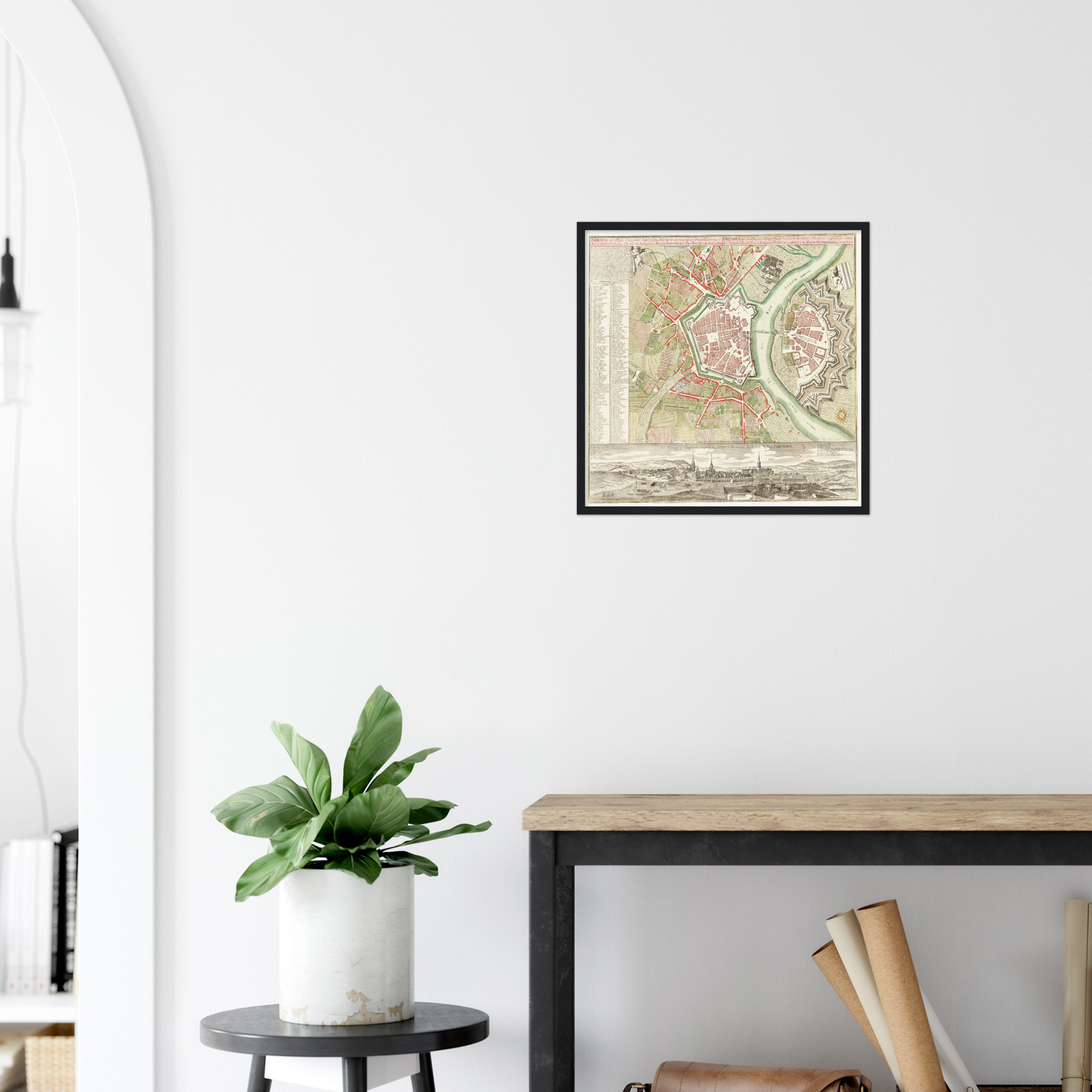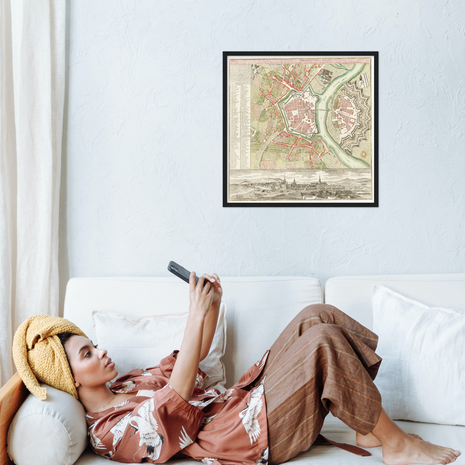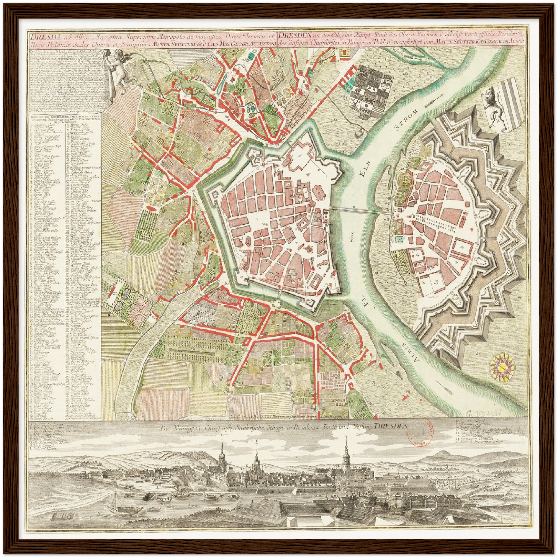 Unsere Nachdrucke entstehen in Archivqualität auf feinstem, mattem Papier (250 g/m²), das jedem Raum eine eindrucksvolle Note verleiht. Die hochauflösende Digitalisierung und farbgetreue Rekonstruktion garantieren, dass du ein Stück Geschichte in unvergleichlicher Schärfe und Brillanz erlebst. Jeder Druck wird auf Bestellung in Deutschland gefertigt und ist in 3 erlesenen Größen erhältlich: 30x30 - 50x50 cm. Zum Schutz wird jede Karte in einer stabilen Verpackung versandt. Optional kannst du zwischen natürlichen, dunkelbraunen oder schwarzen Holzrahmen sowie einem eleganten schwarzen Metallrahmen wählen, der mit bruchsicherem Plexiglas ausgestattet ist.