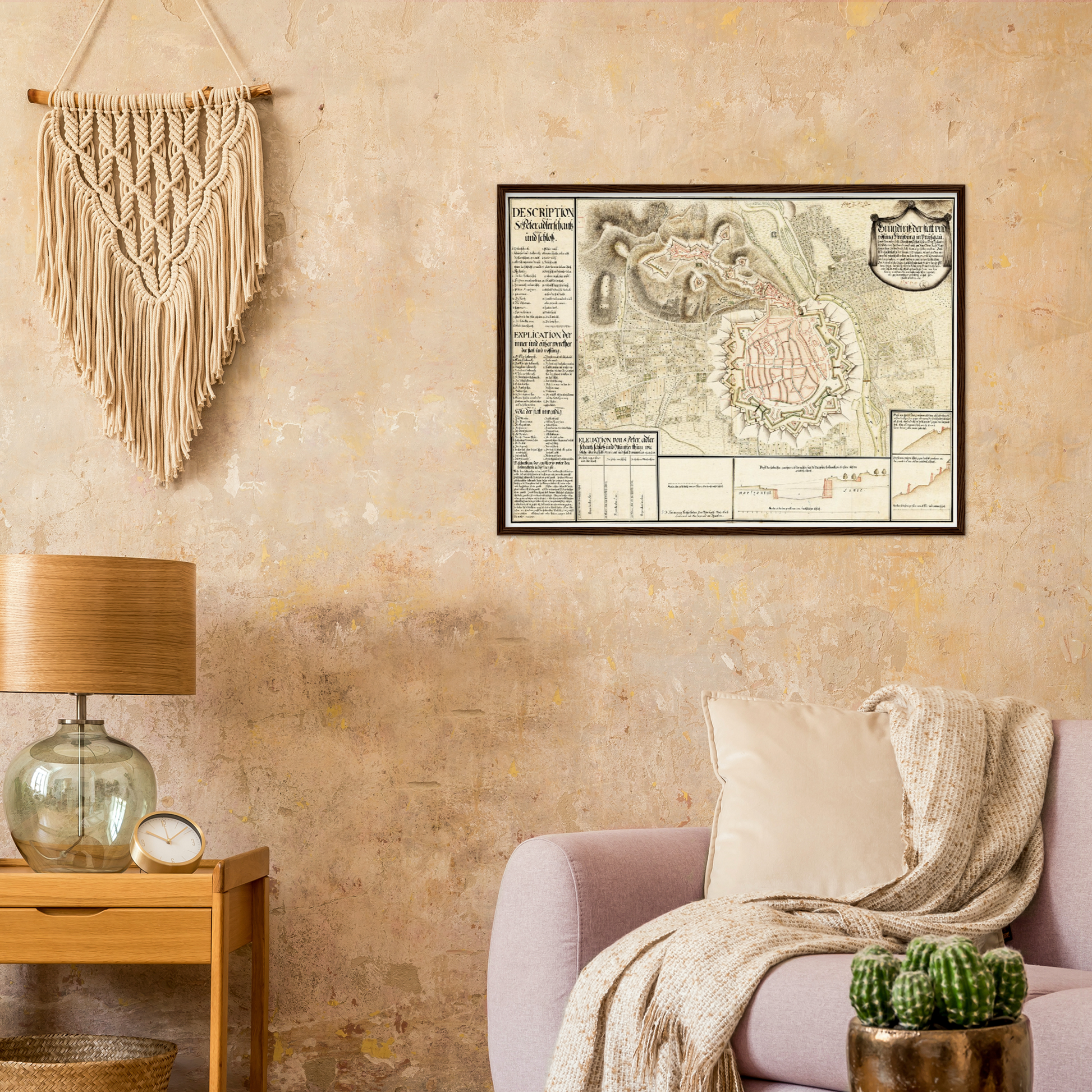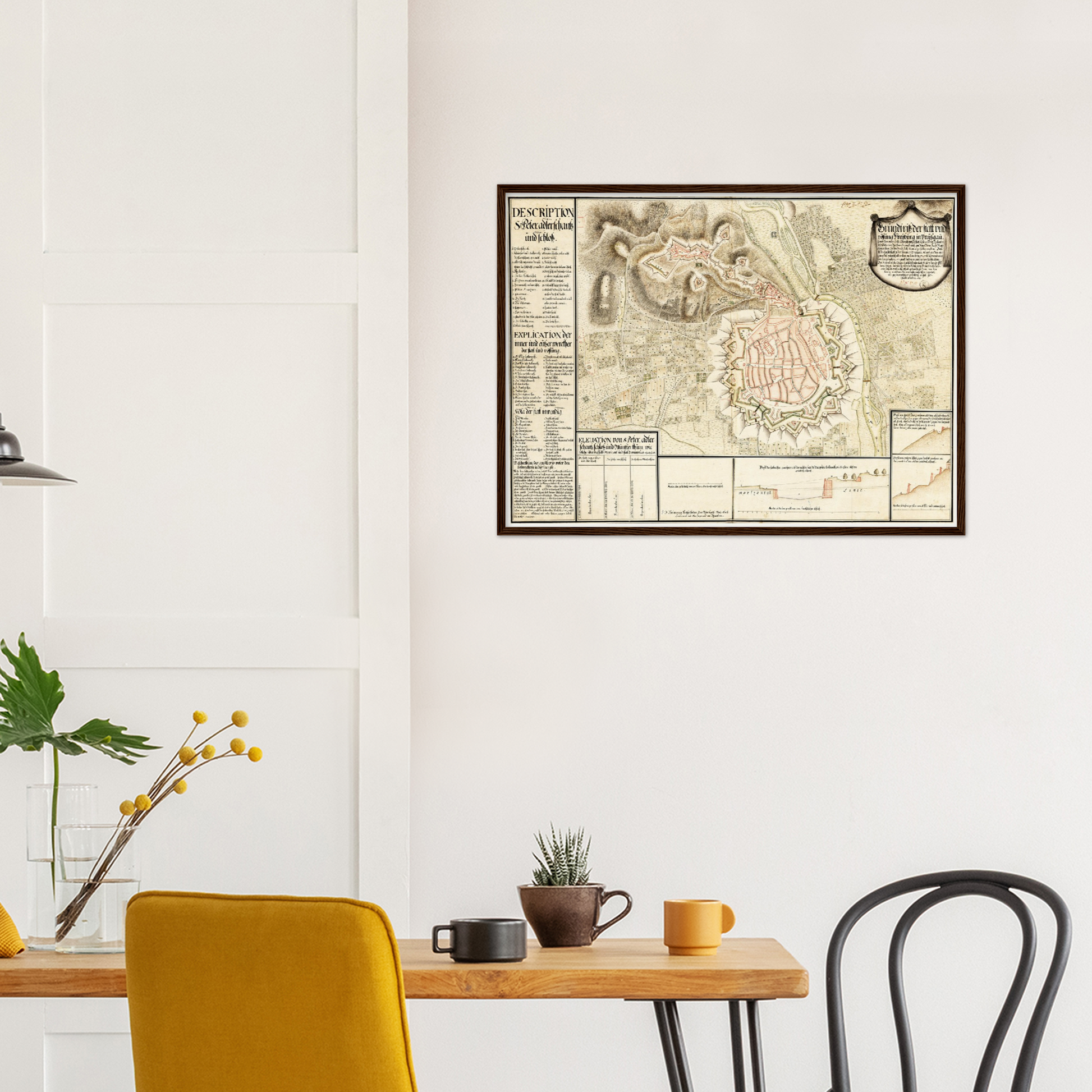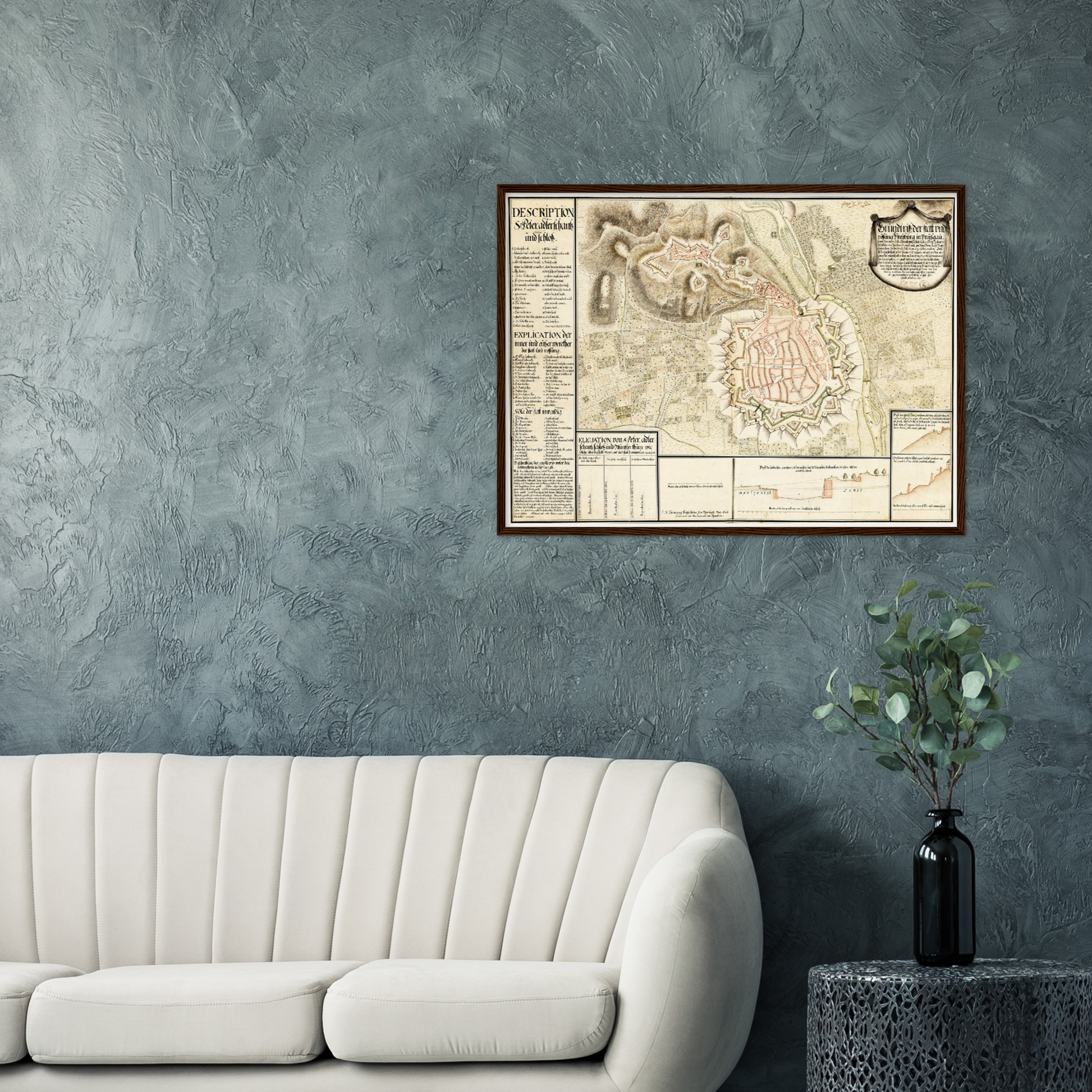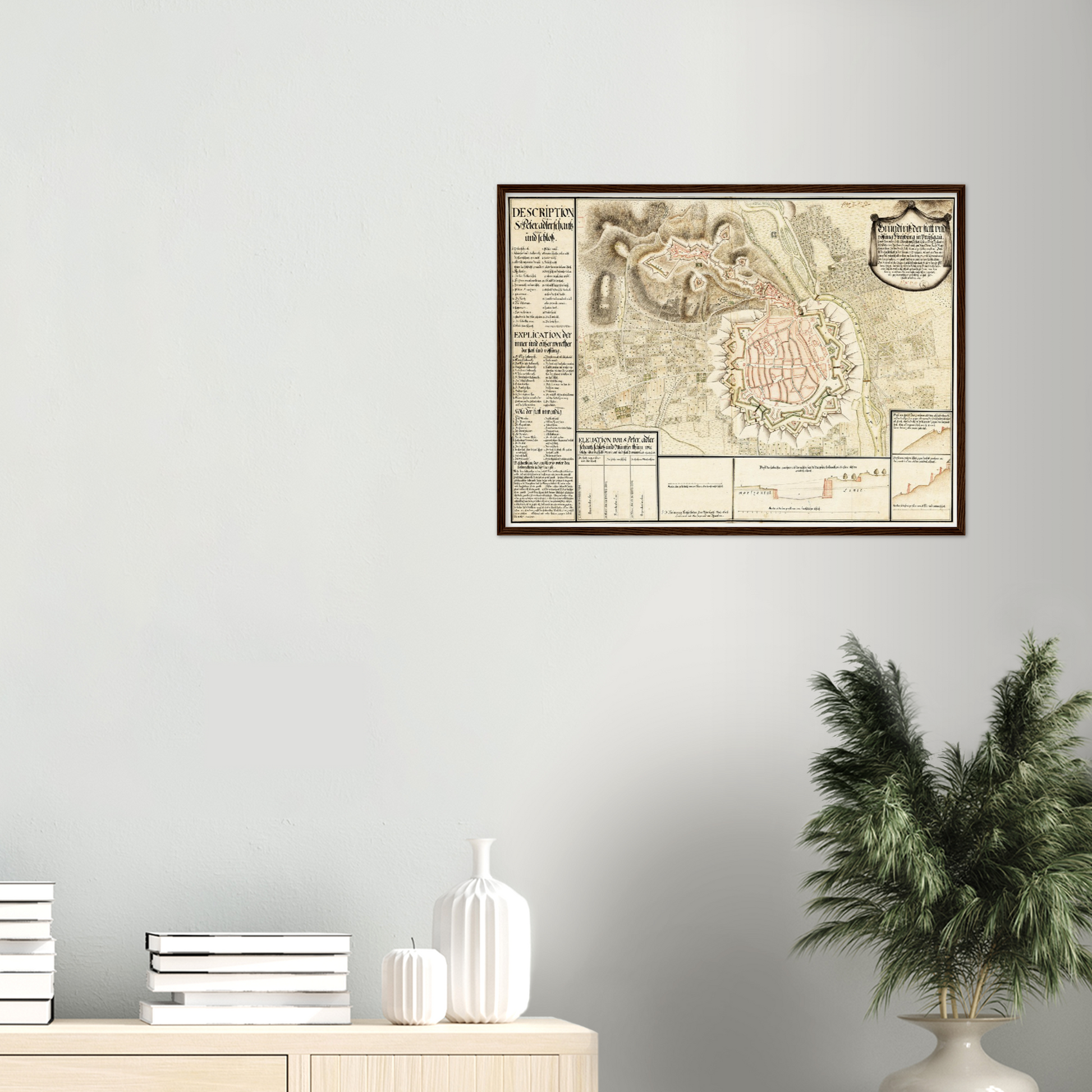 Unsere Nachdrucke entstehen in Archivqualität auf feinstem, mattem Papier (250 g/m²), das jedem Raum eine eindrucksvolle Note verleiht. Die hochauflösende Digitalisierung und farbgetreue Rekonstruktion garantieren, dass du ein Stück Geschichte in unvergleichlicher Schärfe und Brillanz erlebst. Jeder Druck wird auf Bestellung in Deutschland gefertigt und ist in 3 erlesenen Größen erhältlich: 30×40 - 60×80 cm. Zum Schutz wird jede Karte in einer stabilen Verpackung versandt. Optional kannst du zwischen natürlichen, dunkelbraunen oder schwarzen Holzrahmen sowie einem eleganten schwarzen Metallrahmen wählen, der mit bruchsicherem Plexiglas ausgestattet ist.