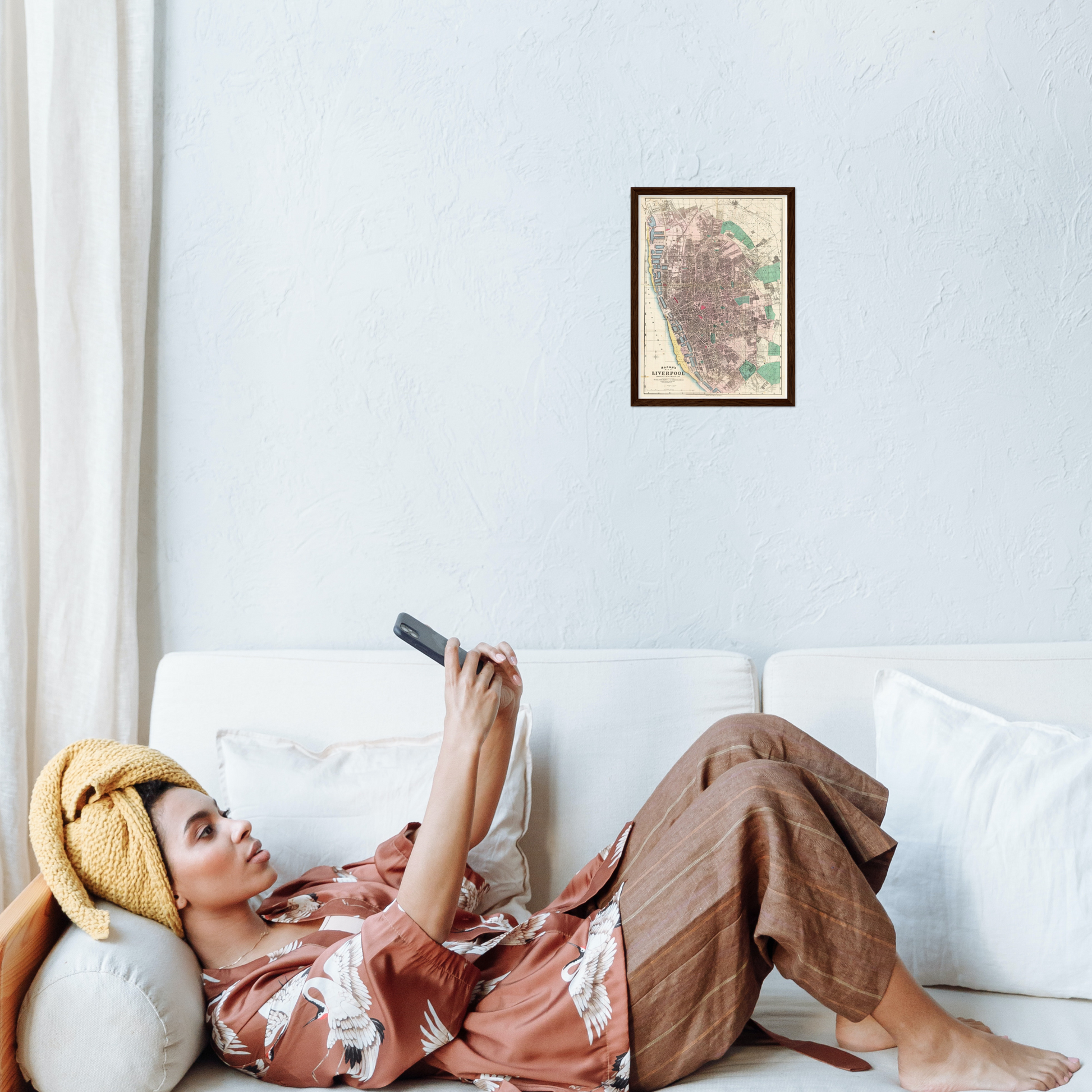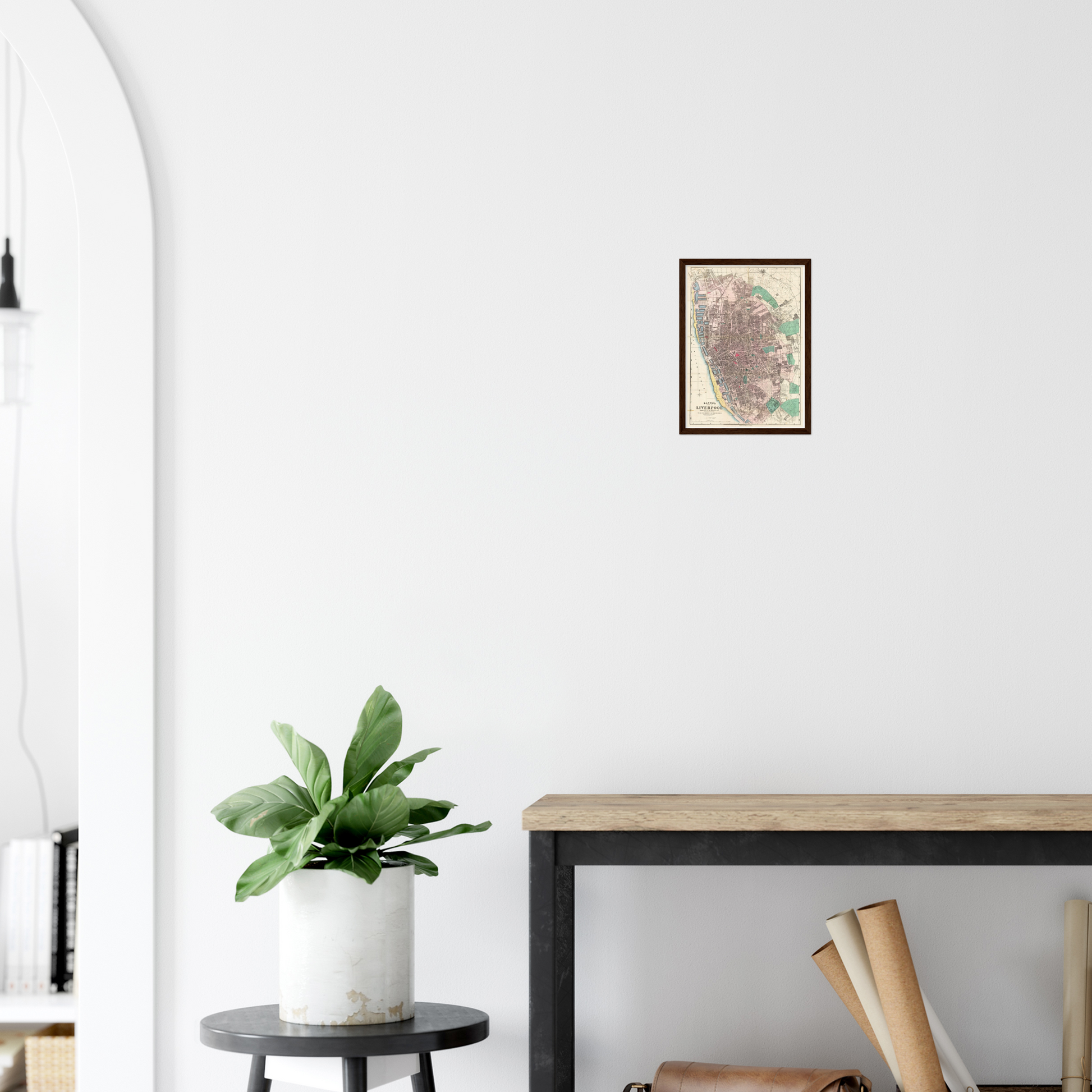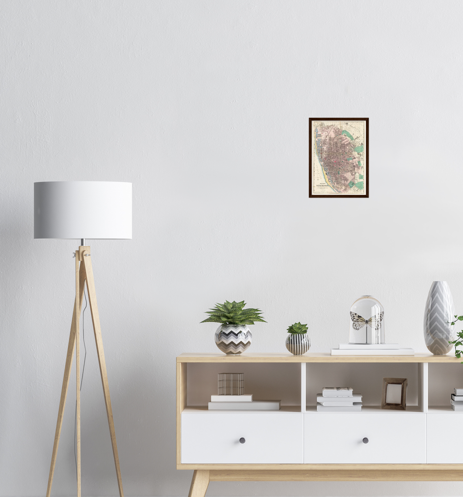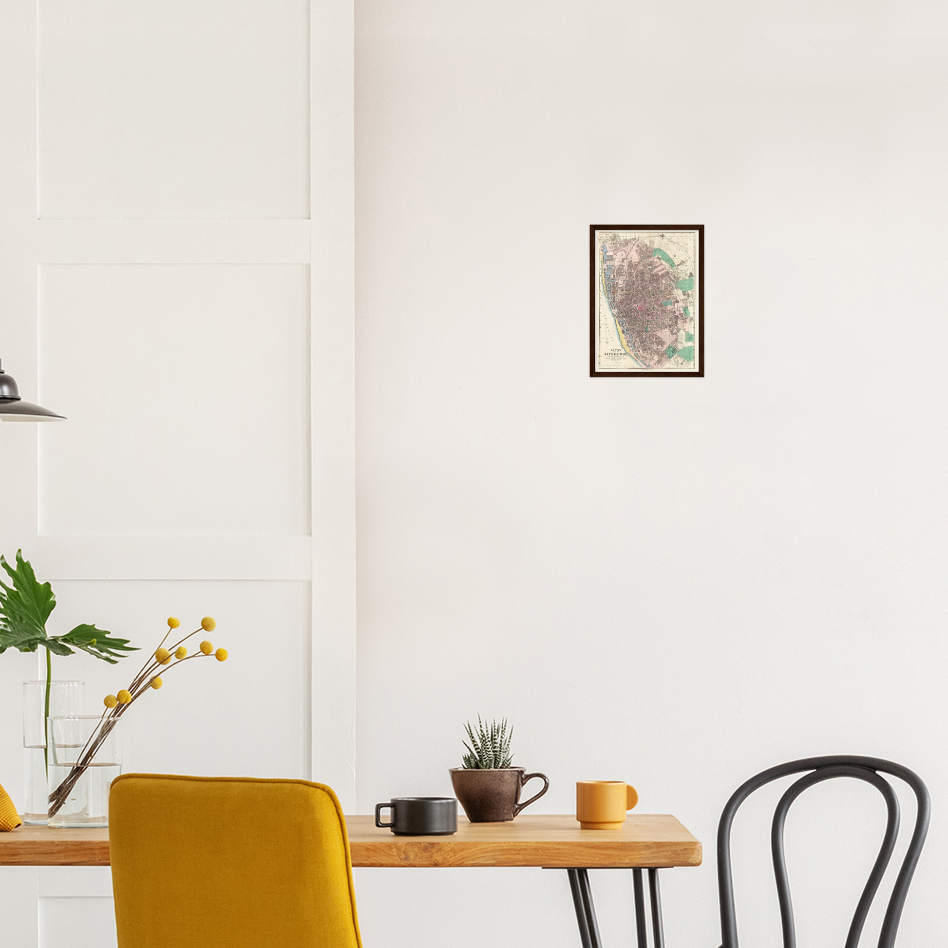 Unsere Nachdrucke entstehen in Archivqualität auf feinstem, mattem Papier (250 g/m²), das jedem Raum eine eindrucksvolle Note verleiht. Die hochauflösende Digitalisierung und farbgetreue Rekonstruktion garantieren, dass du ein Stück Geschichte in unvergleichlicher Schärfe und Brillanz erlebst. Jeder Druck wird auf Bestellung in Deutschland gefertigt und ist in 3 erlesenen Größen erhältlich: 30x40 cm. Zum Schutz wird jede Karte in einer stabilen Verpackung versandt. Optional kannst du zwischen natürlichen, dunkelbraunen oder schwarzen Holzrahmen sowie einem eleganten schwarzen Metallrahmen wählen, der mit bruchsicherem Plexiglas ausgestattet ist.