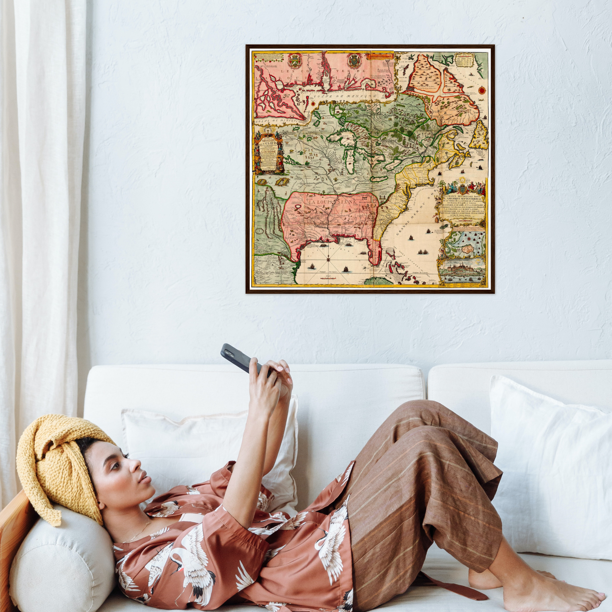 USA, Landkarte, 1718, Historisch, Amerika, Kolonialzeit, Vintage, Wandkunst, Sammler, Geografie.Druck & Material