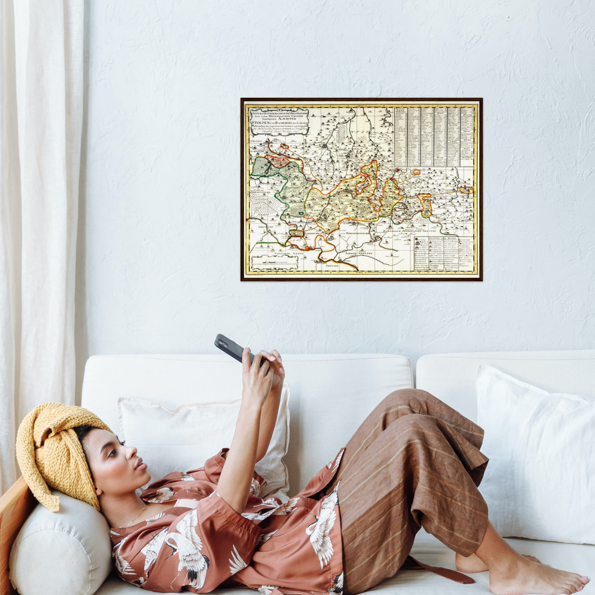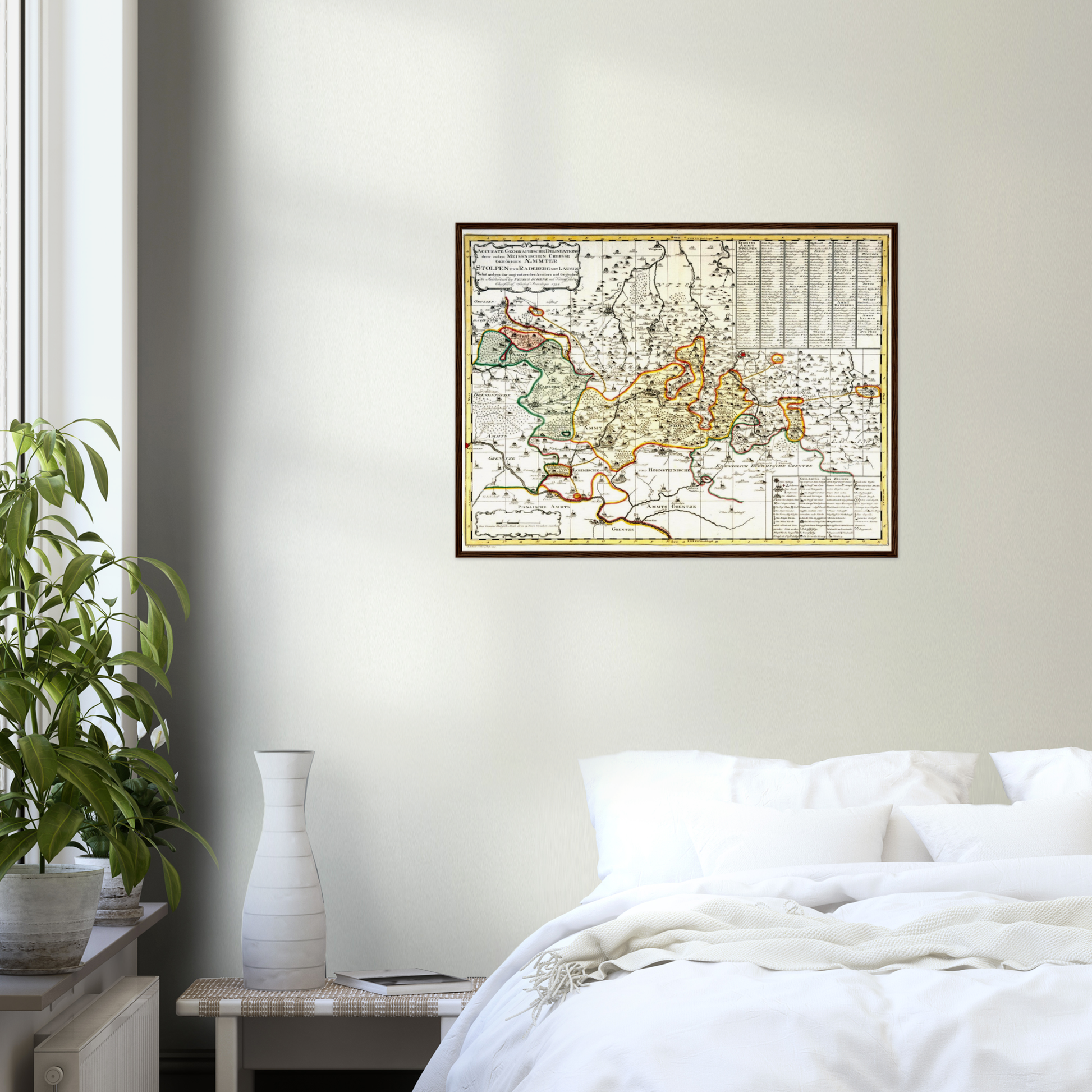 Unsere Nachdrucke entstehen in Archivqualität auf feinstem, mattem Papier (250 g/m²), das jedem Raum eine eindrucksvolle Note verleiht. Die hochauflösende Digitalisierung und farbgetreue Rekonstruktion garantieren, dass du ein Stück Geschichte in unvergleichlicher Schärfe und Brillanz erlebst. Jeder Druck wird auf Bestellung in Deutschland gefertigt und ist in 3 erlesenen Größen erhältlich: . Zum Schutz wird jede Karte in einer stabilen Verpackung versandt. Optional kannst du zwischen natürlichen, dunkelbraunen oder schwarzen Holzrahmen sowie einem eleganten schwarzen Metallrahmen wählen, der mit bruchsicherem Plexiglas ausgestattet ist.