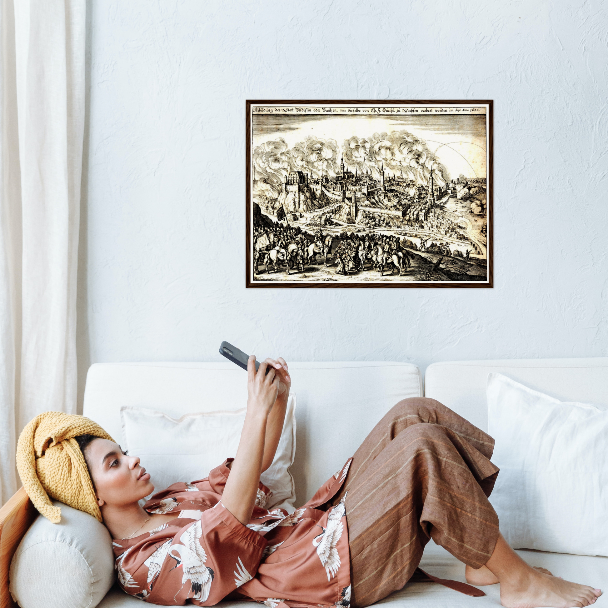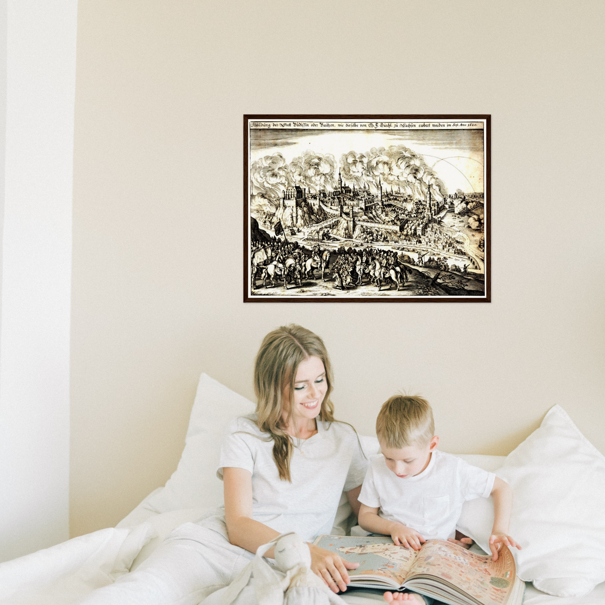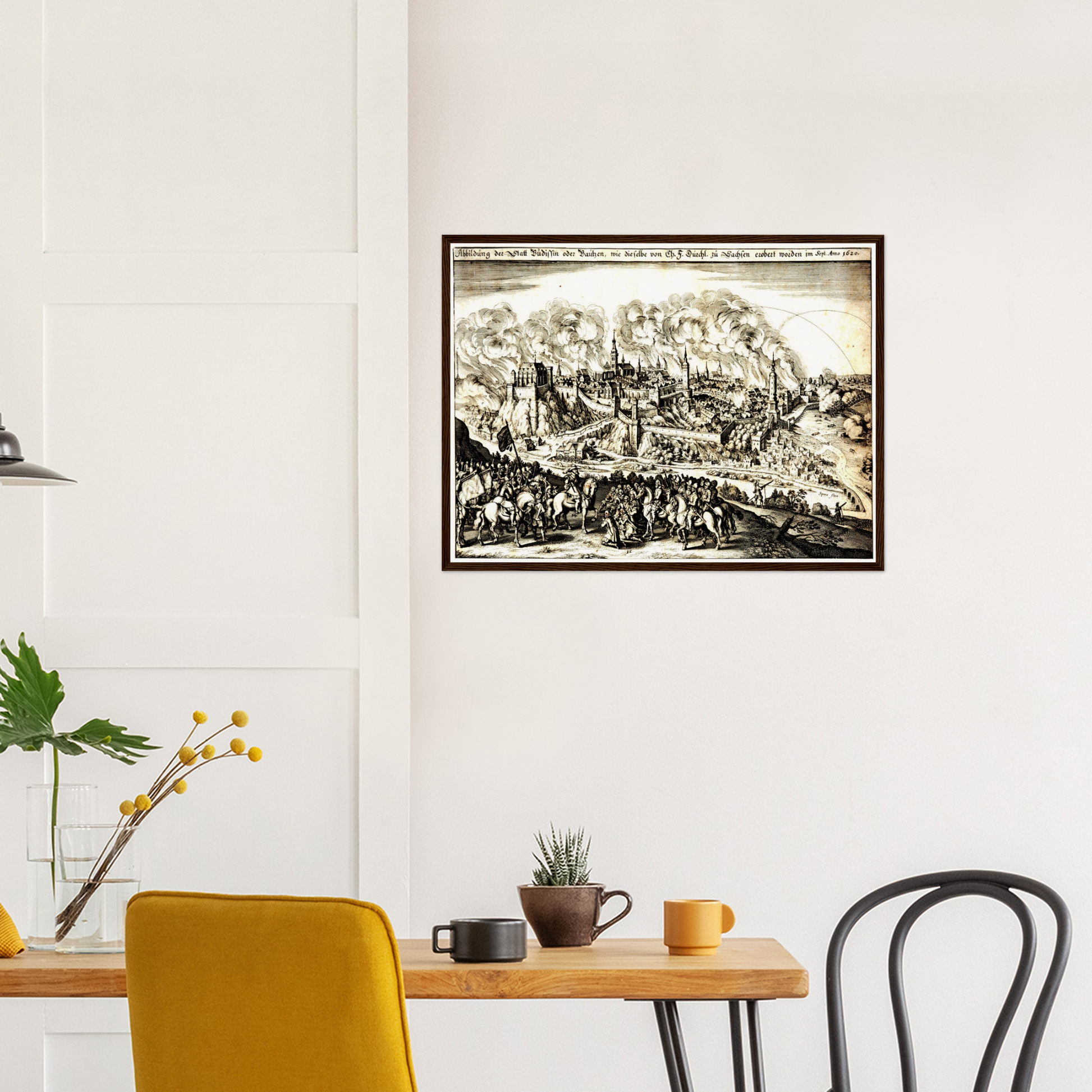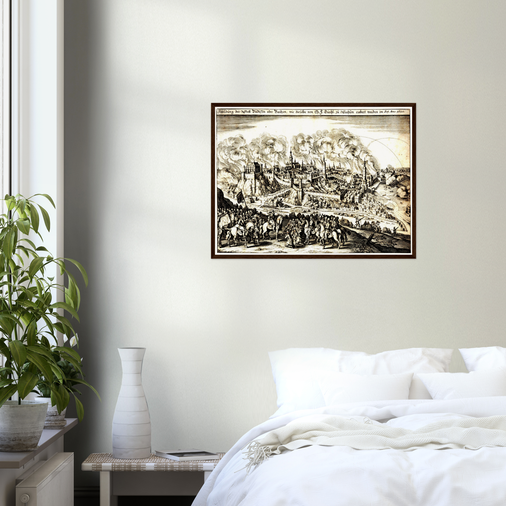 Um 1620 befand sich Europa in einem Epochenwandel, geprägt von religiösen Umbrüchen und territorialen Auseinandersetzungen. Bautzen, als bedeutende Handelsstadt und strategischer Knotenpunkt, spiegelte diese Dynamik wider. Diese Stadtansicht dokumentiert eine Zeit, in der Bautzen als kulturelles und wirtschaftliches Zentrum der Region aufblühte. Sie zeigt eine Stadt, die durch ihre Architektur und ihr Stadtbild sowohl Wehrhaftigkeit als auch kulturelle Vielfalt verkörpert. Die Darstellung offenbart eine Epoche, in der Geschichte und Kunst in einer einzigartigen Weise miteinander verwoben sind.