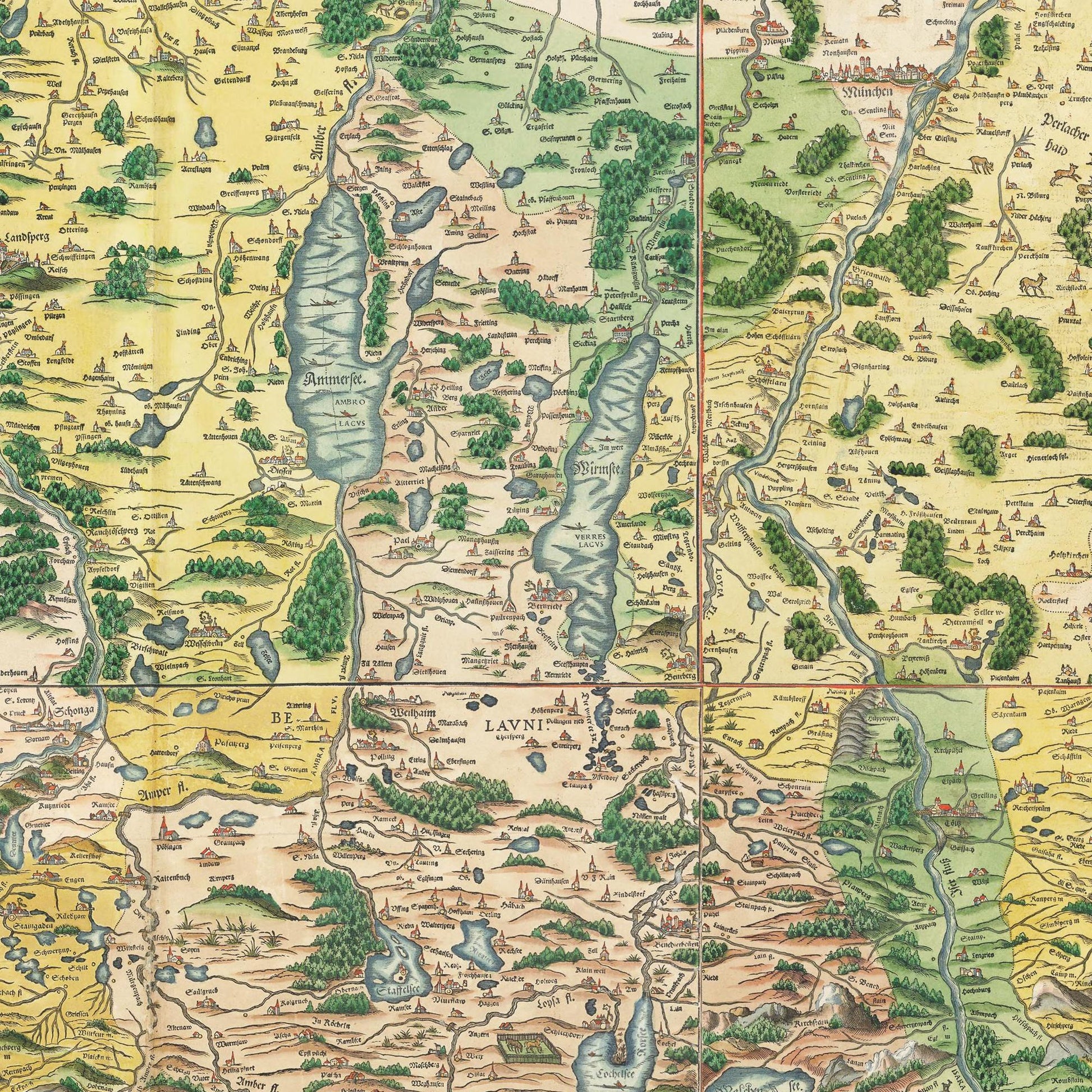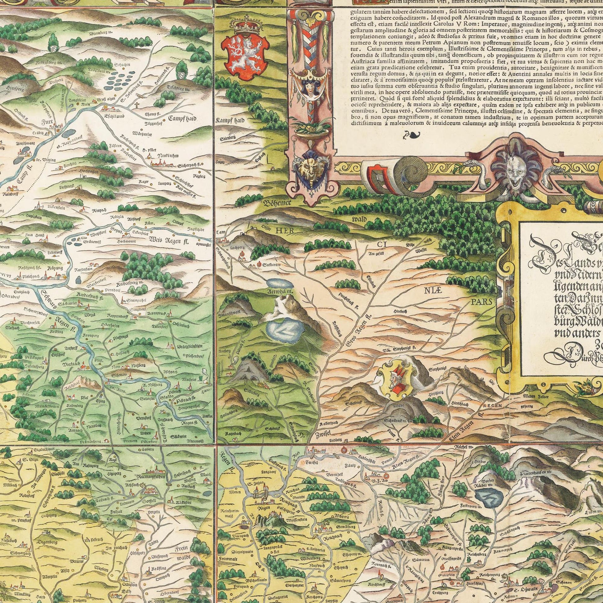 Tauche ein in die Geschichte Bayerns mit einem einzigartigen Nachdruck der Historischen Landkarte Bayern um 1568.