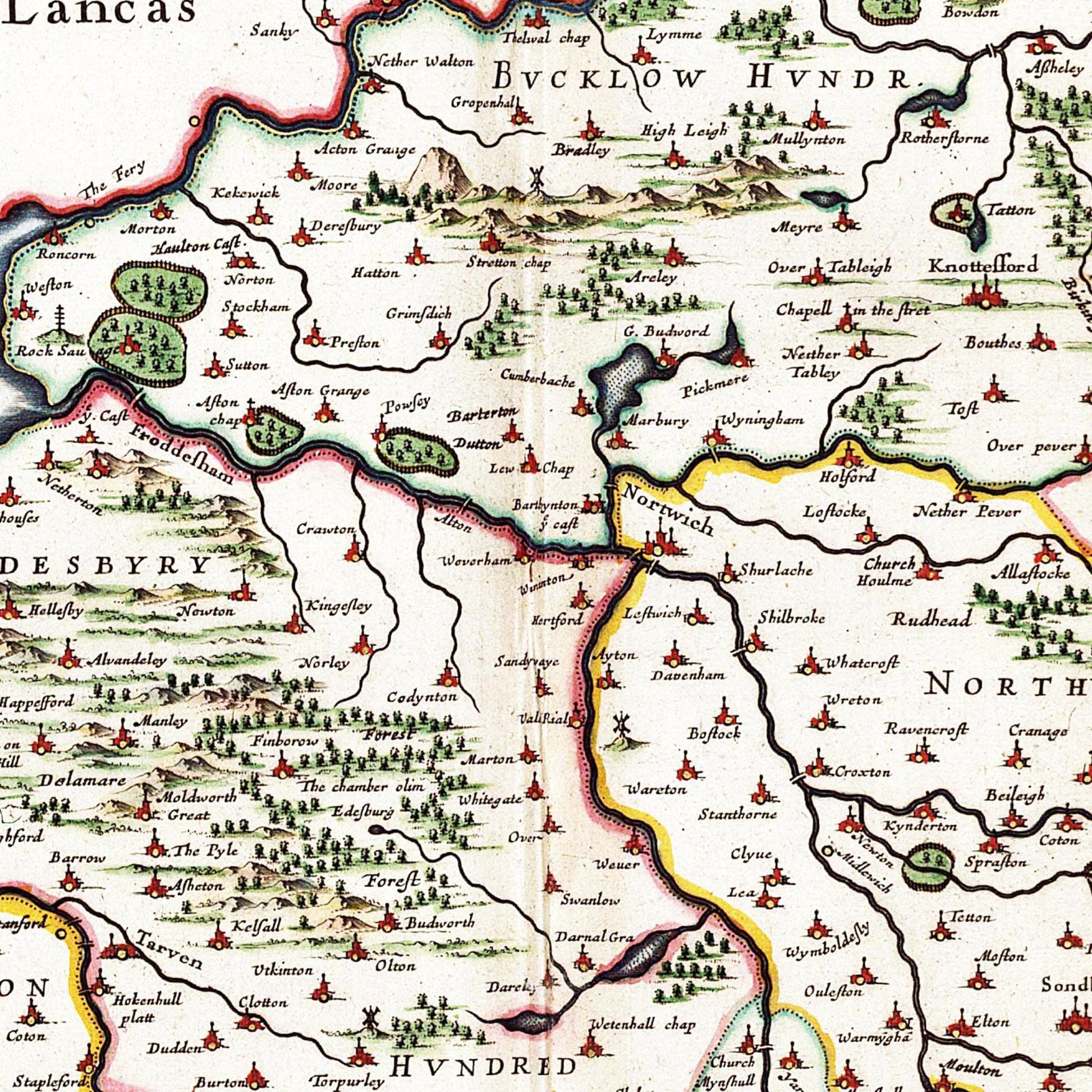 Entdecken Sie die Vergangenheit mit der historischen Landkarte Cheshire um 1646 — ein einzigartiger Blick in die Welt des 17. Jahrhunderts.