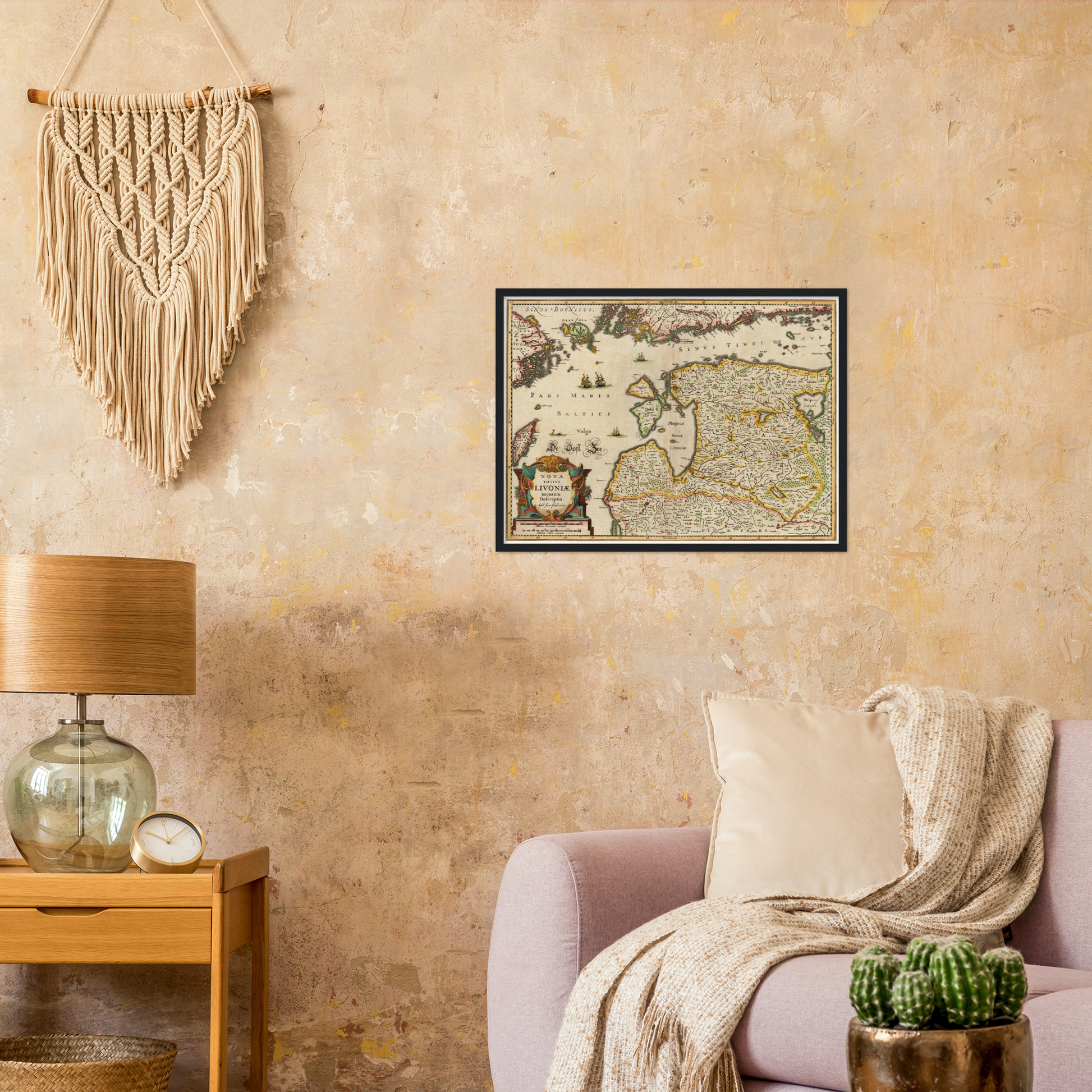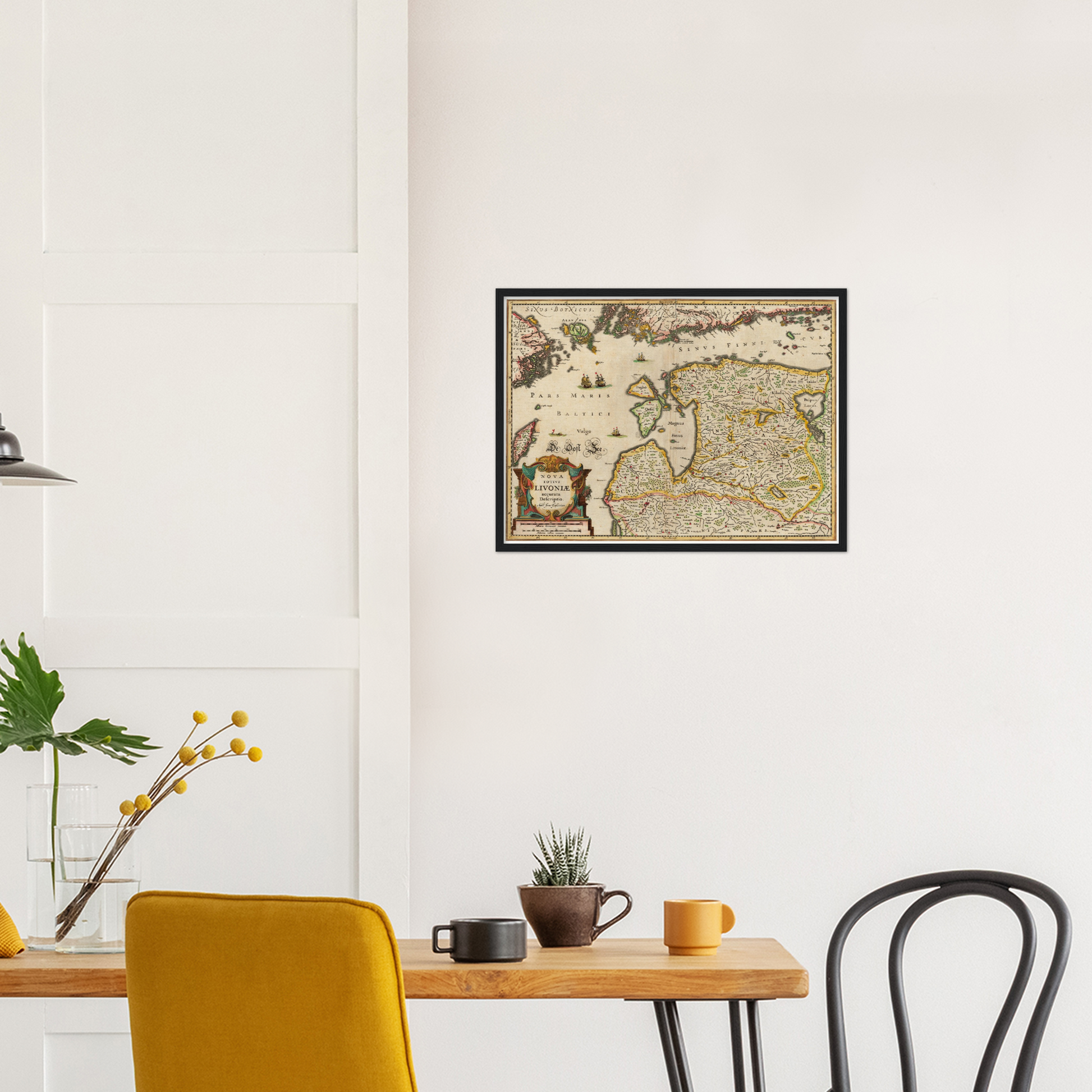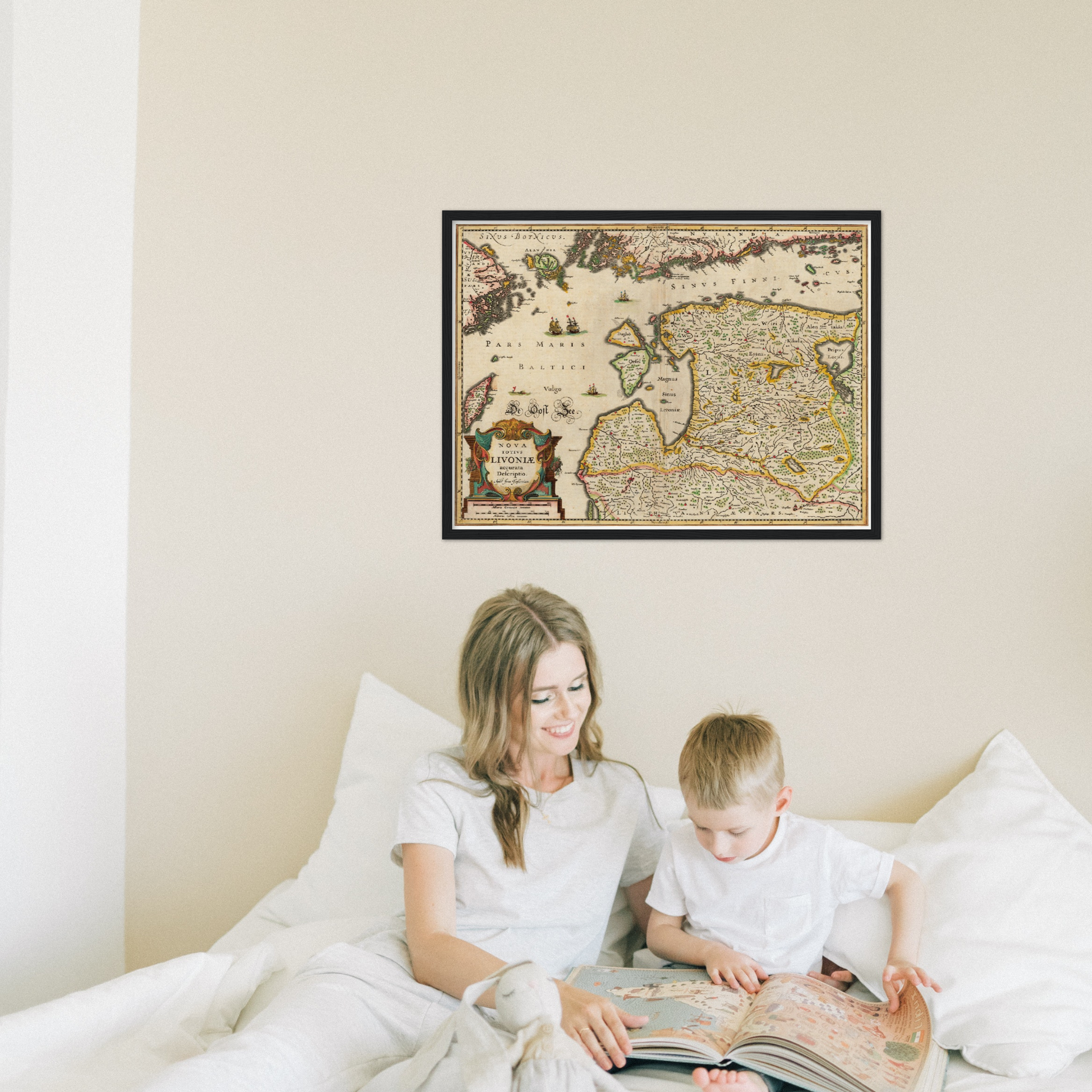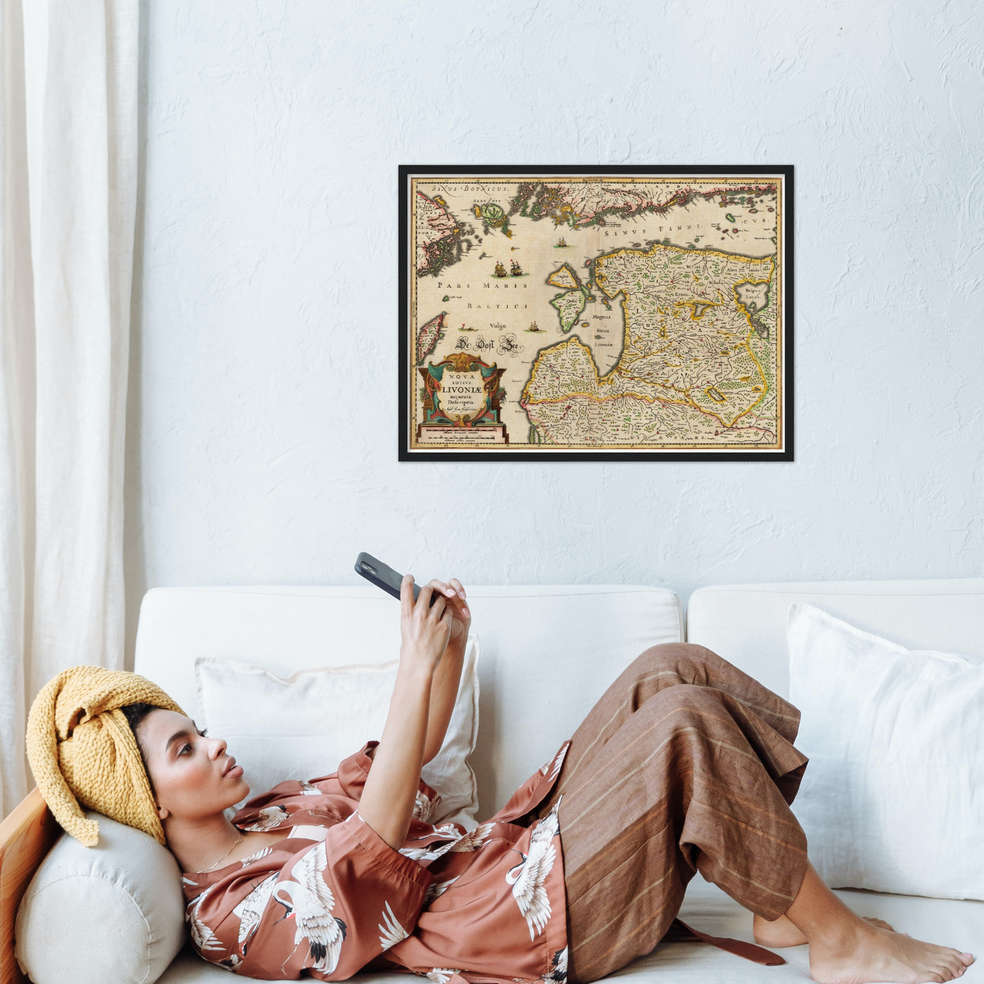 Die Historische Landkarte von Estland aus dem Jahr 1642 ist mehr als nur ein dekoratives Element. Sie eröffnet ein Fenster in eine Zeit, in der die Welt in Karten gebannt wurde, um unbekannte Horizonte zu umarmen und die eigenen Möglichkeiten neu zu definieren. Estland, damals ein Knotenpunkt zwischen Ost und West, spiegelt die politischen und kulturellen Strömungen der Epoche wider. Die feinen Linien und die sorgfältige Gravur lassen den Betrachter die Meisterschaft der damaligen Kartographen spüren und laden dazu ein, die Geheimnisse und Geschichten dieser Region zu erkunden. Diese kunstvolle Darstellung zieht mit jedem Blick in ihren Bann und erinnert an die glorreiche Vergangenheit einer faszinierenden geschichtlichen Epoche.