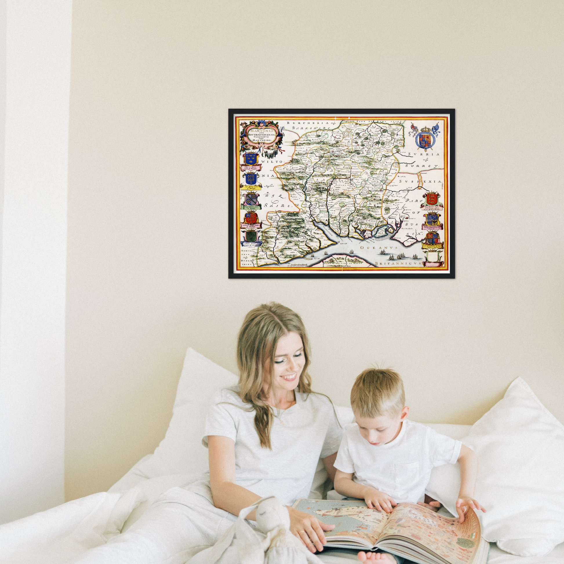 Viele entscheiden sich für diese Karte als besonderes Geschenk für Liebhaber der Geschichte oder für jene, die ihre Wurzeln im schönen Hampshire haben. Diese Landkarte erzählt Geschichten von vergangenen Zeiten und verbindet uns emotional mit der Region, die sie darstellt. Als dekoratives Kunstwerk ist sie ein wertvolles Stück für jeden, der die Schönheit und das Erbe von Hampshire schätzt. In Kombination mit einem hochwertigen Rahmen kann sie nicht nur ein persönlicher Schatz bleiben, sondern auch zum Gesprächsthema in jedem Raum werden, der mit ihr geschmückt ist.