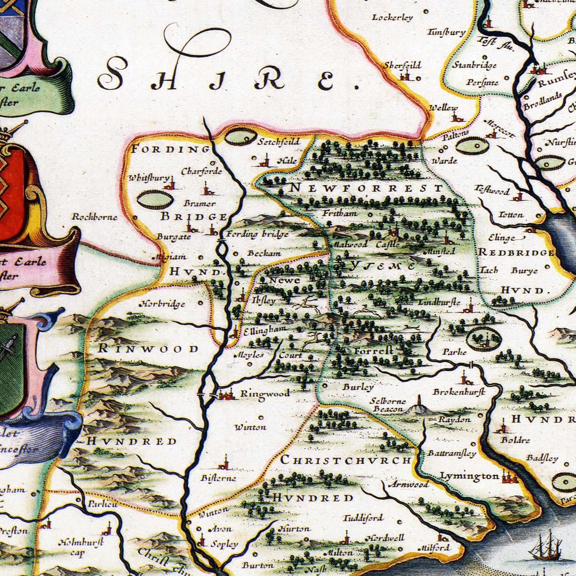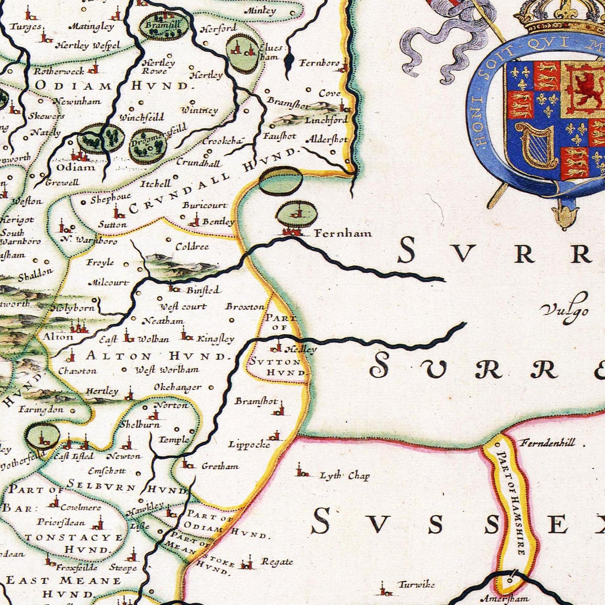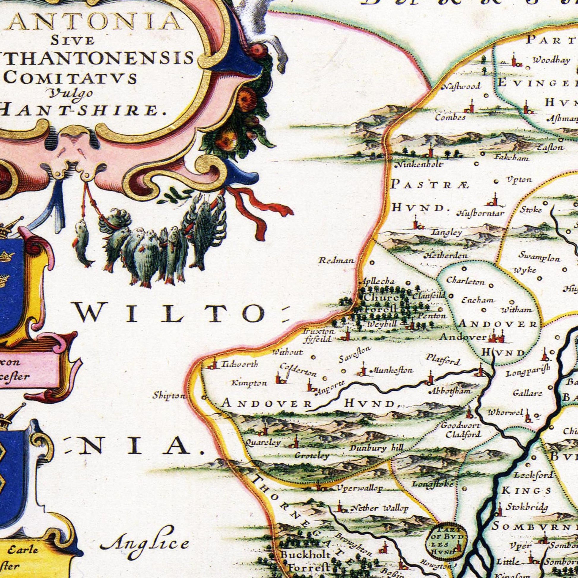 Im Jahr 1646 beendeten die kriegerischen Auseinandersetzungen des Englischen Bürgerkriegs viele Jahre der Unruhe. Inmitten dieser Umbrüche entstanden Karten wie diese, die nicht nur geografische Details festhielten, sondern zugleich Dokumente ihrer Zeit waren. Der Kartograph, dessen geschickte Hand die Landkarte von Hampshire schuf, war ein Meister seines Fachs, der es verstand, topografische Genauigkeit mit künstlerischer Ästhetik zu vereinen. Die Symbole und Zeichnungen auf dieser Karte verraten viel über das damalige Weltbild und die Art und Weise, wie Landschaften und Grenzverläufe wahrgenommen wurden. Heute ist diese Karte ein wertvolles Kulturgut, das uns an die Verflechtung von Kunst, Kultur und Geografie erinnert und dabei hilft, die eigene Geschichte visuell zu erleben und schätzen zu lernen.