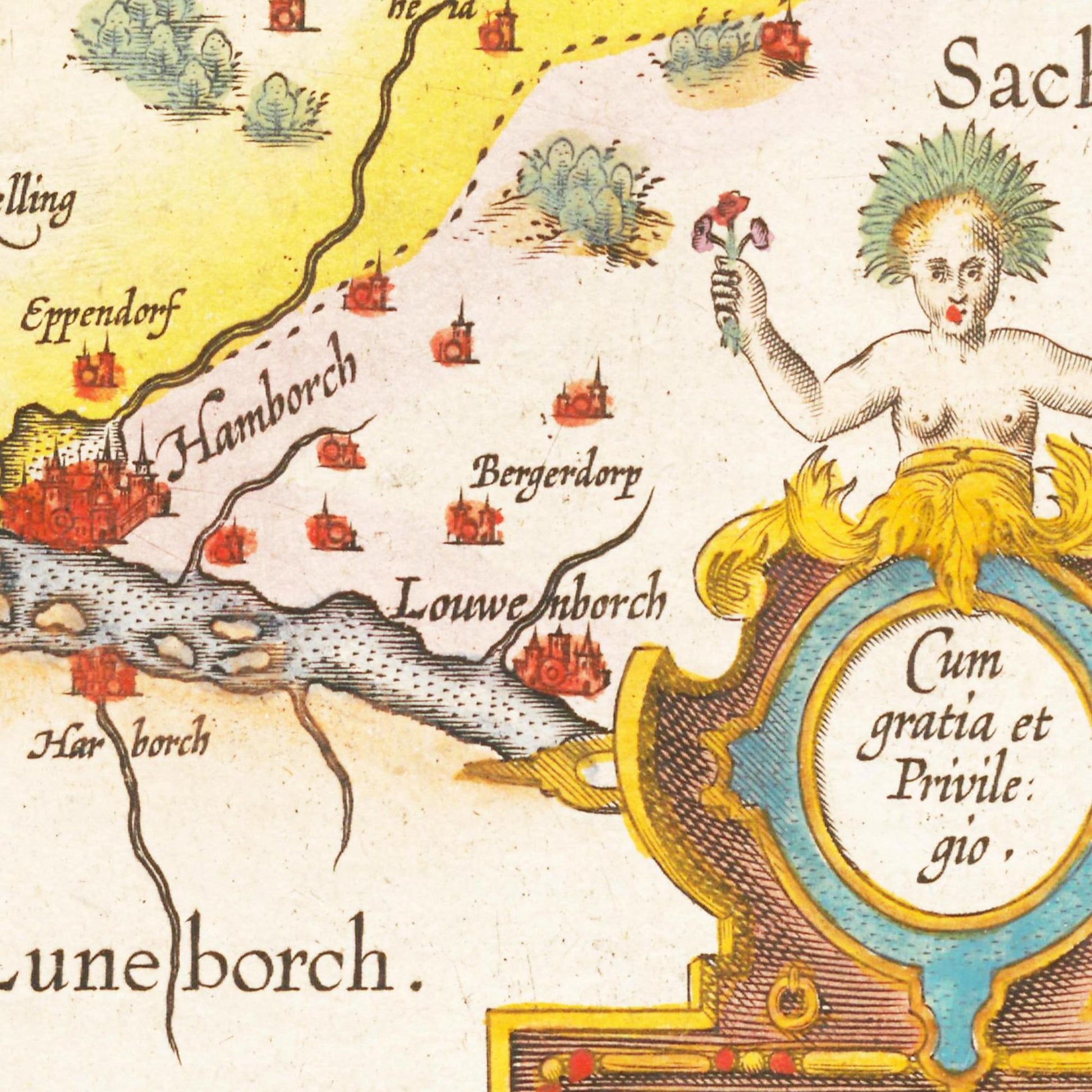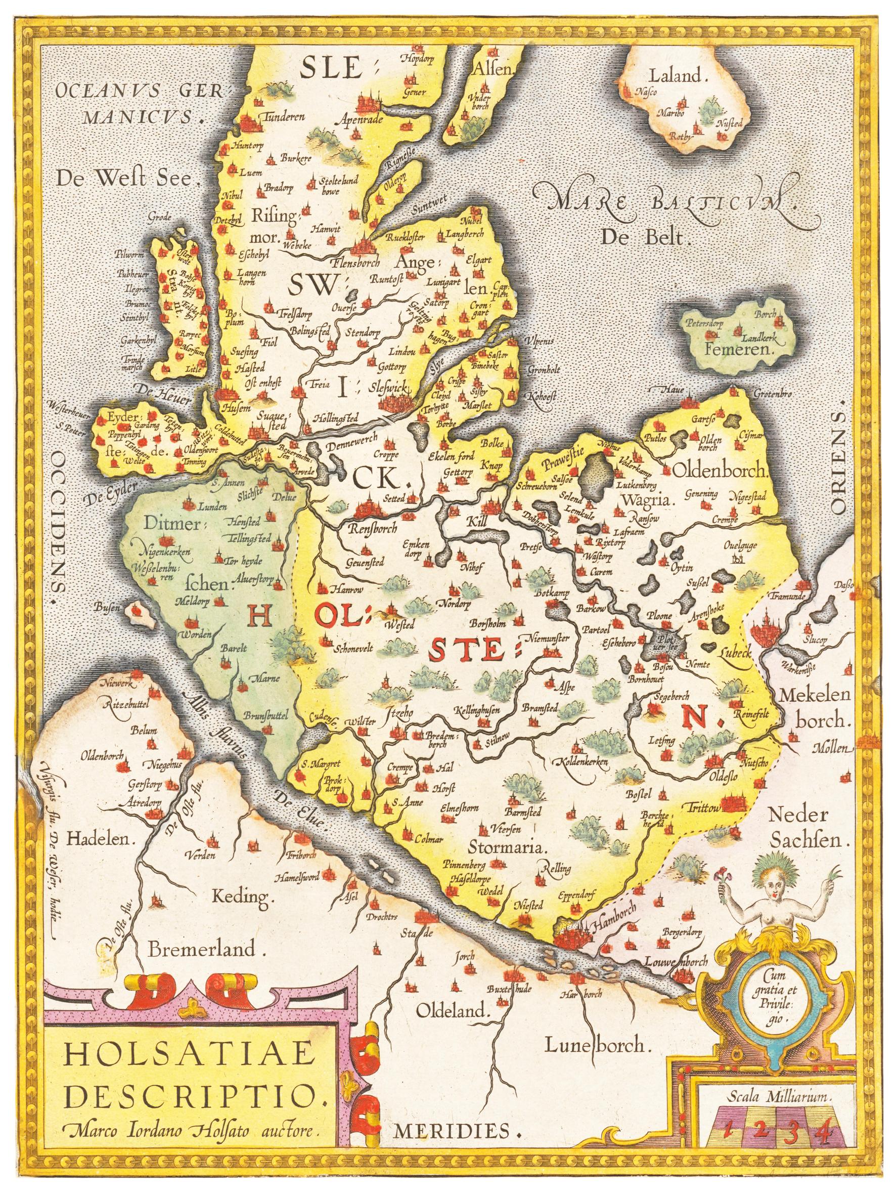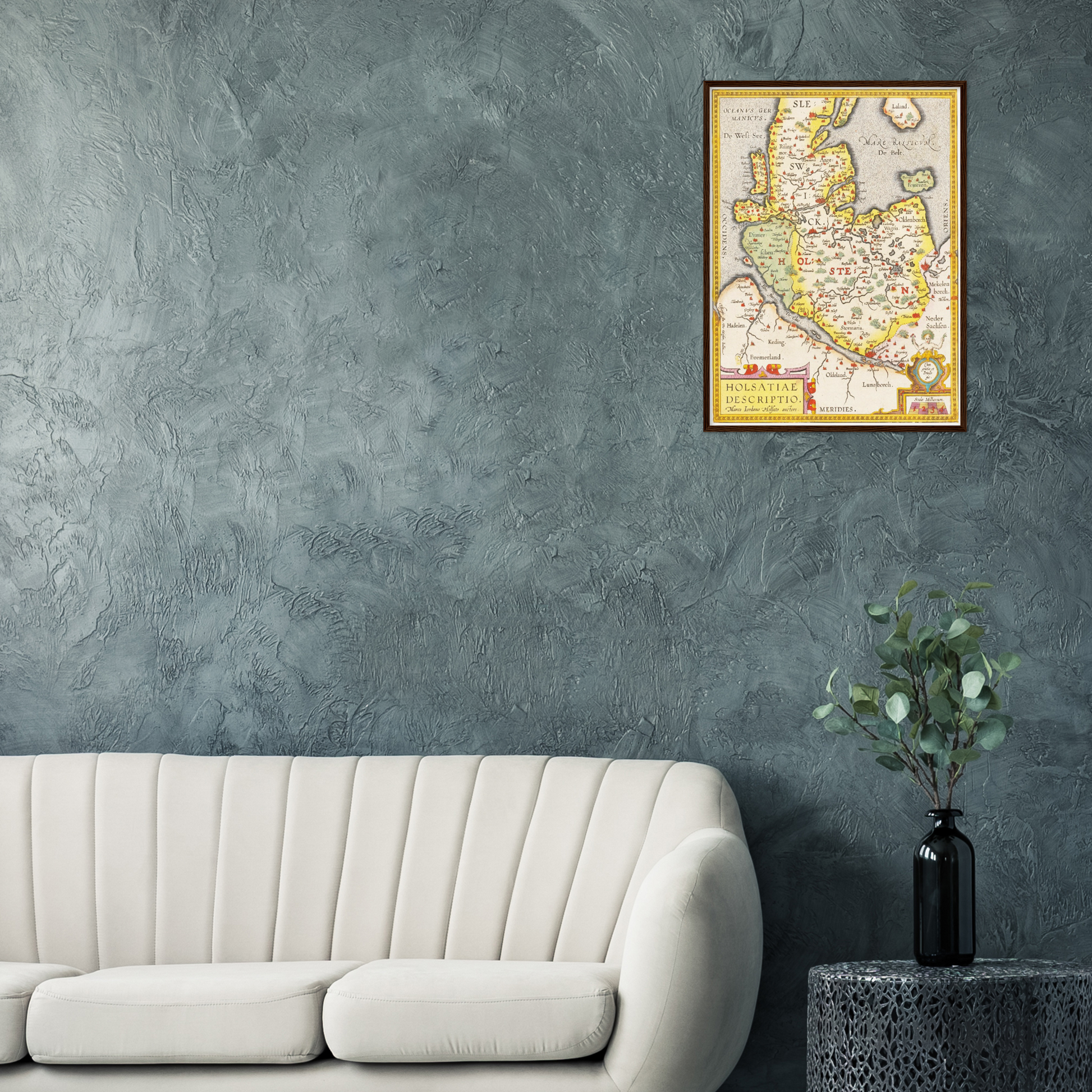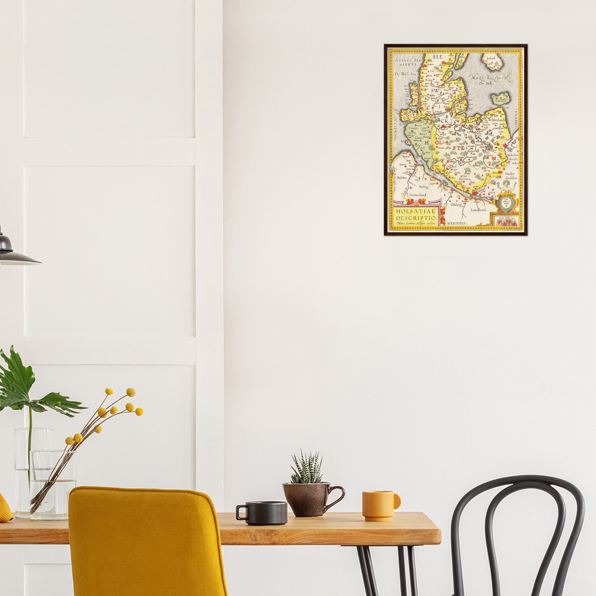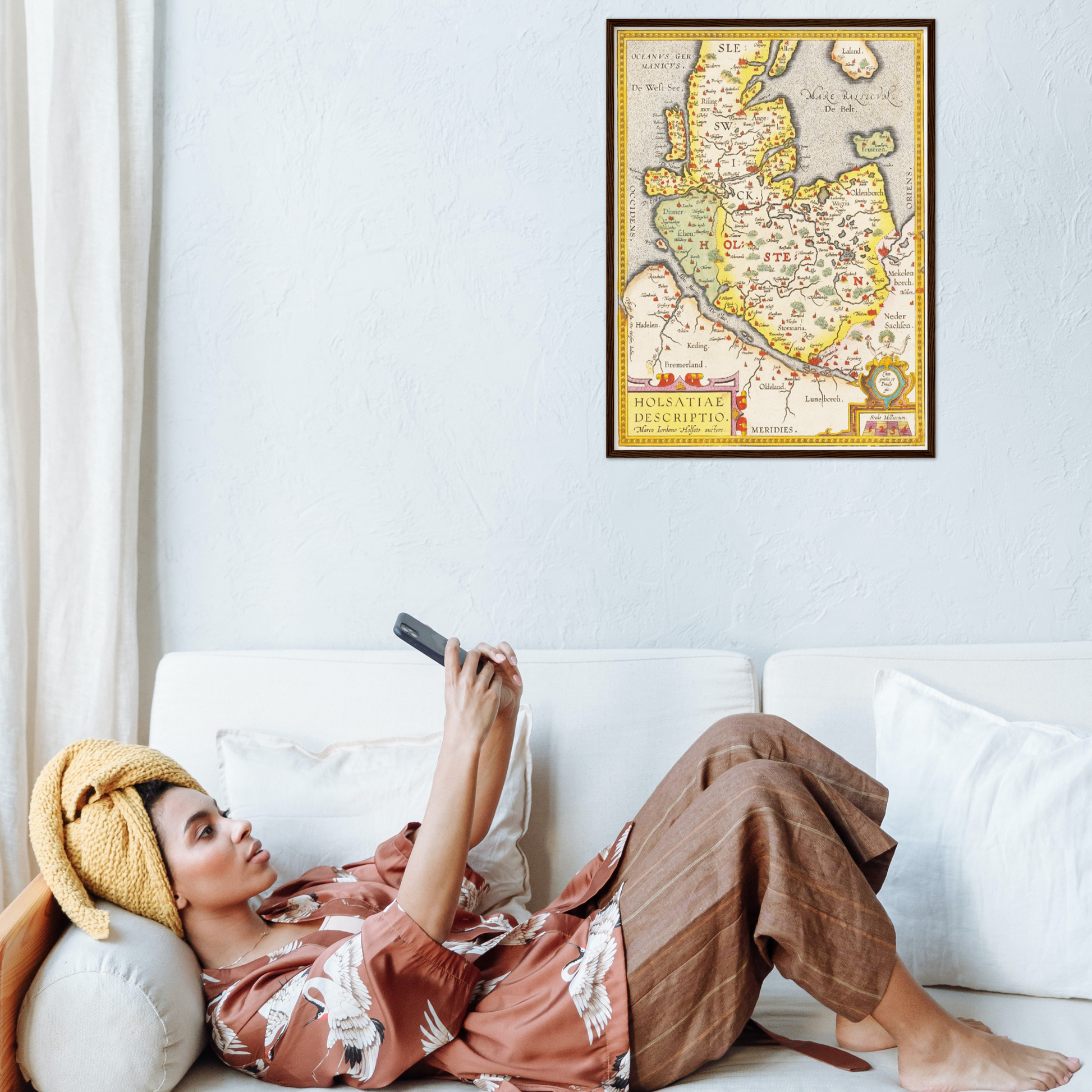 Betreten Sie eine Welt, in der die Grenzen des heute so vertrauten Holsteins noch in einem anderen Licht erschienen. Diese Landkarte von 1609 zieht Sie in ihren Bann mit einem Reichtum an Details, die Geschichte lebendig werden lassen. Die eindrucksvollen Linien und die sorgfältige Gravur erzählen von einer Ära, in der Entdeckungen und das Wissen um die Welt stetig wuchsen. Diese Karte ist nicht nur ein informatives Dokument, sondern auch ein künstlerisches Meisterwerk, das jedem Raum in Ihrem Zuhause einen Hauch von Geschichte und Exklusivität verleiht. Das matte, hochwertige Papier, auf dem sie gedruckt ist, verstärkt ihre zeitlose Eleganz und wird zum stilvollen Mittelpunkt Ihrer Einrichtung.